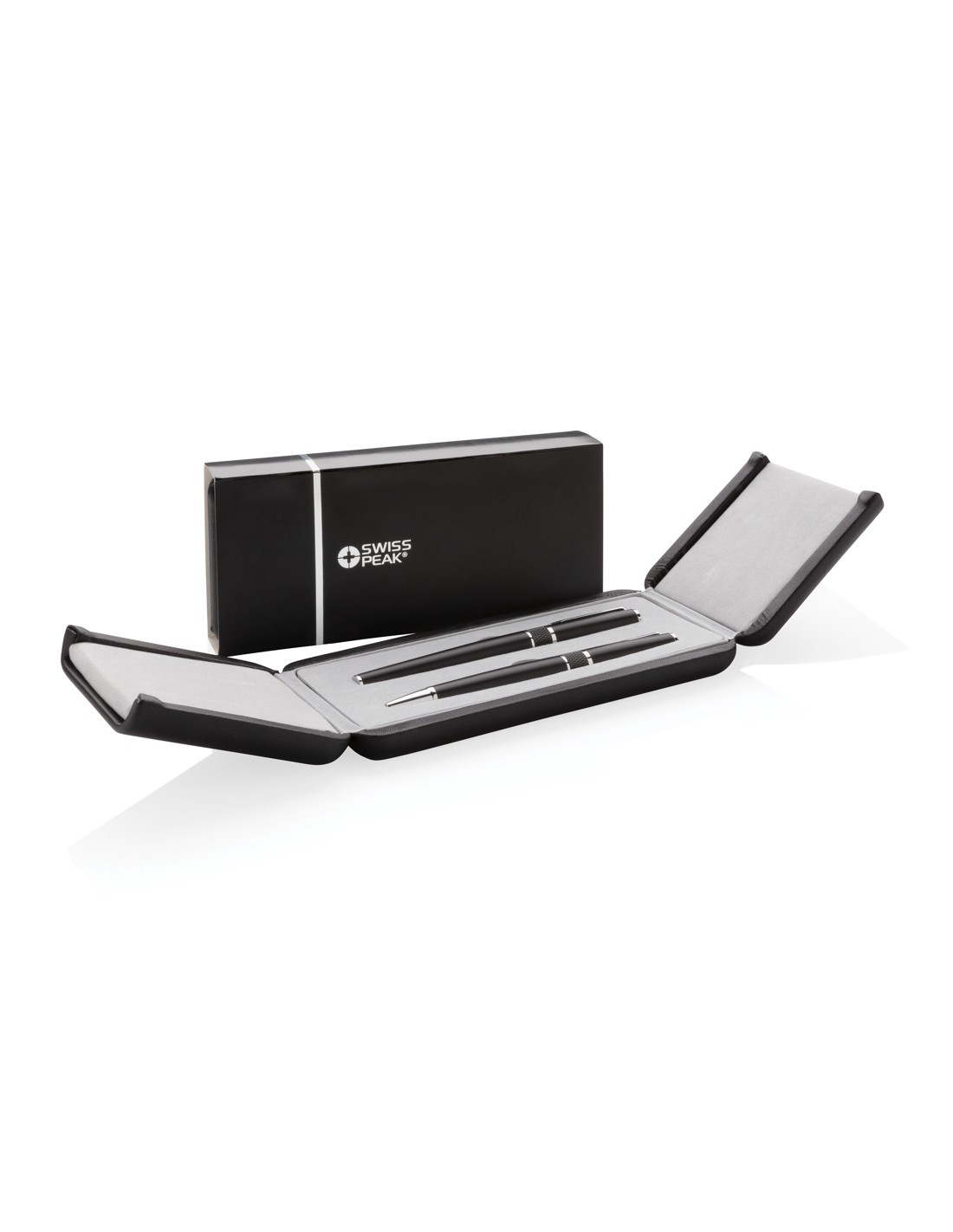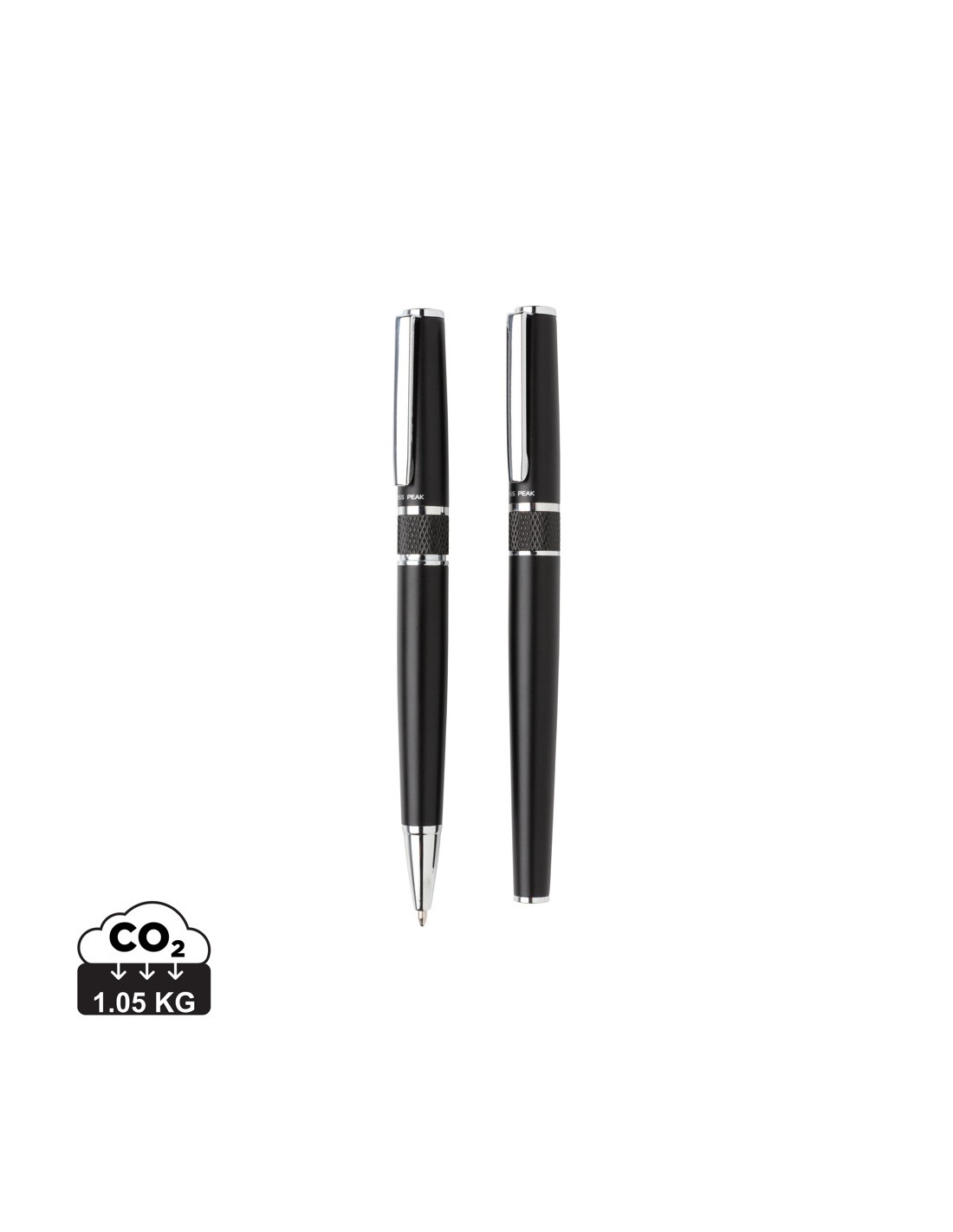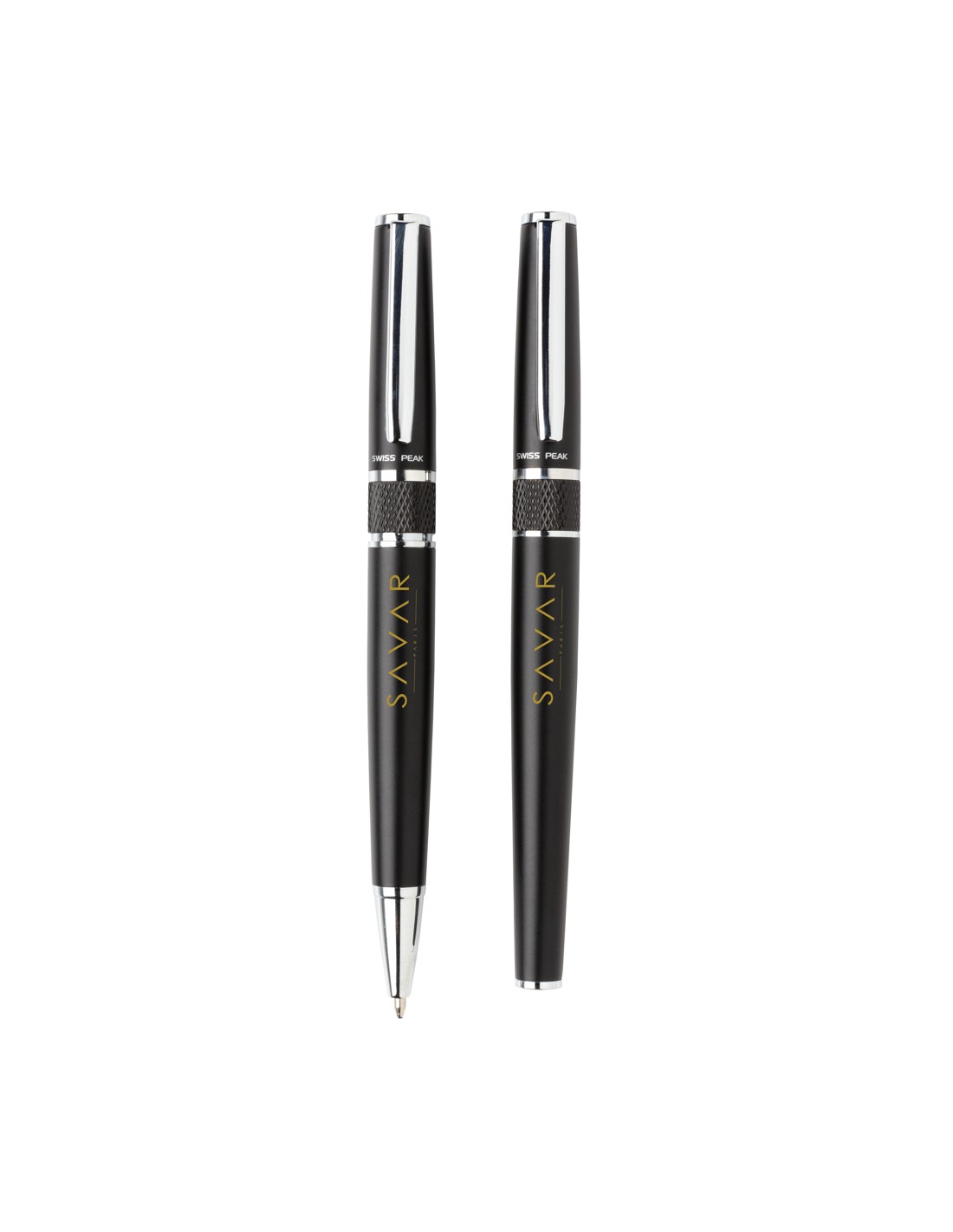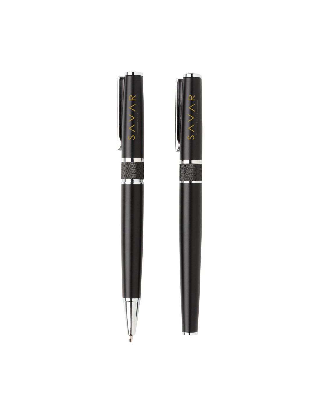 Questo lussuoso set di penne aggiunge eleganza e stile alla tua scrittura. Include una penna a sfera e un roller con inchiostro blu in una bellissima confezione con logo in rilievo. La penna ha refill con inchiostro blu Dokumental con sfera in t/c per una scrittura precisa e scorrevole. Il roller ha refill con inchiostro blu Dokumental. Lunghezza di scrittura circa 1200 metri.