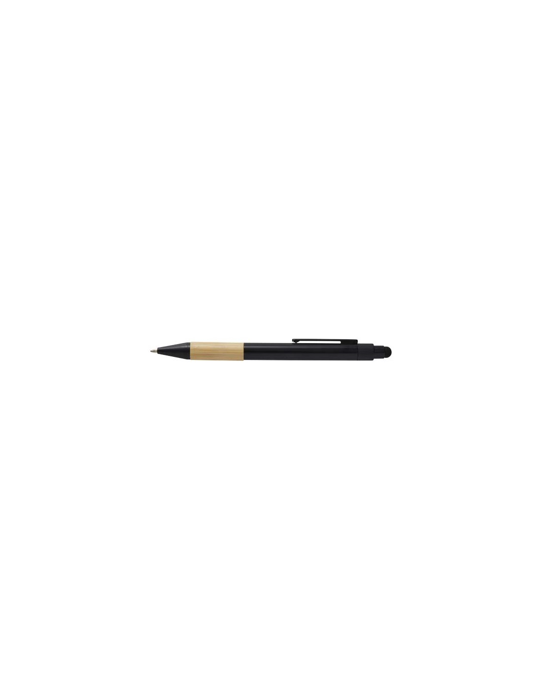 Il set regalo Minka comprende una penna a sfera in alluminio riciclato certificato RCS con un'impugnatura elegante in bambù e punta stilo, un portachiavi in alluminio (5,5 x 1,8 x 1 cm) con dettagli in bambù e supporto per telefono integrato e un portacarte RFID (9,7 x 6,2 x 1 cm) con una struttura in lega di alluminio e dettagli in bambù che può proteggere fino a 10 carte. La penna contiene inchiostro nero con una capacità di scrittura di 1000 metri. Un bel pratico regalo che unisce funzionalità e design moderno. Fornito in una confezione regalo di alta qualità nera (16 x 16 x 2,7 cm) con parte anteriore liscia, ideale per l'aggiunta di un logo.