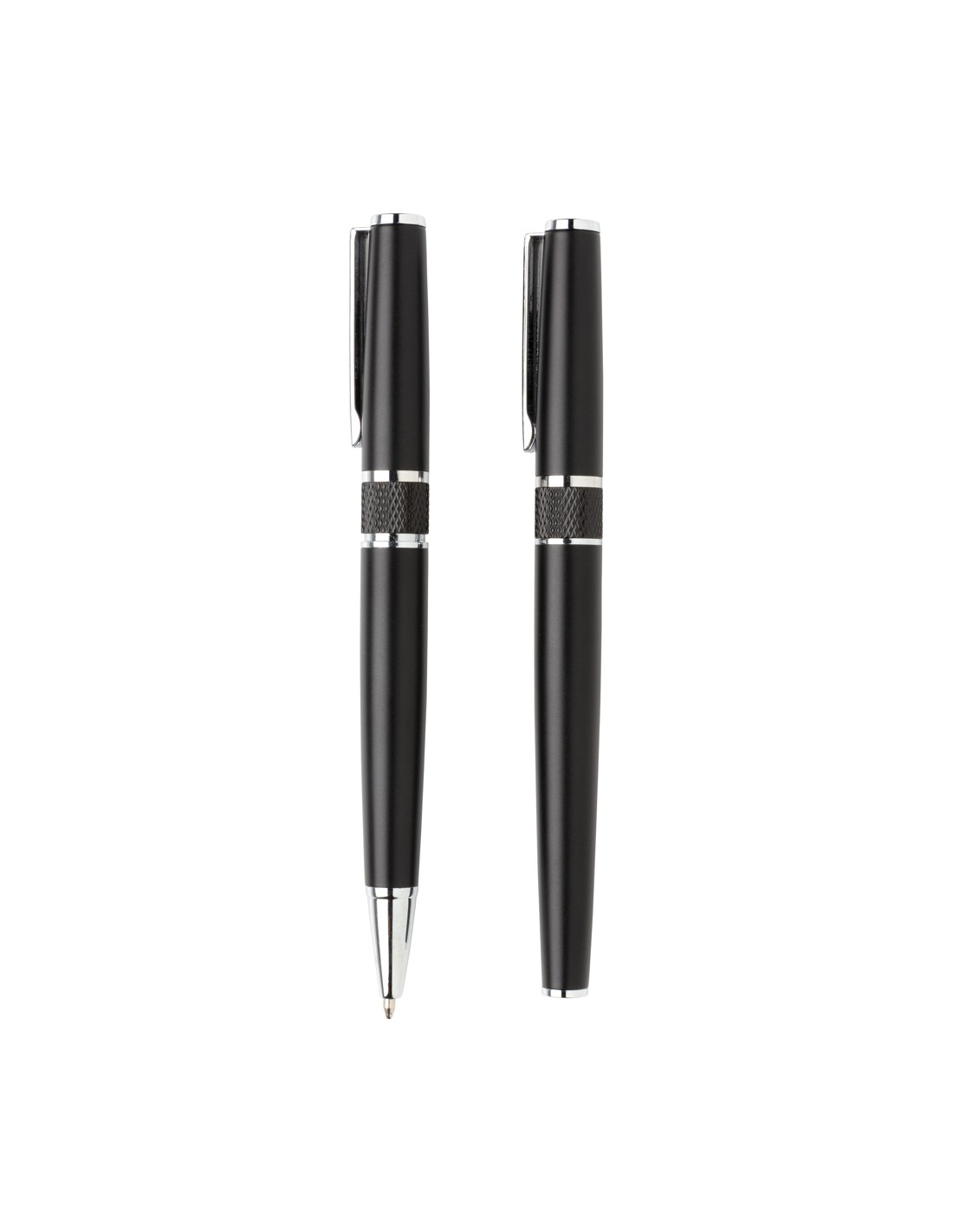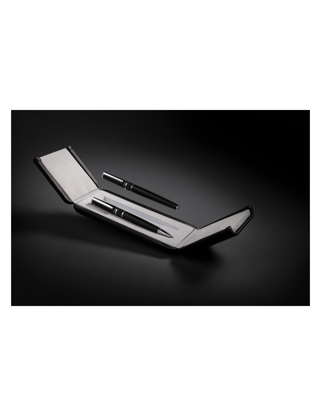 Questo set contiene tre penne a sfera colorate, una matita e un evidenziatore all'interno di una comoda custodia in plastica bianca.