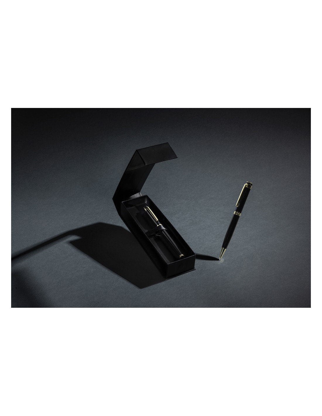 Elevate la vostra esperienza di scrittura con il set di penne deluxe Luca Swiss Peak in ottone riciclato RCS. Progettato all'insegna della raffinatezza, questo set presenta eleganti penne nere con dettagli dorati, tra cui la parte superiore, l'anello superiore, la clip, l'anello centrale e la punta. Realizzate con il 55% di ottone riciclato certificato RCS, queste penne offrono eleganza e sostenibilità. La penna a sfera funziona con un meccanismo a rotazione e include un refill con inchiostro blu, che scrive con una larghezza di 1,0 mm per un massimo di 1200 metri. La penna con tappo è dotata di inchiostro gel blu, che offre 800 m di scrittura scorrevole con la stessa larghezza di 1,0 mm. Entrambe le penne sono rifinite con una clip in acciaio e incise con il logo Swiss Peak sull'anello centrale. Presentato in una pregiata confezione regalo, questo set emana lusso e stile.