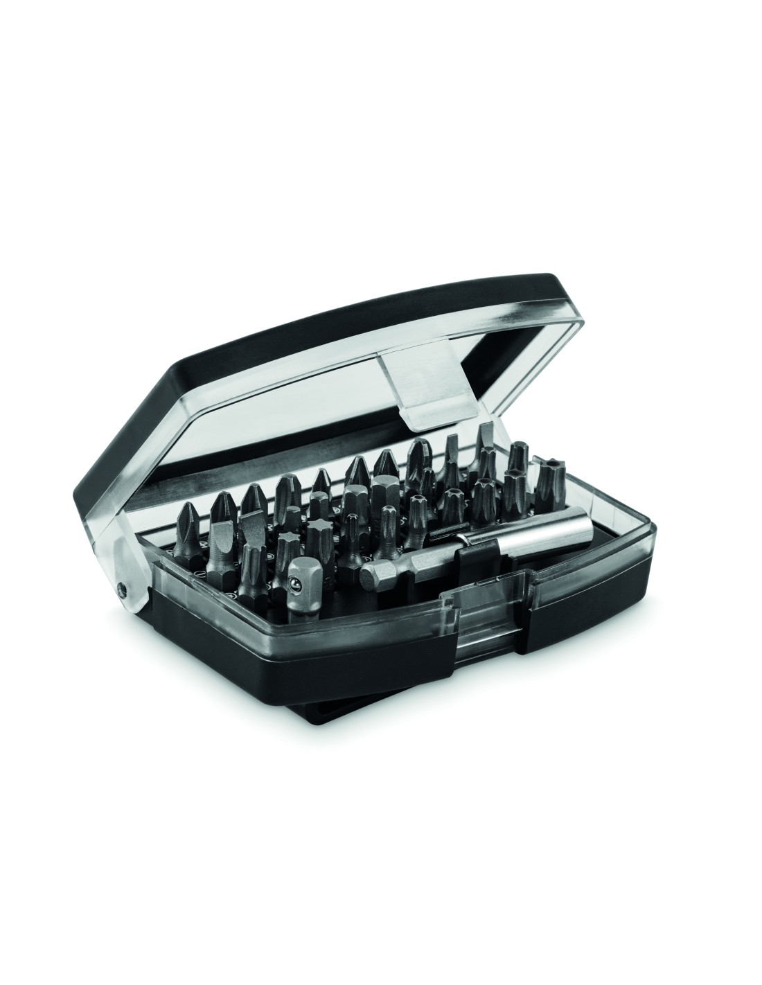 Set di utensili da 19 pezzi piccolo e pieghevole con moschettone, facile da riporre. Il set contiene: 1 avvitatore, 4 chiavi a bussola di diverse misure (7 mm, 8 mm, 9 mm, 10 mm), 10 punte per avvitatore, 1 prolunga e 1 set da 3 brugole (3 mm, 4 mm, 5 mm).