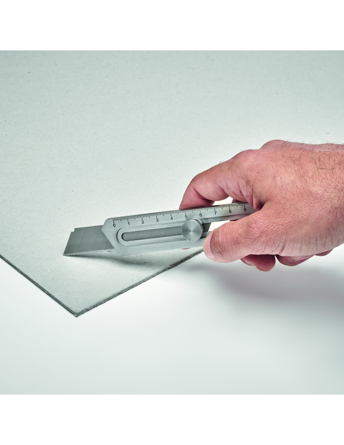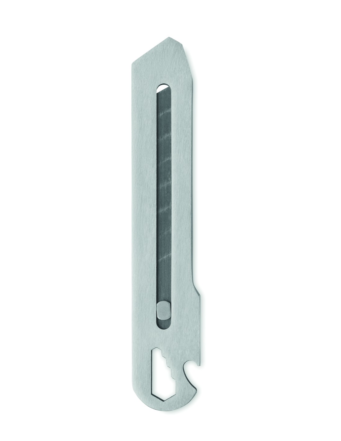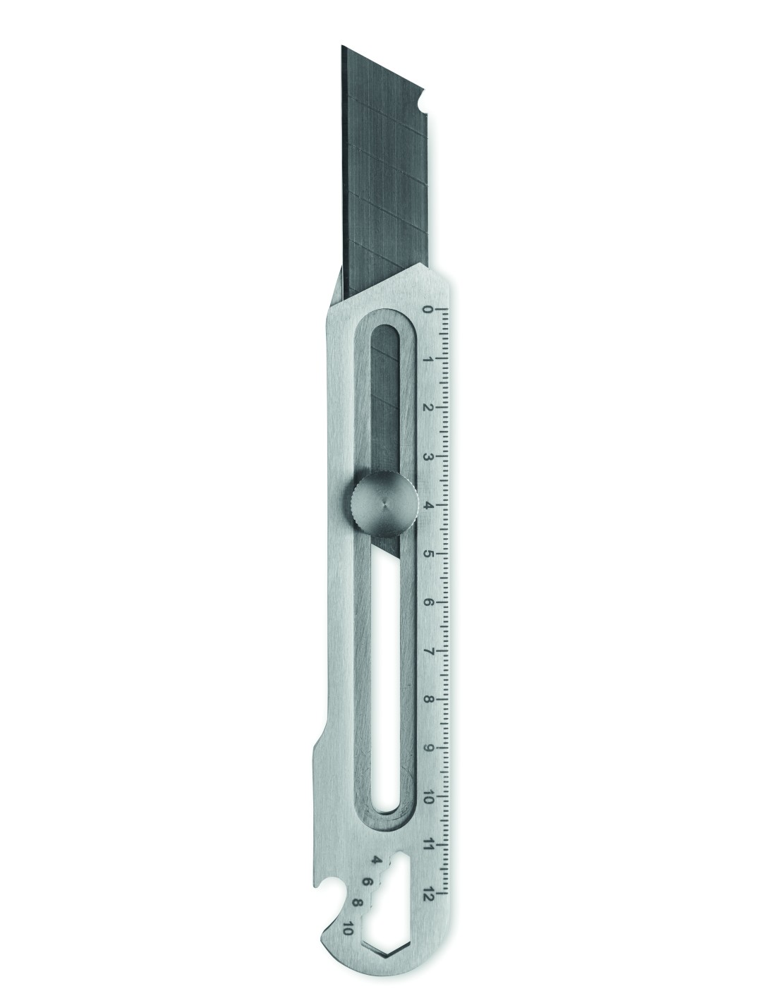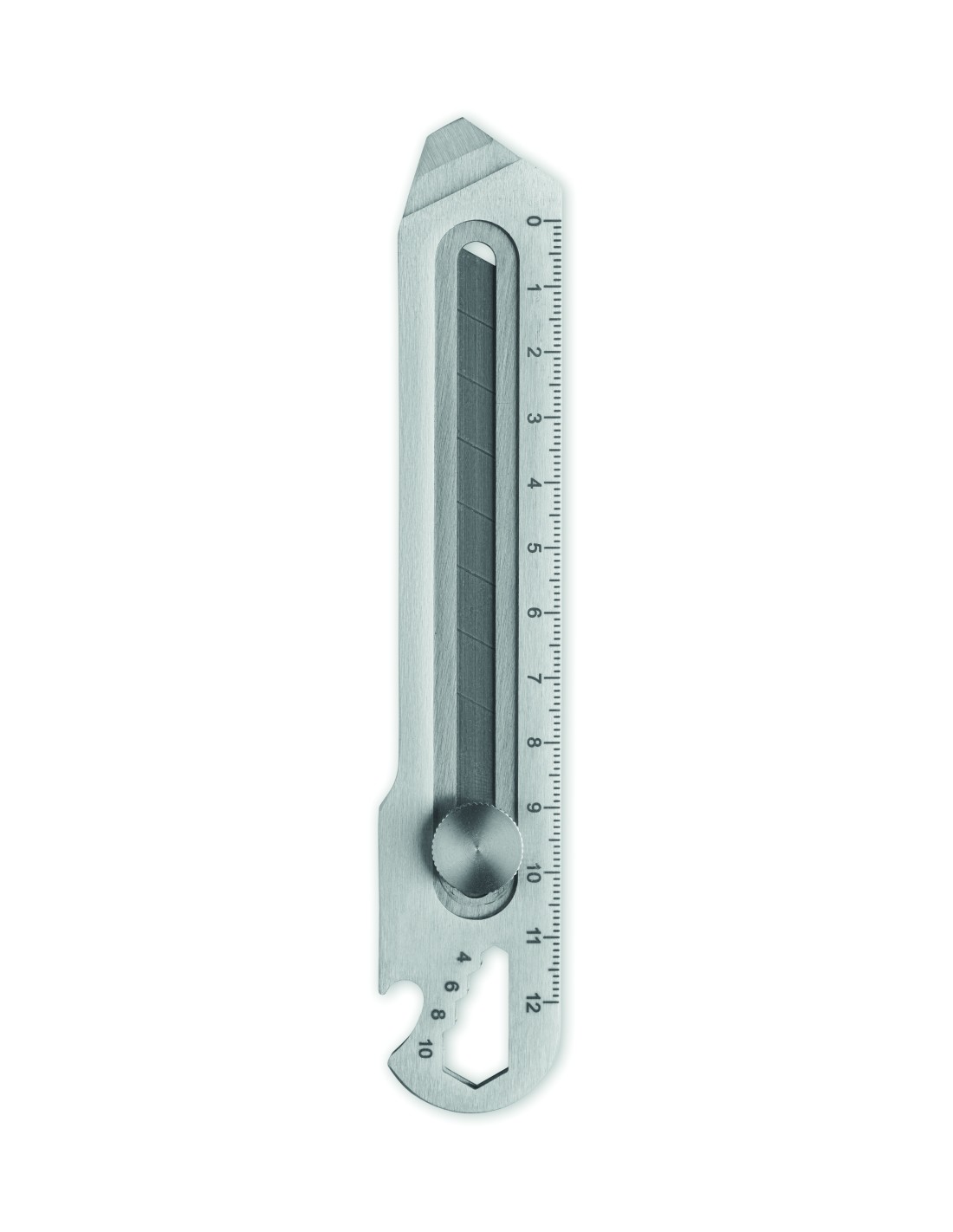 Coltello retrattile in acciaio inox con 8 lame in acciaio al carbonio, apribottiglie, chiave inglese e righello.