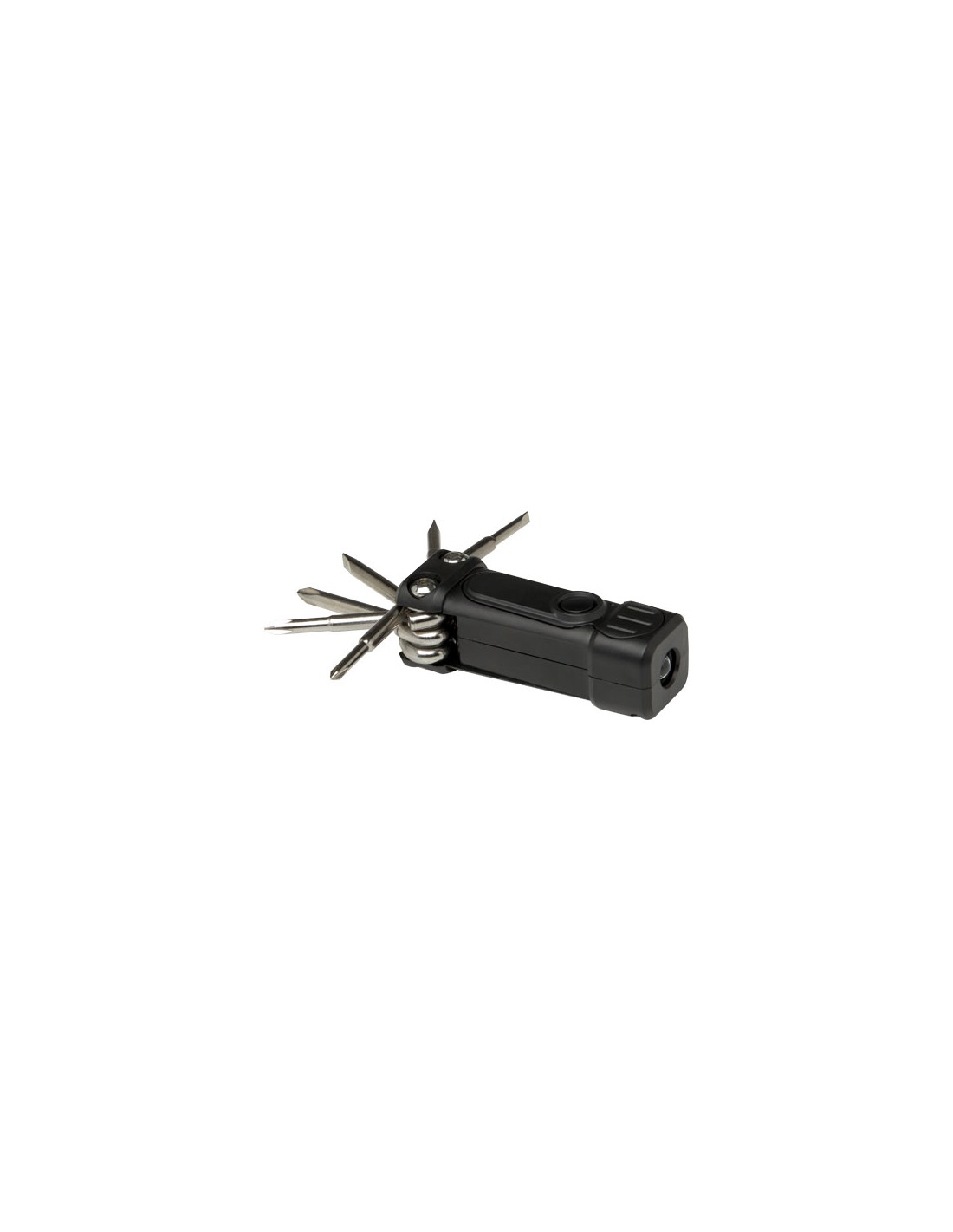 Set di cacciaviti compatto 8 in 1 con torcia realizzato al 20% con plastica riciclata certificata RCS. Il Recycled Claim Standard (RCS) verifica il contenuto riciclato di un prodotto durante tutte le fasi della catena di fornitura. Questo pratico strumento è dotato di 2 luci LED, 3 punte a croce e 3 piatte. Include tre batterie LR44. Confezionato all'interno di una confezione regalo STAC realizzata da fonti sostenibili.