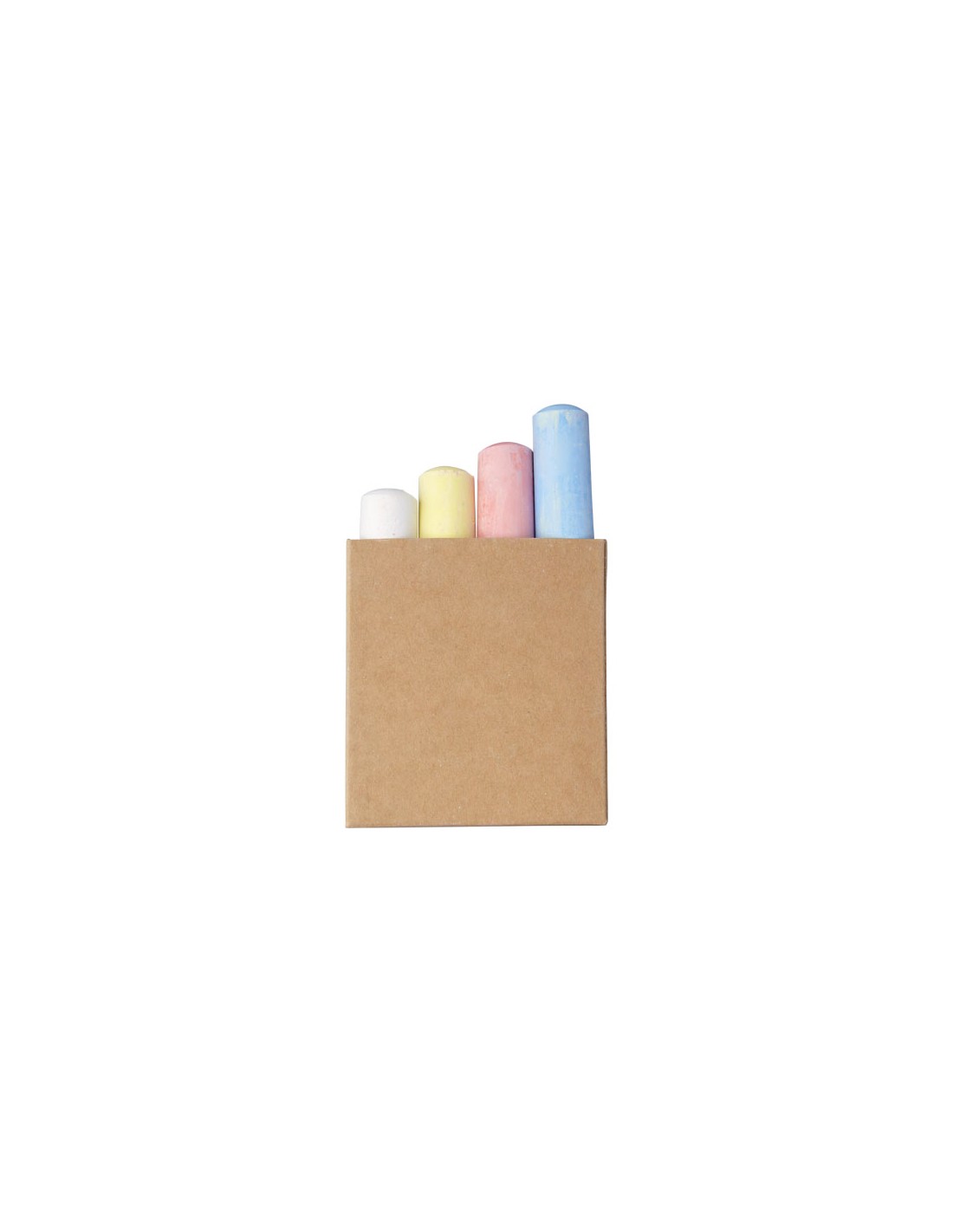 4 gessetti colorati in scatola di carta. Personalizzazione non disponibile sui gessetti. Attenzione! Non adatto a bambini di età inferiore ai tre anni. Piccole parti. Pericolo di soffocamento.