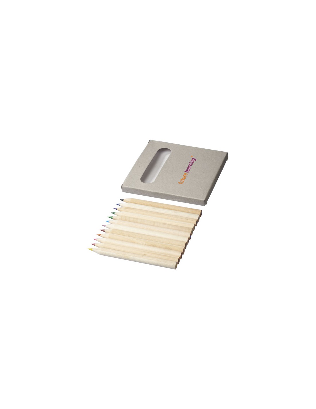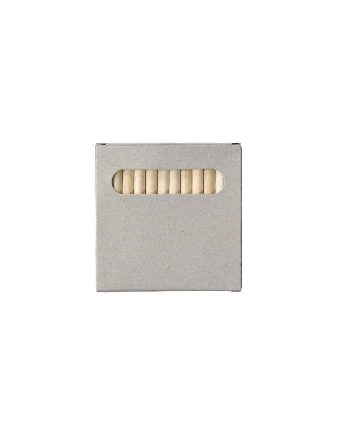 12 matite colorate confezionante in una scatola di cartoncino. Personalizzazione non disponibile sulle matite.