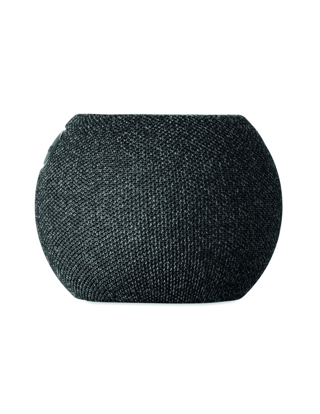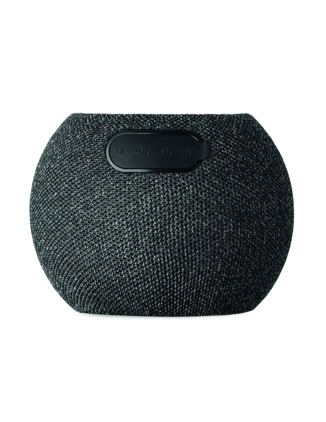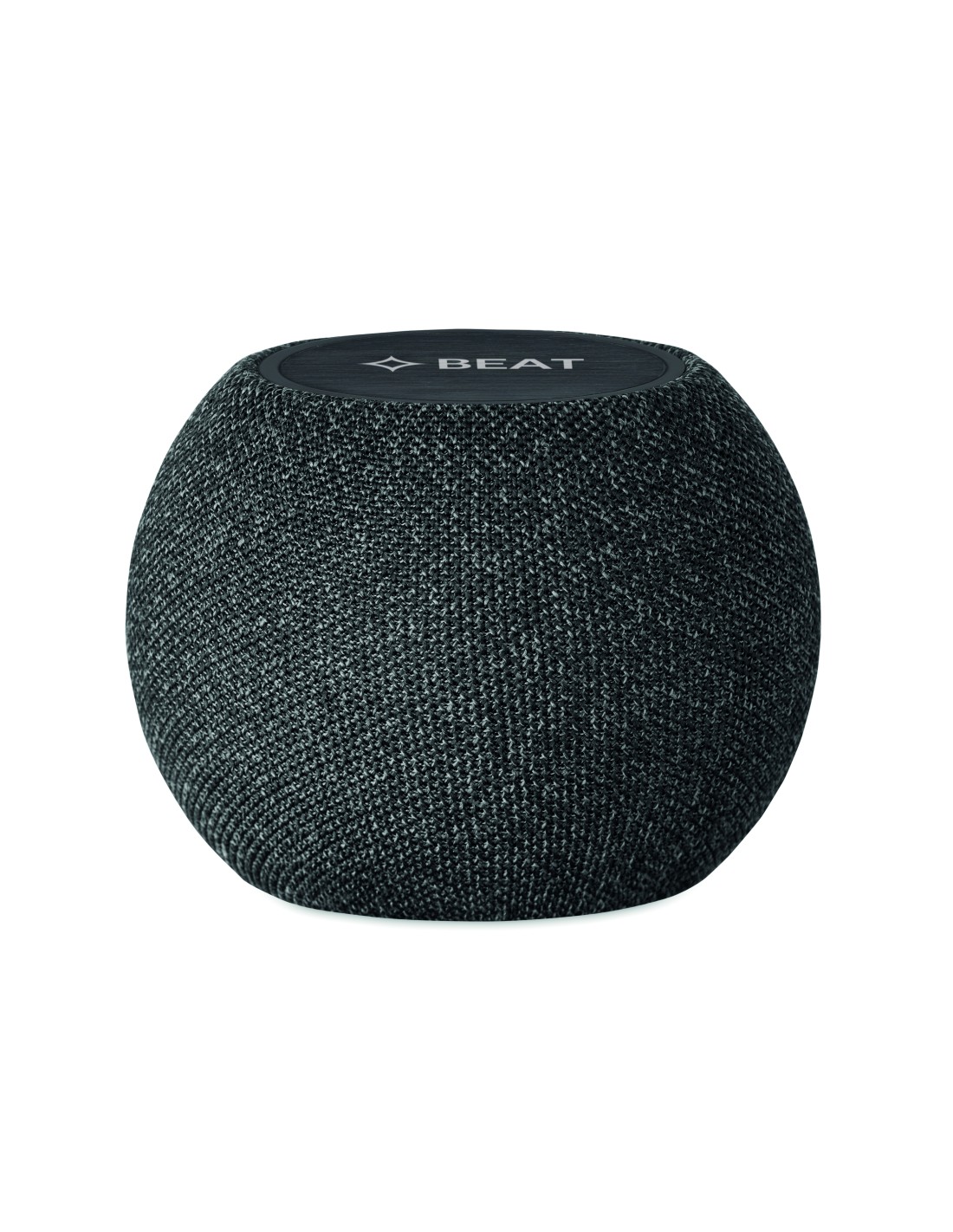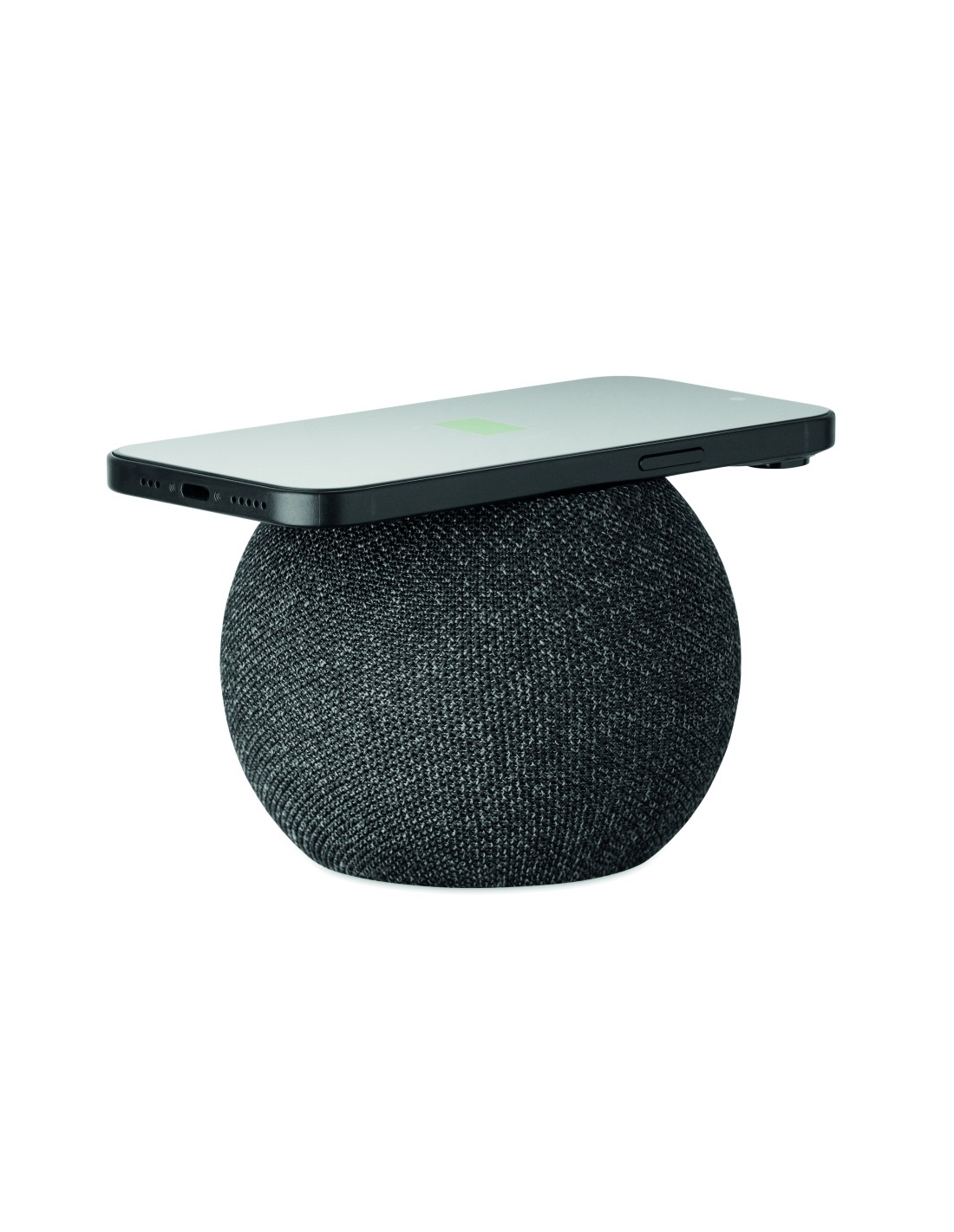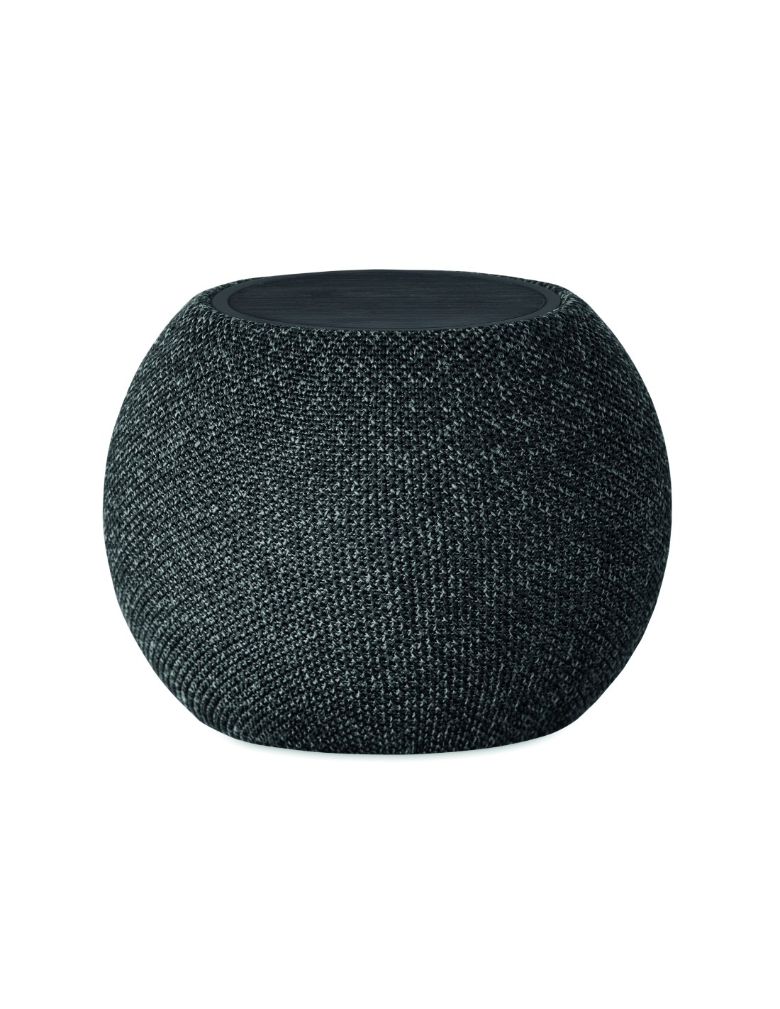 Speaker wireless 5.0 e ricarica wireless 15W in ABS, tessuto RPET e dettagli in bambù sulla parte superiore. 1 batteria ricaricabile Li-ION da 1200 mAh inclusa. Porta per schede SD e un cavo AUX/USB. Dati di uscita: 3W, 3 Ohm e 5V. Tempo di riproduzione di circa 5 ore.