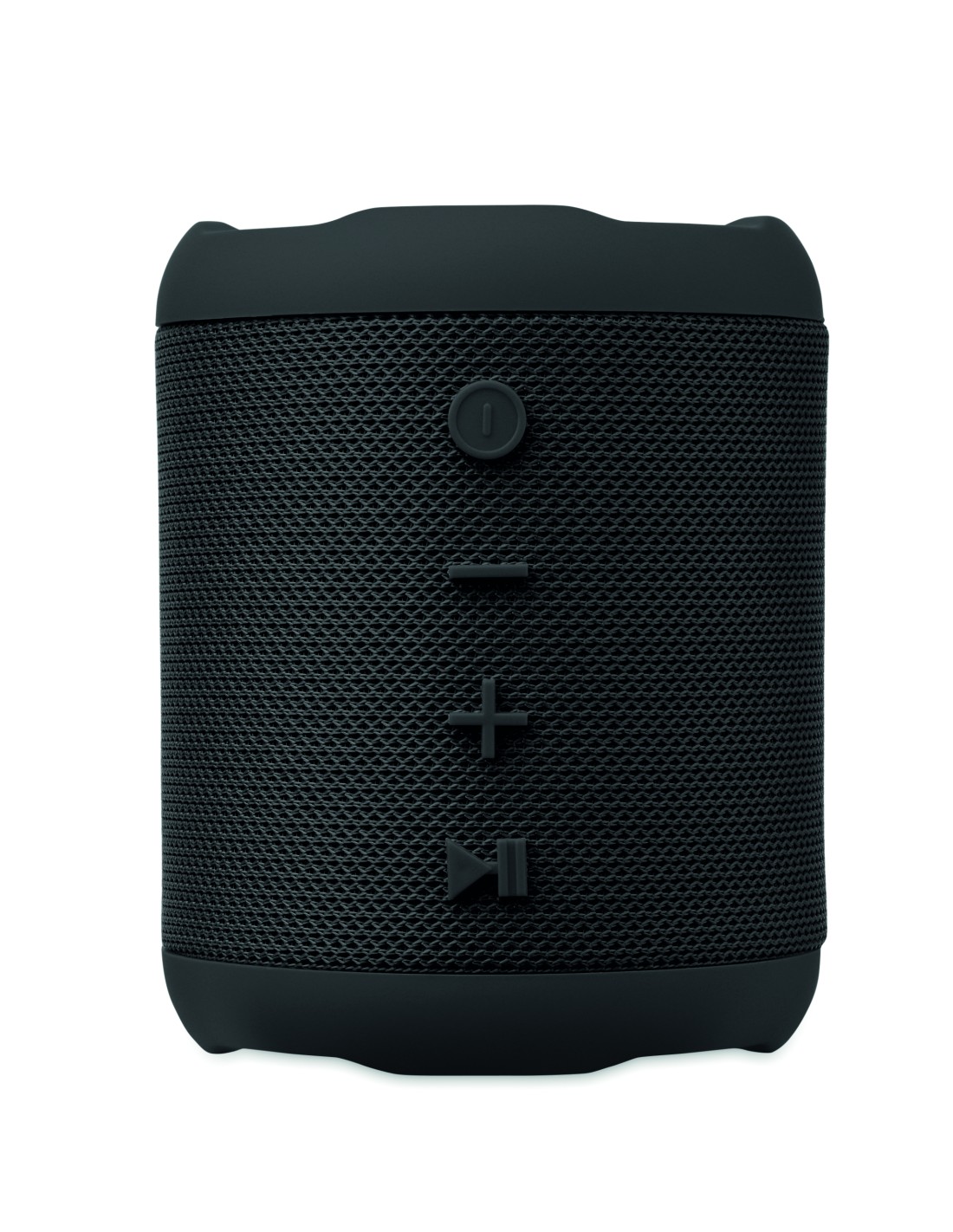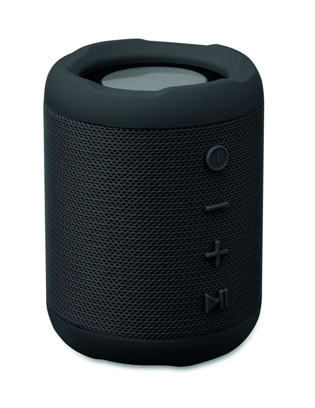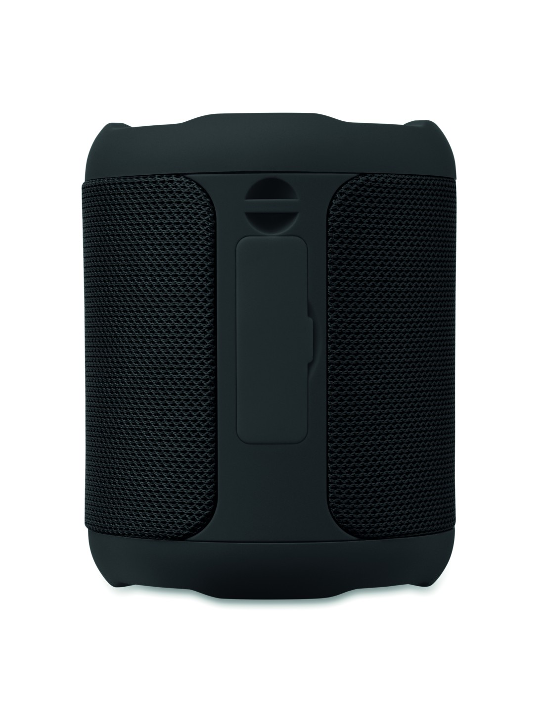 5.0 speaker wireless in ABS con tessuto RPET. 1 batteria ricaricabile Li-ION 800 mAh inclusa. Include una porta per schede SD e un cavo AUX/USB. Dati di uscita: 5W, 3 Ohm e 5V. Tempo di riproduzione di circa 3 ore.