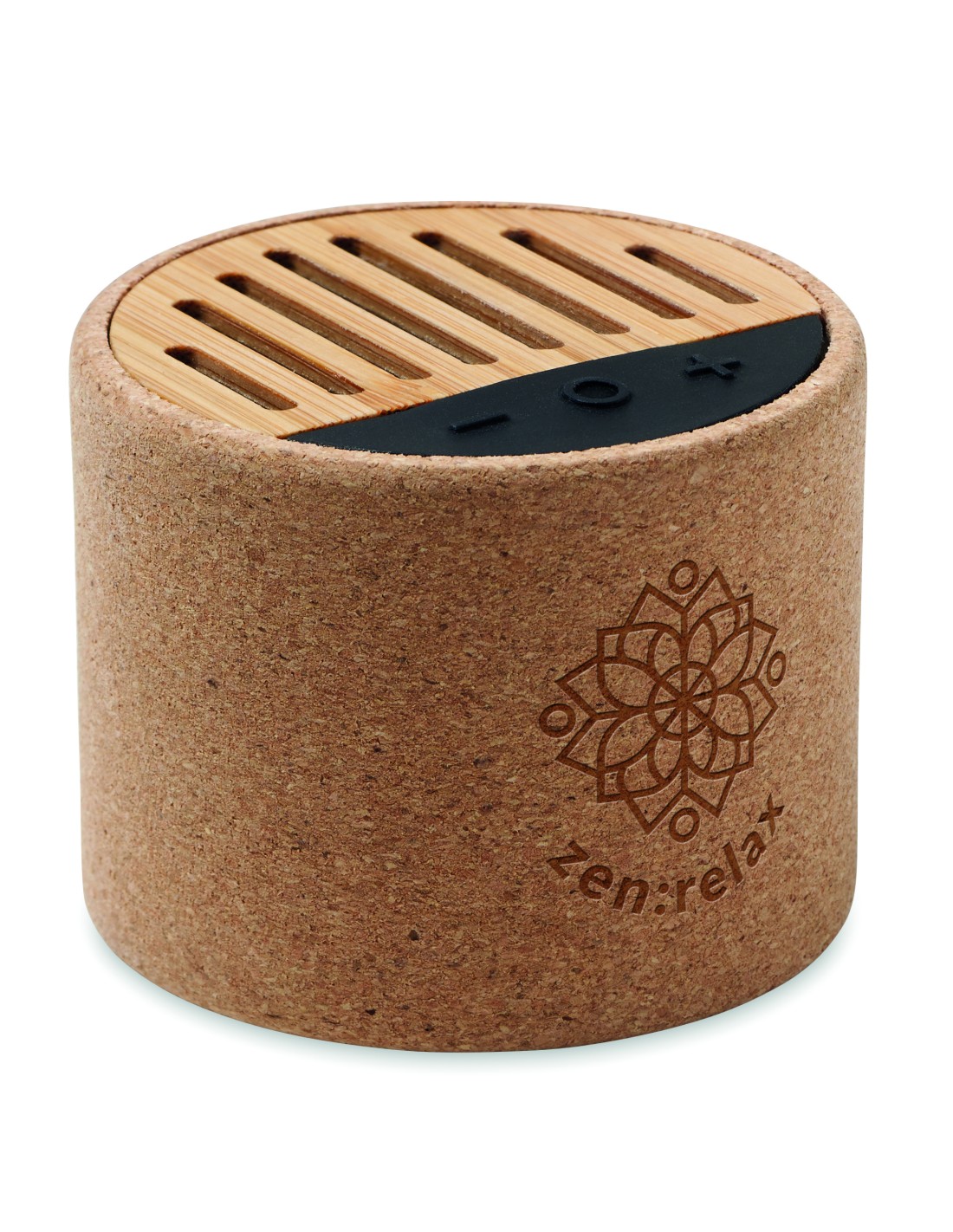 Speker wireless 5.3 in ABS in sughero e bamboo sulla parte superiore, con luci LED. 1 batteria ricaricabile al litio da 300 mAh inclusa. Dati di uscita: 3W, 4 Ohm e 5V. Tempo di riproduzione circa 4 ore.