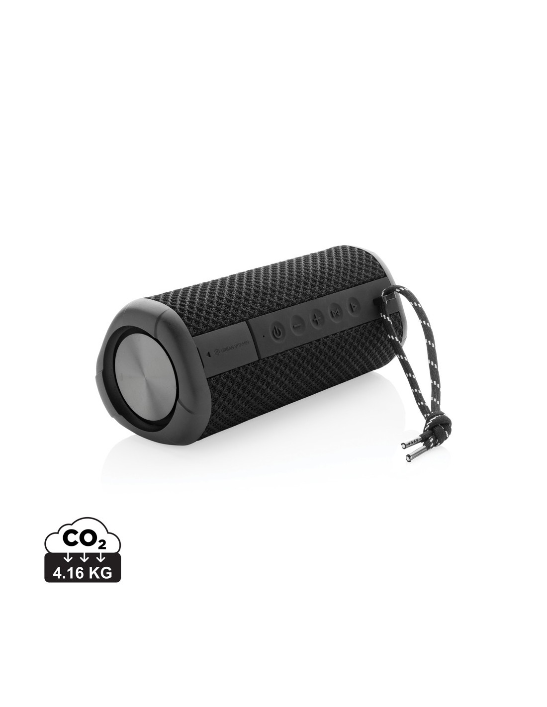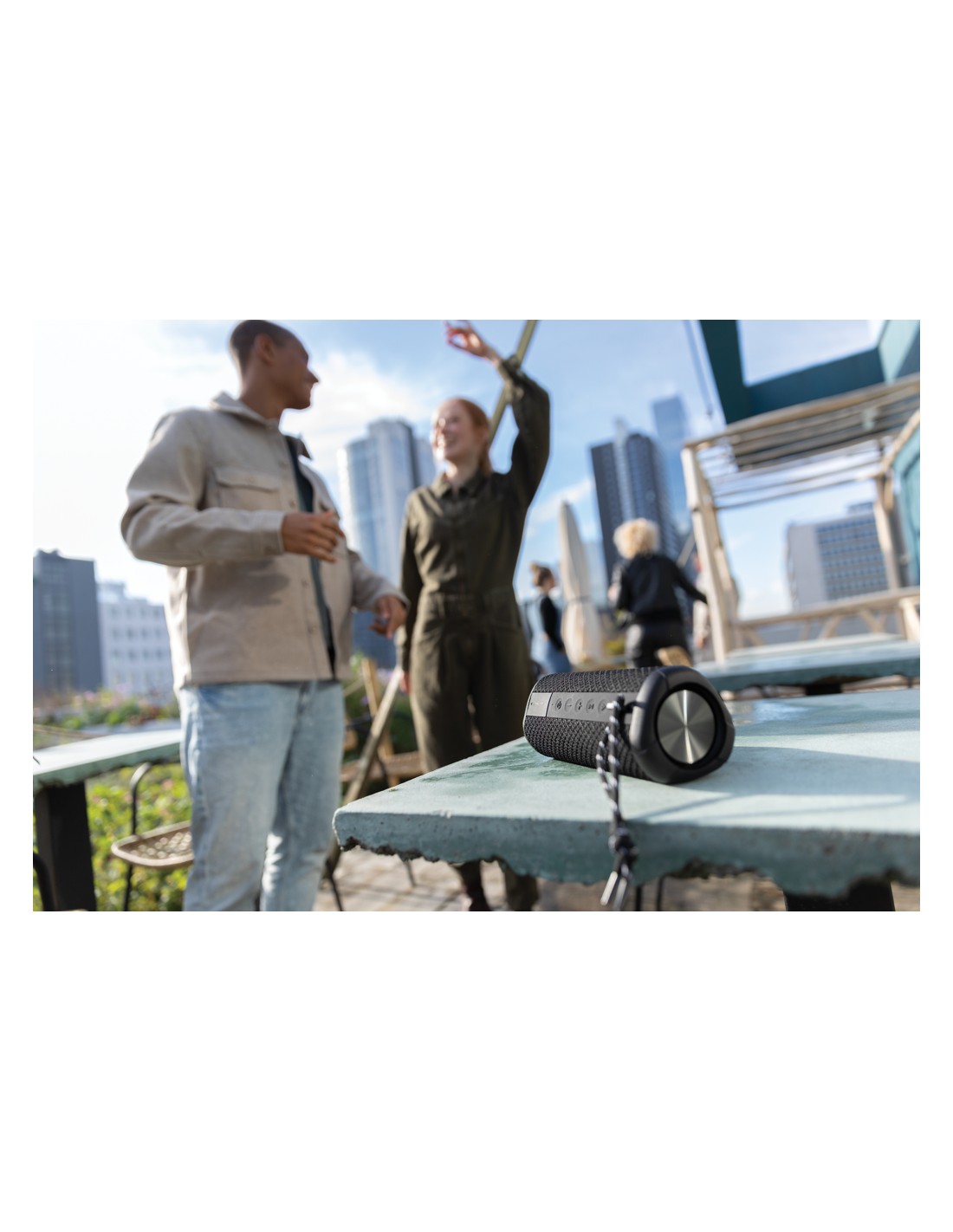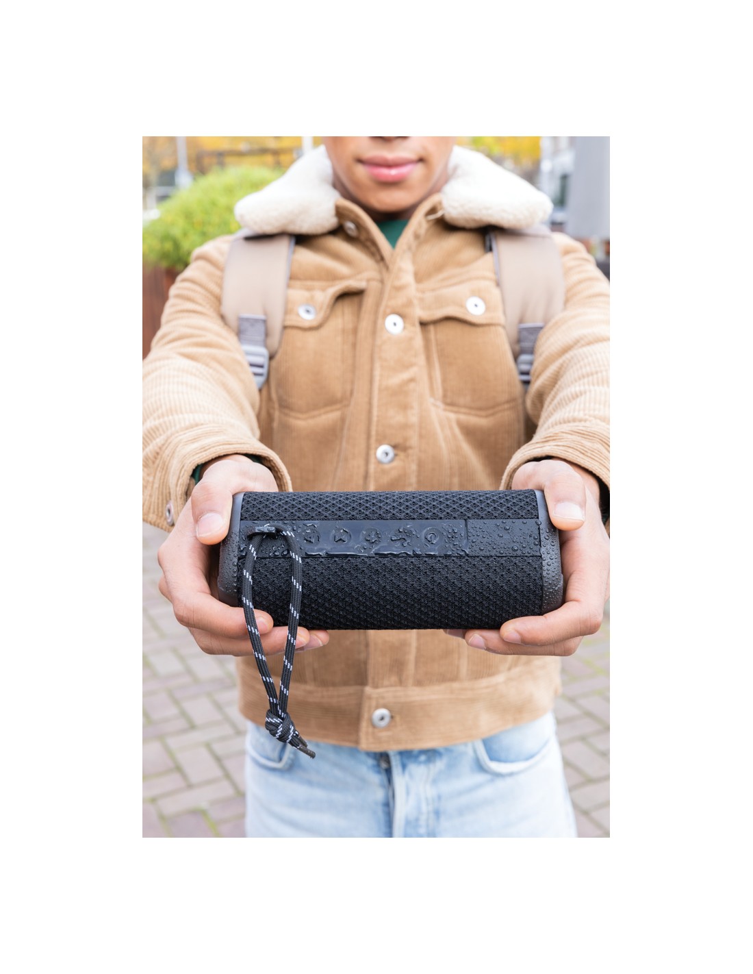 Porta il tuo speaker ovunque tu vada. Giornata in spiaggia? Perfetto! Festa in piscina? Ottimo! Pioggia improvvisa? Non preoccuparti! Il tuo speaker è impermeabile IPX7 fino a 1 metro di profondità e massimo 30 minuti! Dopo una giornata in spiaggia lo potrai facilmente risciacquare sotto nel lavandino. Lo speaker da 10W ha degli ottimi bassi supportati da due subwoofer su entrambe le estremità di esso. Il suono potente è sufficiente per mantenere una festa di buone dimensioni fino al sorgere del sole. Il tessuto resistente e l'alloggiamento robusto assicureranno anche che lo speaker possa sopportare piccoli urti. Goditi fino a 15 ore di musica! Microfono integrato. Gli articoli Urban Vitamin sono realizzati senza PVC e confezionati in imballaggi a ridotto contenuto di plastiche.