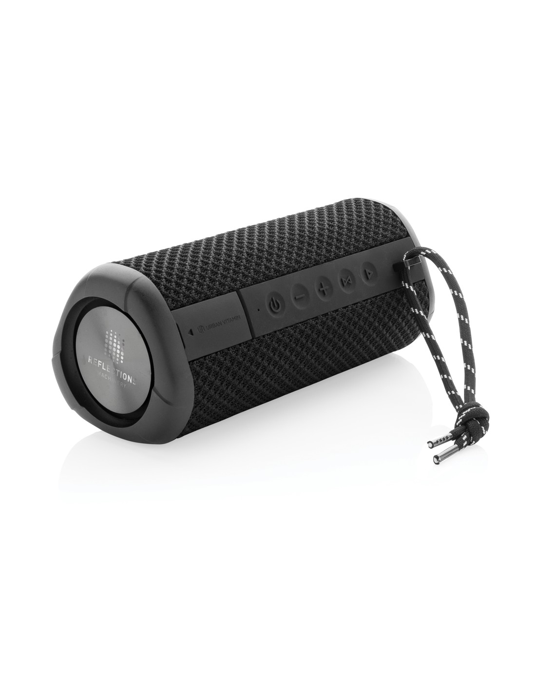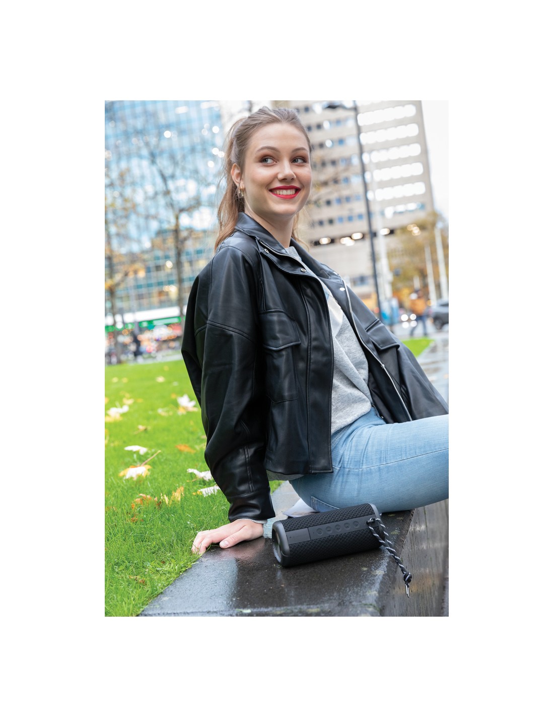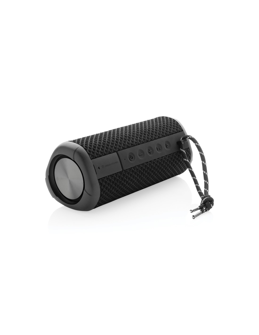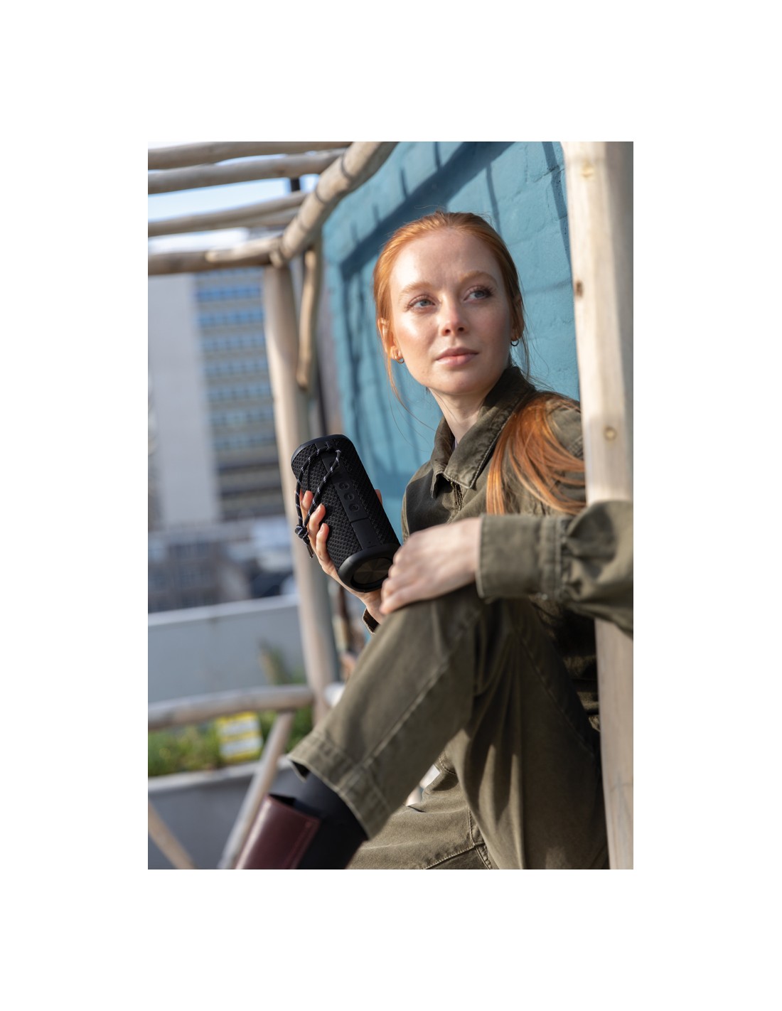 Porta il tuo speaker ovunque tu vada. Giornata in spiaggia? Perfetto! Festa in piscina? Ottimo! Pioggia improvvisa? Non preoccuparti! Il tuo speaker è impermeabile IPX7 fino a 1 metro di profondità e massimo 30 minuti! Dopo una giornata in spiaggia lo potrai facilmente risciacquare sotto nel lavandino. Lo speaker da 10W ha degli ottimi bassi supportati da due subwoofer su entrambe le estremità di esso. Il suono potente è sufficiente per mantenere una festa di buone dimensioni fino al sorgere del sole. Il tessuto resistente e l'alloggiamento robusto assicureranno anche che lo speaker possa sopportare piccoli urti. Goditi fino a 15 ore di musica! Microfono integrato. Gli articoli Urban Vitamin sono realizzati senza PVC e confezionati in imballaggi a ridotto contenuto di plastiche.