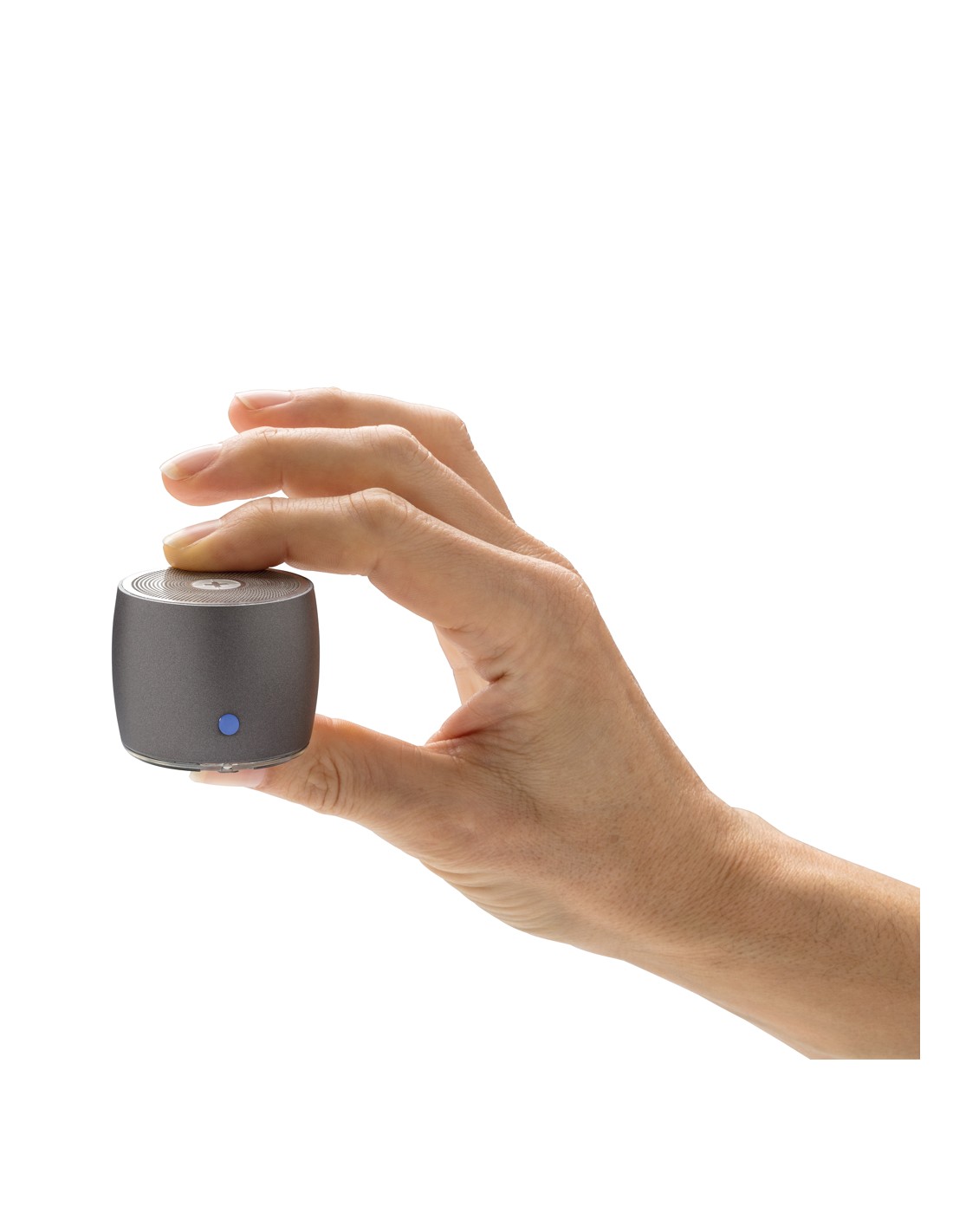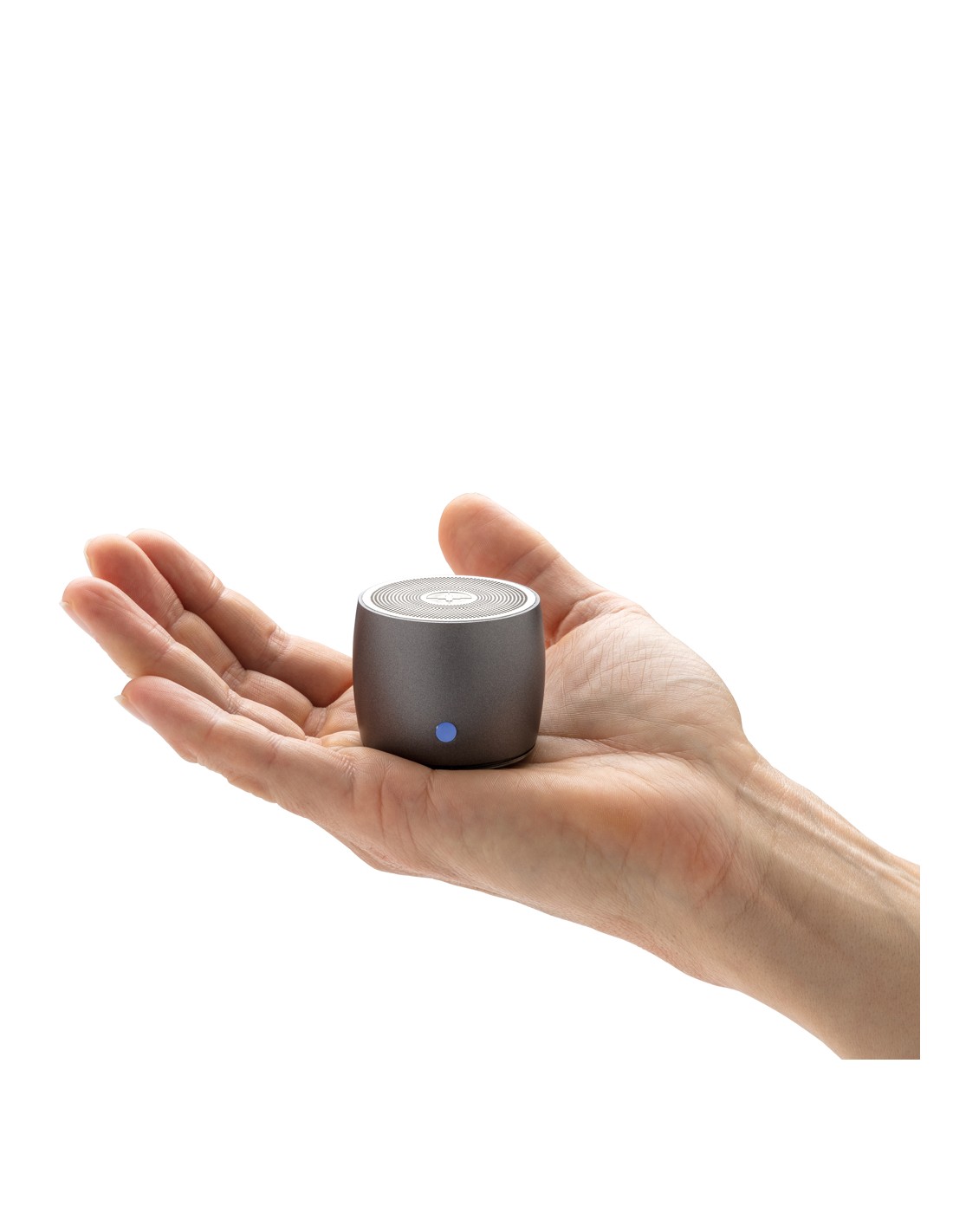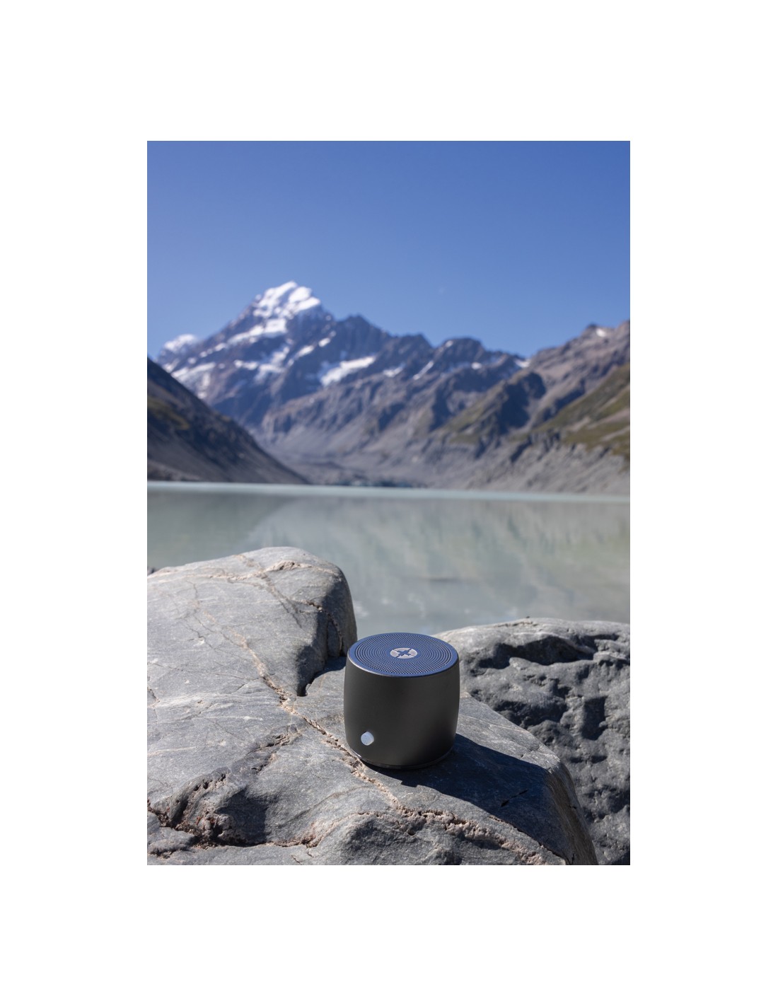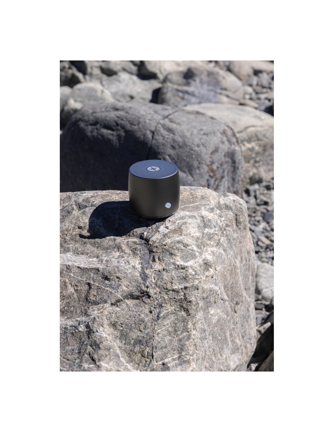 Piccolo ma potente speaker wireless da 3W realizzato con alluminio e ABS riciclati certificati RCS (Recycled Claim Standard). Contenuto riciclato totale: 28% in base al peso totale dell'articolo. La certificazione RCS garantisce una catena di approvvigionamento dei materiali riciclati completamente certificata. L'alluminio non perde le sue caratteristiche nel processo di riciclo e può essere riciclato all'infinito. Incluso cavo di ricarica riciclato di type C realizzato in TPE riciclato certificato RCS. Confezionato in un imballaggio FSC® mix. La batteria da 500 mah garantisce un'autonomia fino a 4 ore e può essere ricaricata completamente in 2 ore. Con BT 5.0 per una connessione fluida fino a 10 metri. Articolo e accessori privi di PVC.