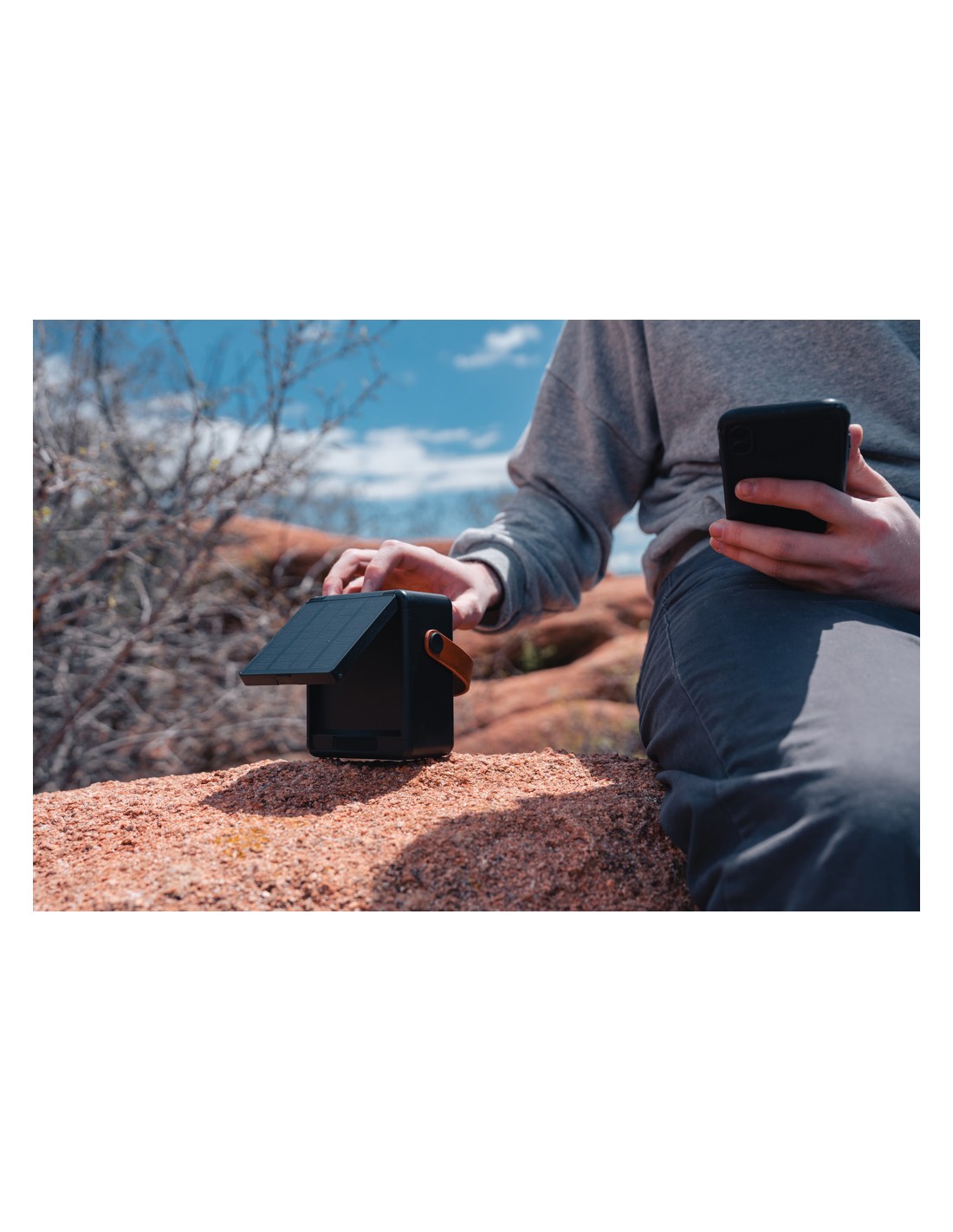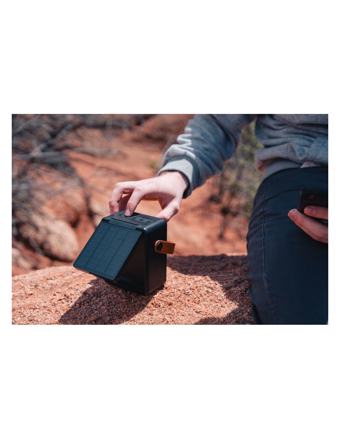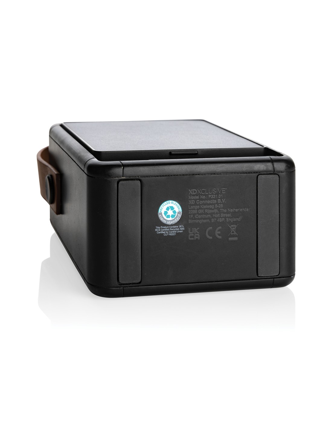 Potente speaker wireless da 12W con pannello solare integrato di grandi dimensioni in ABS riciclato certificato RCS. Contenuto riciclato totale: 16% in base al peso totale dell'articolo. La certificazione RCS garantisce una catena di approvvigionamento dei materiali riciclati completamente certificata. Lo speaker utilizza pannelli solari monocristallini di alta qualità con un tasso di conversione del 19%. La velocità di carica dipende dalle condizioni atmosferiche. Con lampada LED integrata per utilizzare il diffusore anche quando il sole è tramontato. E' dotato di una batteria da 2000 mAh che garantisce fino a 8 ore di riproduzione e di BT5.3 per una connessione fluida e un suono chiaro. Raggio di connessione fino a 10 metri. Con microfono e funzione di risposta alle chiamate. Velocità di ricarica solare: 5V/300mA. Confezionato in scatola FSC mix FSC®. Incluso cavo di ricarica in TPE riciclato certificato RCS. Articolo e accessori 100% senza PVC