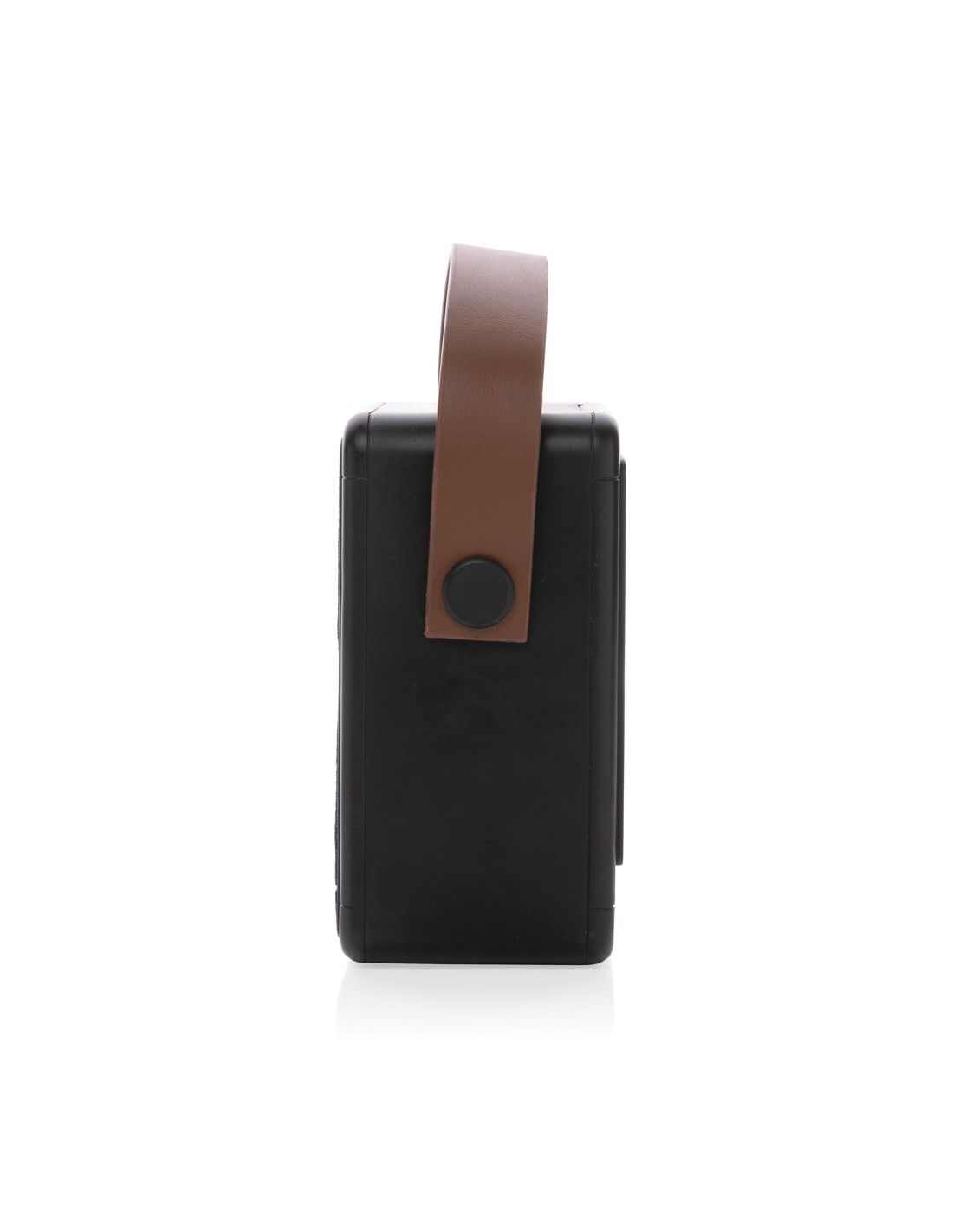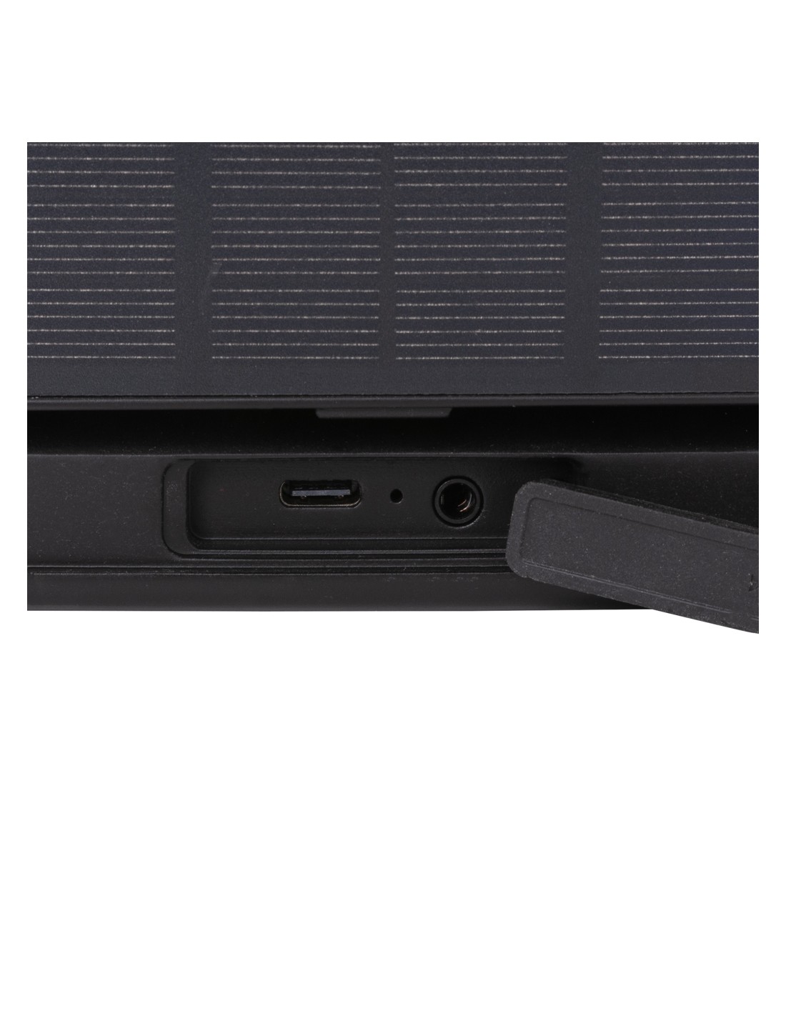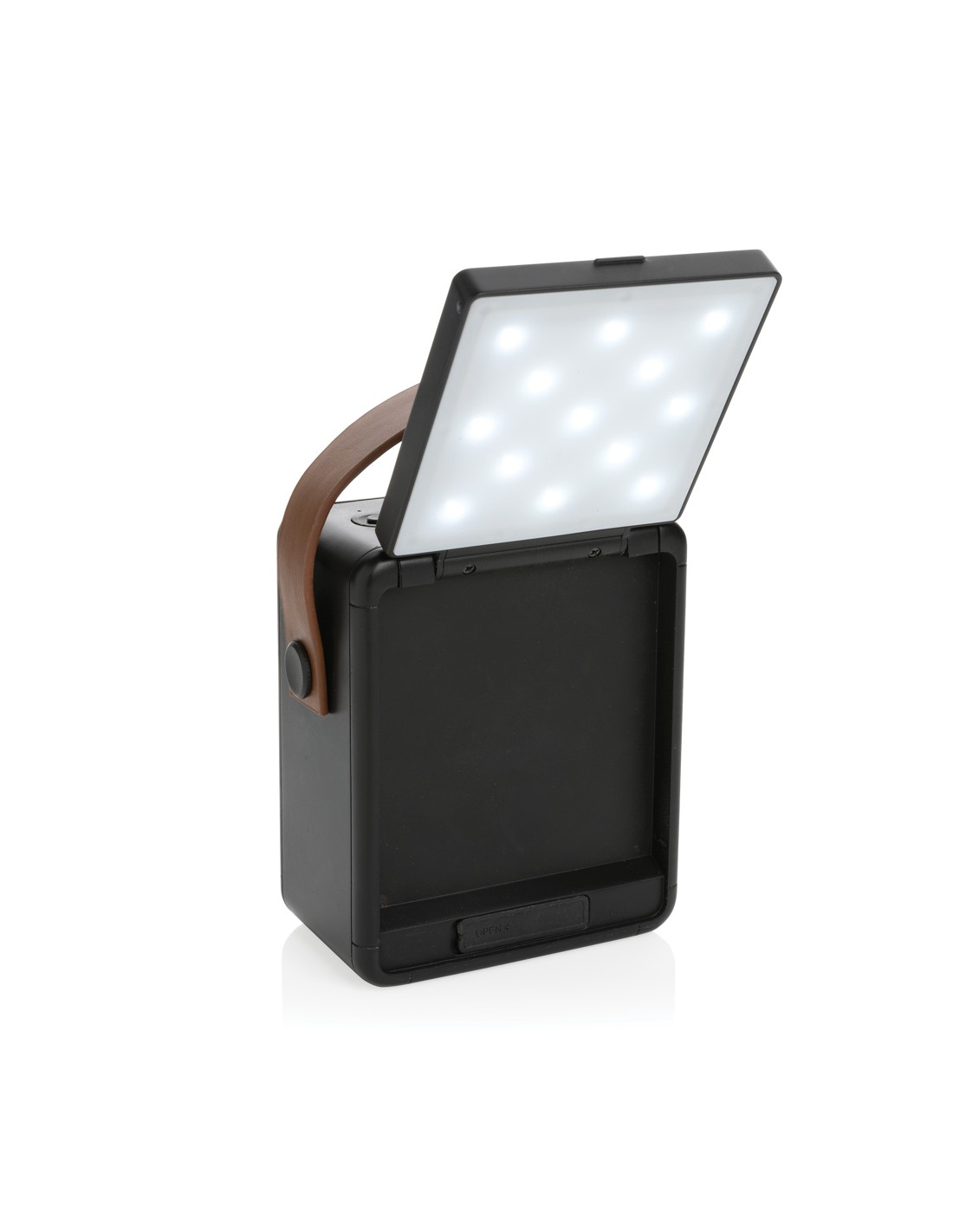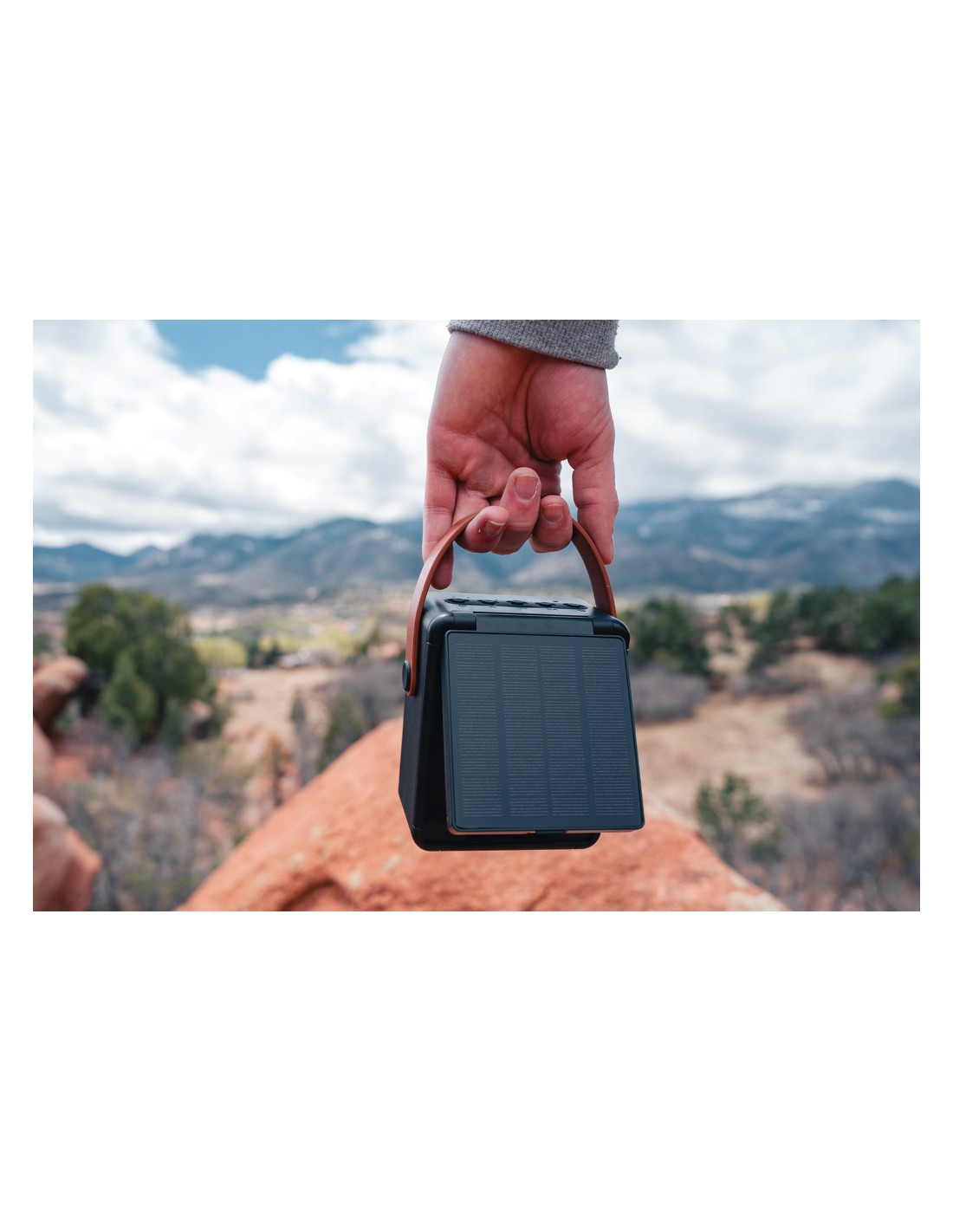 Potente speaker wireless da 12W con pannello solare integrato di grandi dimensioni in ABS riciclato certificato RCS. Contenuto riciclato totale: 16% in base al peso totale dell'articolo. La certificazione RCS garantisce una catena di approvvigionamento dei materiali riciclati completamente certificata. Lo speaker utilizza pannelli solari monocristallini di alta qualità con un tasso di conversione del 19%. La velocità di carica dipende dalle condizioni atmosferiche. Con lampada LED integrata per utilizzare il diffusore anche quando il sole è tramontato. E' dotato di una batteria da 2000 mAh che garantisce fino a 8 ore di riproduzione e di BT5.3 per una connessione fluida e un suono chiaro. Raggio di connessione fino a 10 metri. Con microfono e funzione di risposta alle chiamate. Velocità di ricarica solare: 5V/300mA. Confezionato in scatola FSC mix FSC®. Incluso cavo di ricarica in TPE riciclato certificato RCS. Articolo e accessori 100% senza PVC