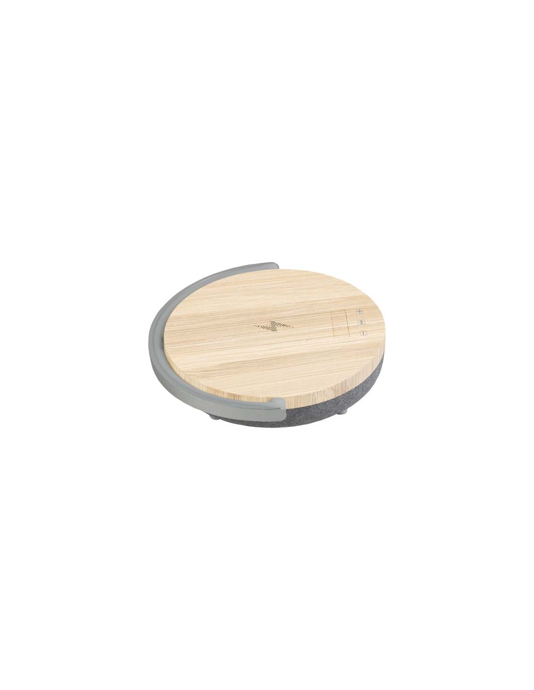 Speaker wireless 5.0 in Bamboo e PP, con luce d'atmosfera a 4 colori e tracolla. 1 batteria ricaricabile Li-POL 300 mAh. Dati di uscita: 3W, 4 Ohm. Tempo di riproduzione di circa 2 ore.