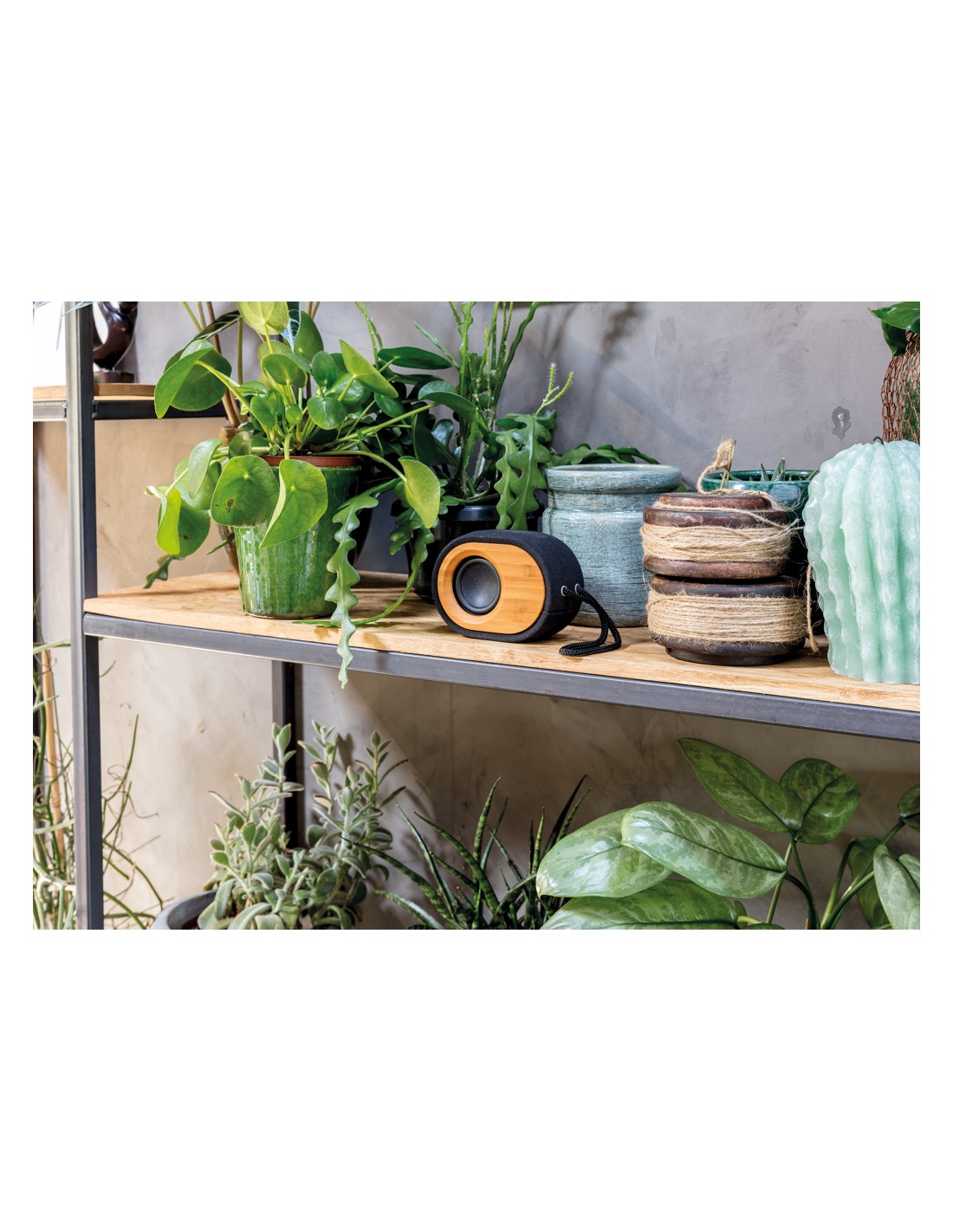 Suono naturale da uno speaker naturale. Questo speaker abbina sostenibilità e qualità del suono. La struttura è in bambù e il tessuto è 30% cotone biologico, 40% canapa e 30% rPET. Potenza 5W. Grazie alla batteria al litio da 1.500 mAh ha un'autonomia di circa 8 ore con una singola carica. Tecnologia BT 4.2 per una connessione perfetta fino a 10m. Design registrato®.Confezionato in scatola 100% senza plastica.