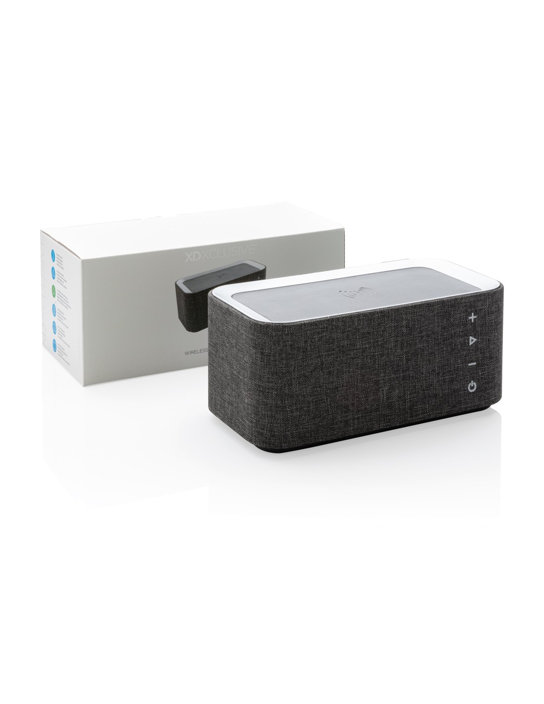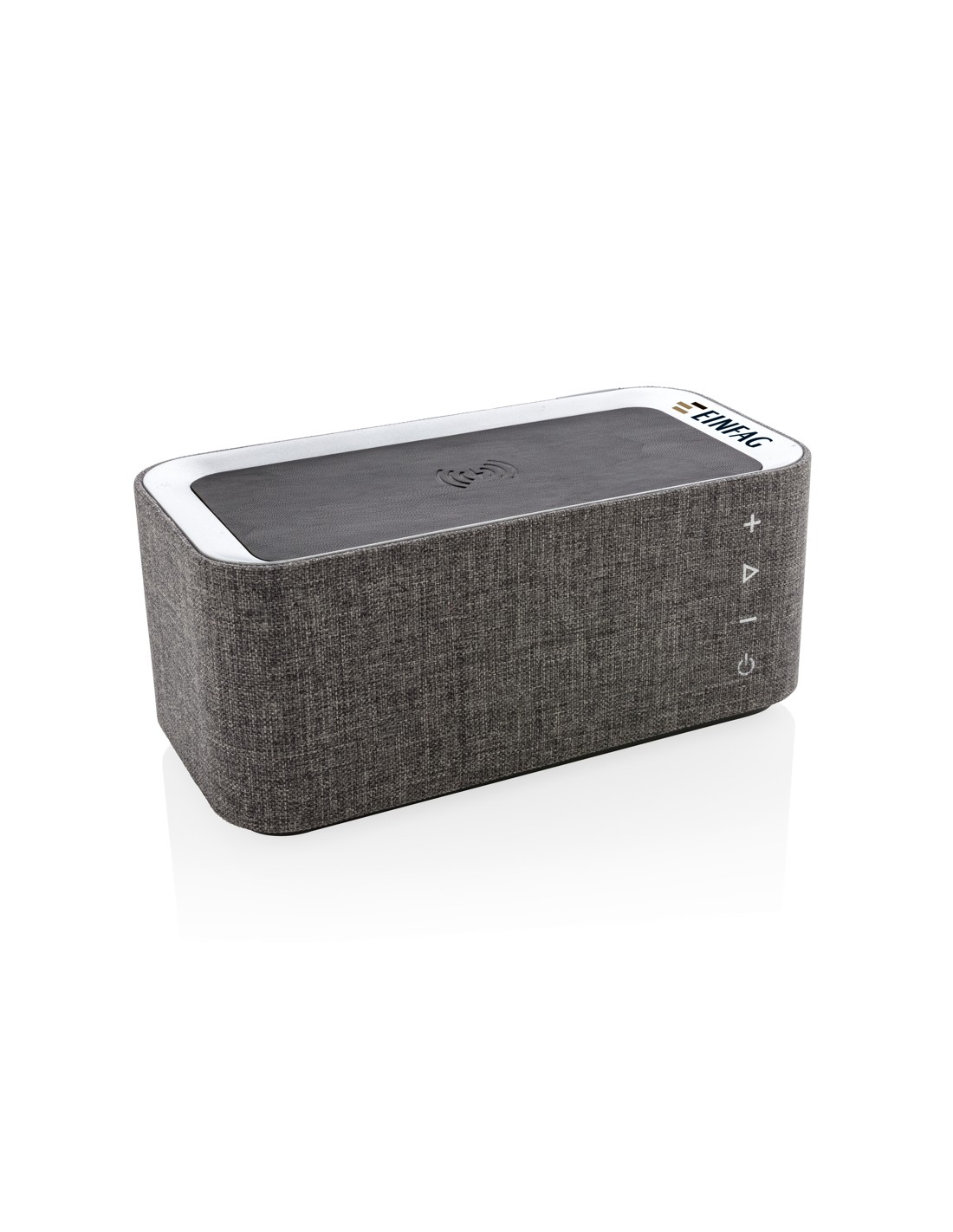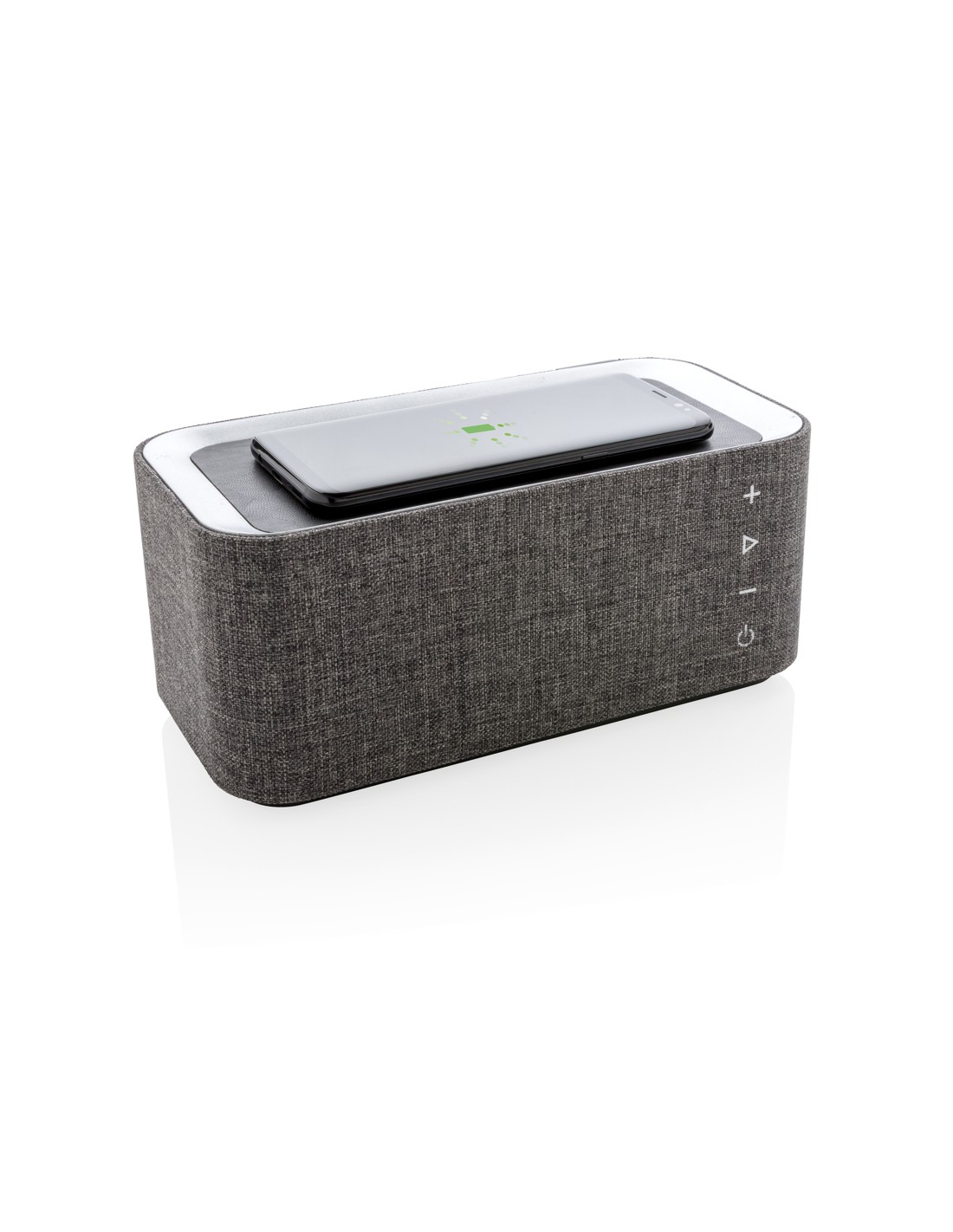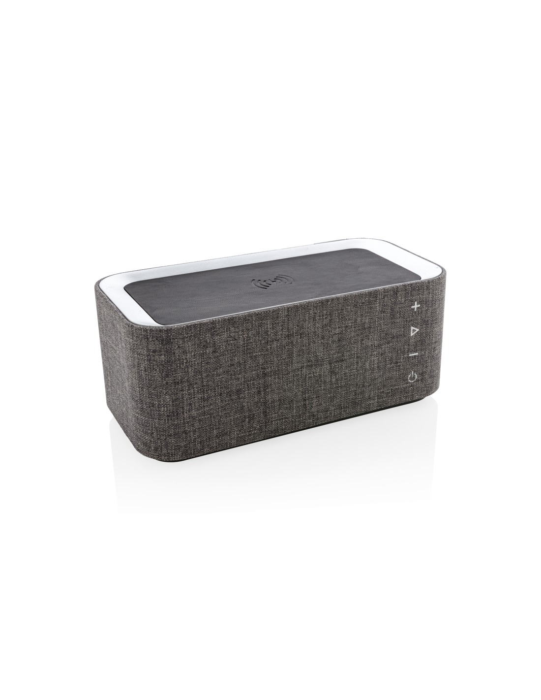 Lo speaker e caricatore wireless da 6W ha due funzioni essenziali per lo stile di vita moderno: ascoltare la tua musica preferita e ricaricare il tuo smartphone senza cavi. Il suo design in tessuto è perfetto per la tua scrivania, a casa o durante i tuoi viaggi. Grazie alla tecnologia BT 3.0 avrai una connessione pulita e stabile fino a 10 metri. Include tasto per rispondere alle chiamate in entrata. La batteria da 4.000 mAh ti consente di ascoltare musica per circa 10 ore oppure di ricaricare il tuo smartphone circa 2 volte (dipende dalla capacità della batteria del telefono). Nel caso in cui il tuo smartphone non supporti la ricarica wireless, potrai farlo tramite cavo utilizzando la porta USB sul retro. Se utilizzi le 2 tecnologie contemporaneamente è consigliato collegarlo ad una fonte di energia grazie al cavo micro USB da 150 cm. Input: 5V/1A. Output: 5V/1A. Wireless output: 5W. Design registrato®