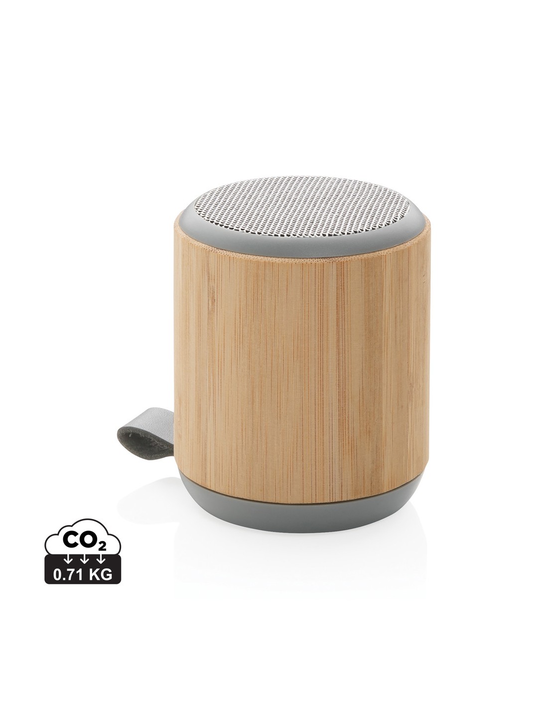 Speaker 3W in bambù con batteria al litio integrata da 300 mAh. Autonomia di circa 3 ore con una singola carica e una distanza operativa di 10 m grazie alla tecnologia BT 5.0. Realizzato in bambù naturale e tessuto.