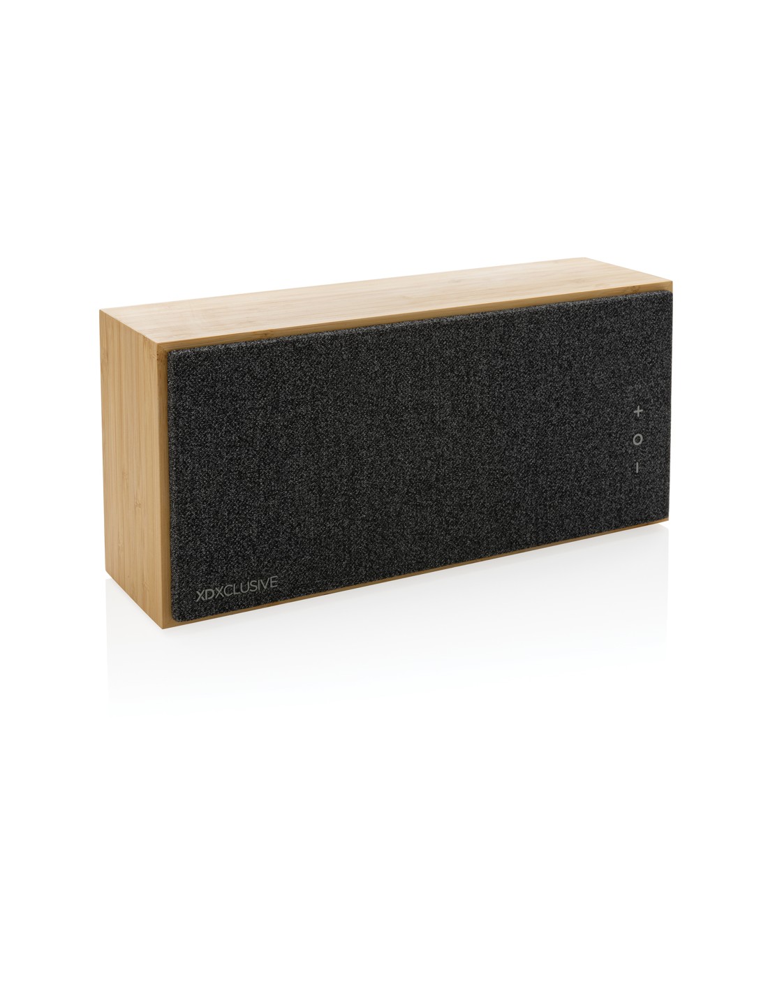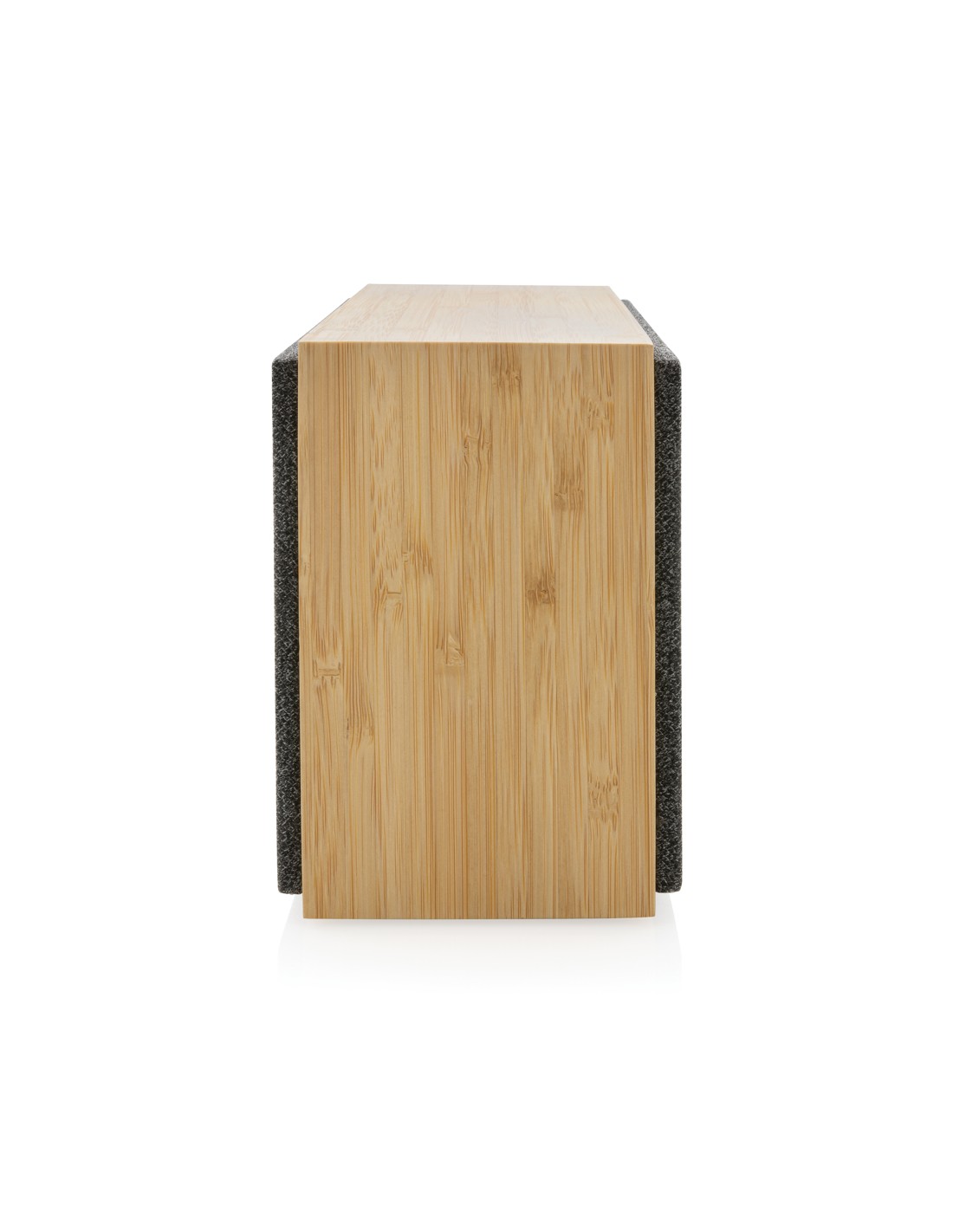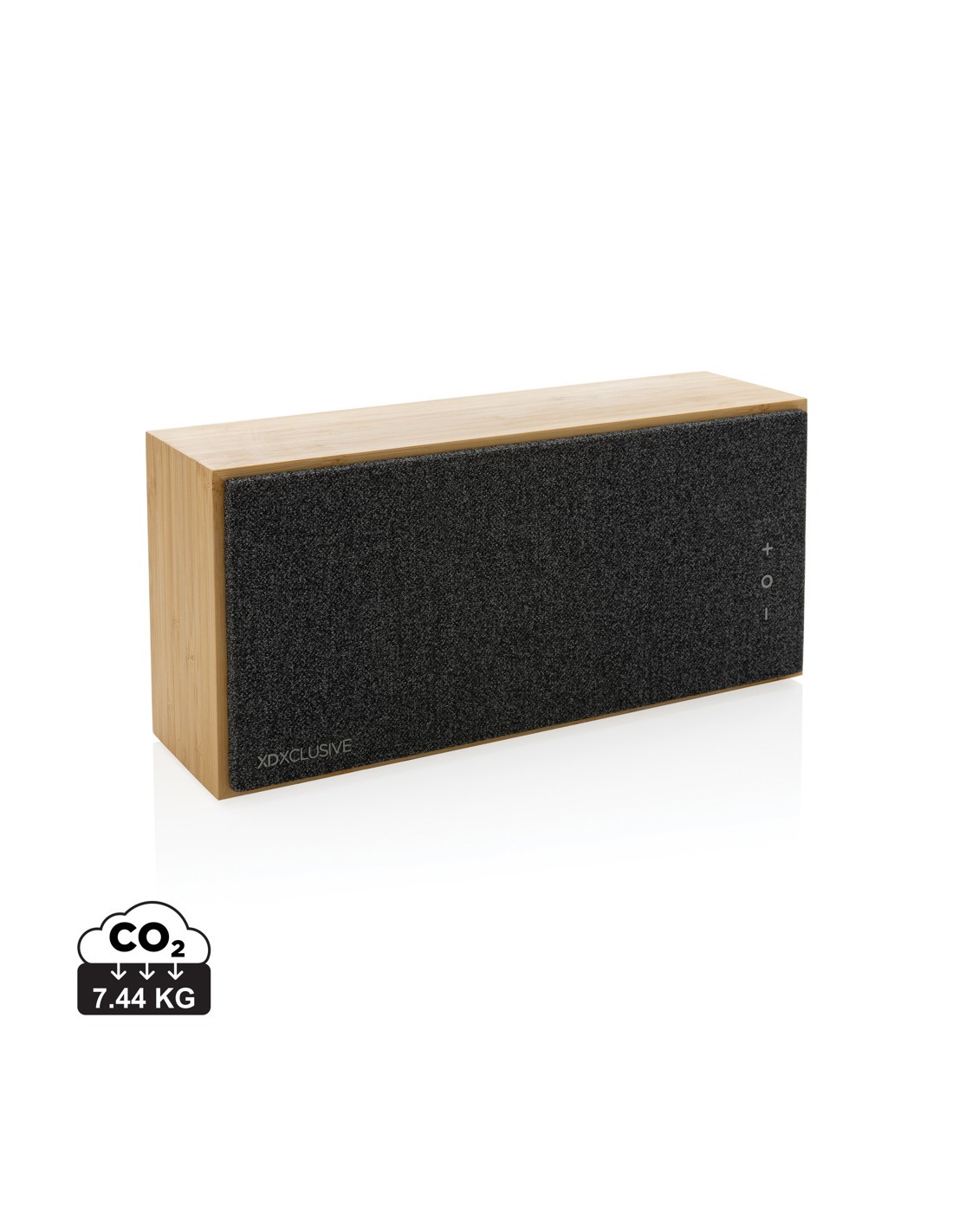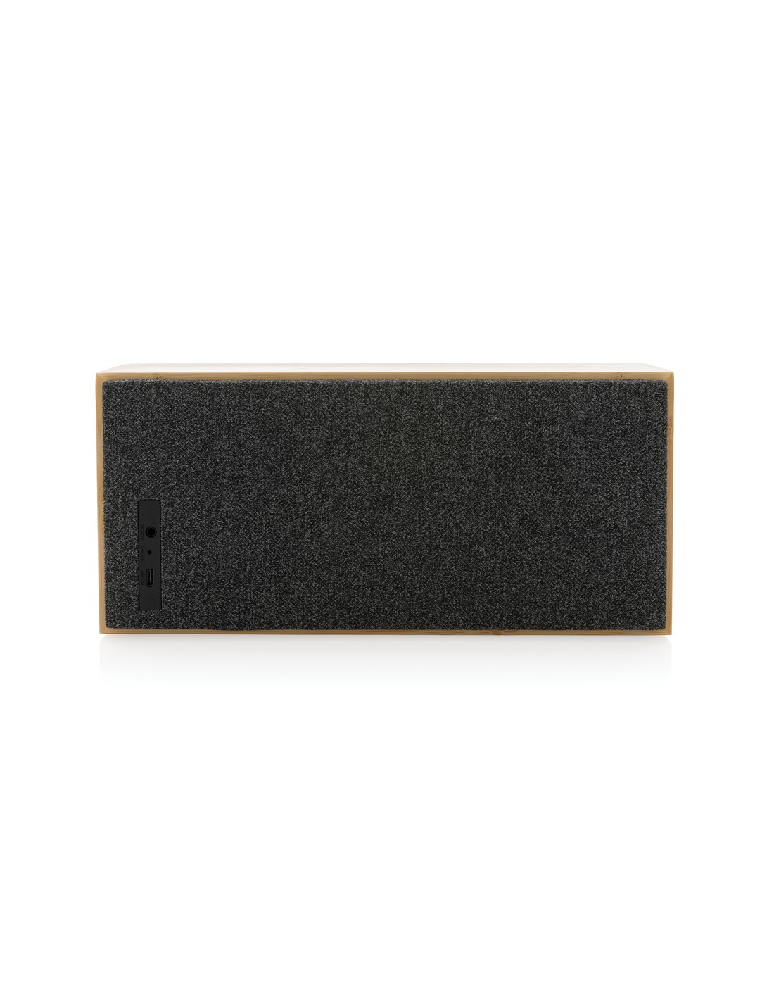 5.3 speaker wireless in ABS con finitura in tessuto poliestere RPET e caricatore wireless da 15W in bamboo, con maniglia in iuta. 1 batteria ricaricabile agli ioni di litio da 1200 mAh. Dati di uscita: 5W, 4 Ohm e 5V. Tempo di riproduzione di circa 4 ore.
