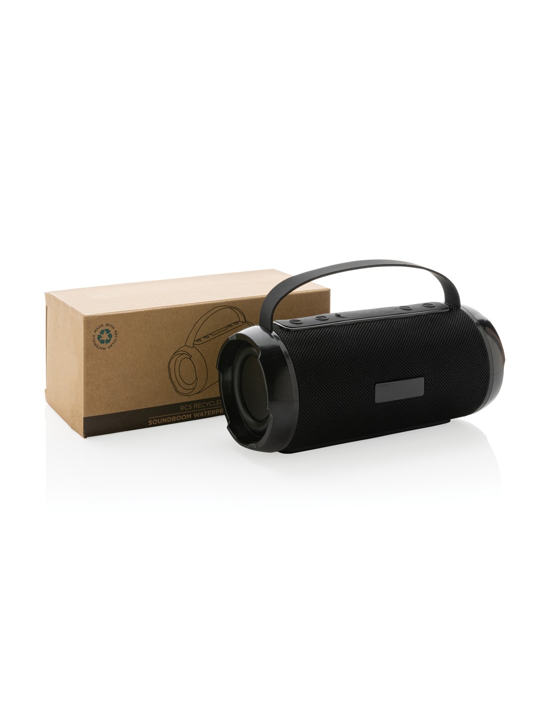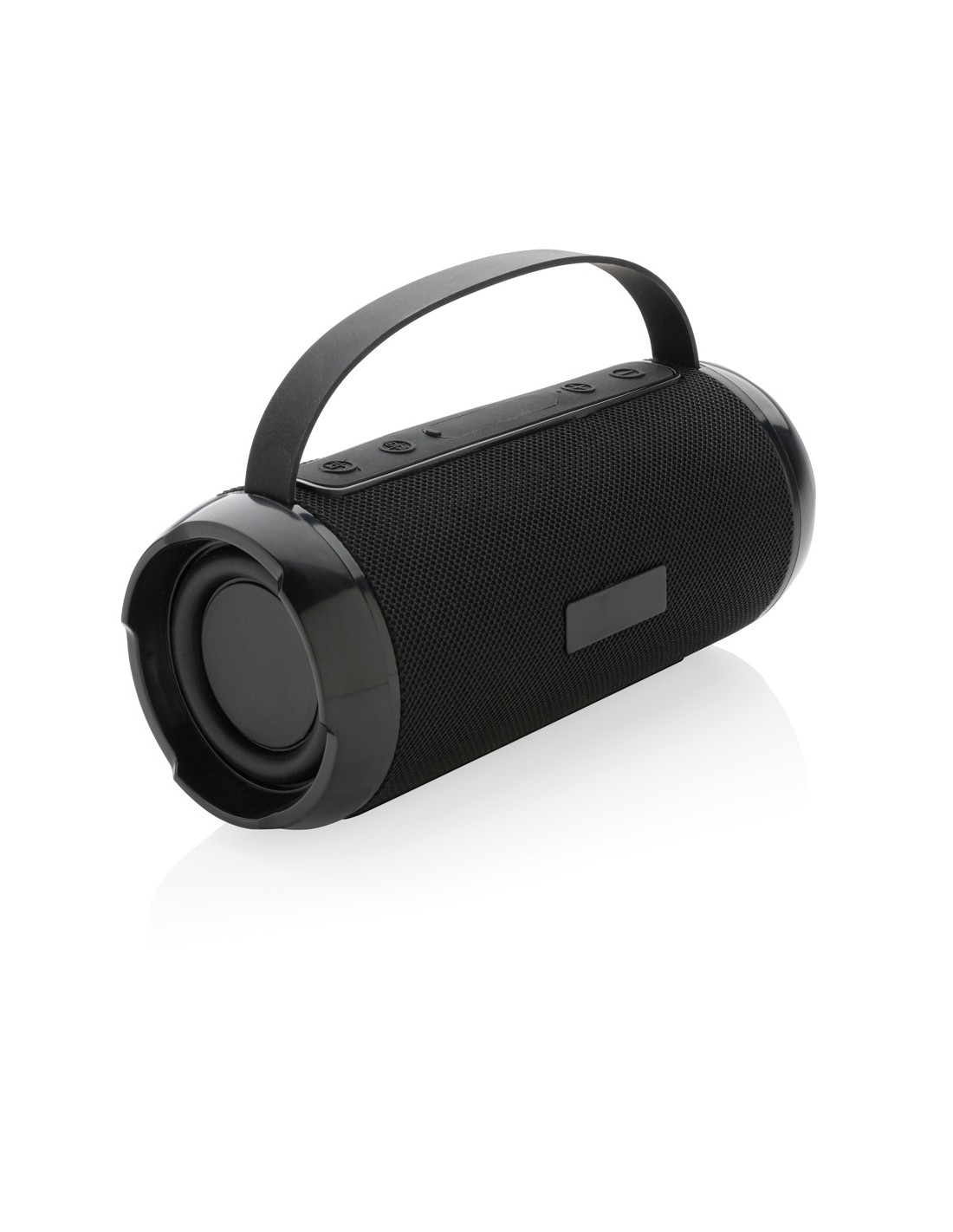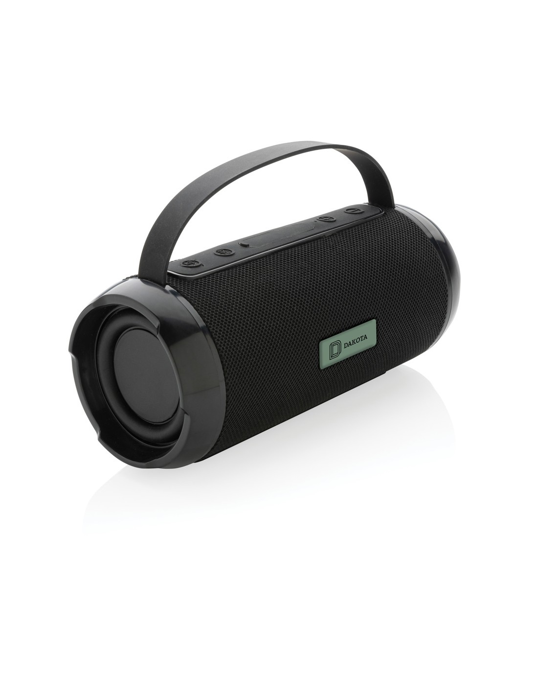Speaker wireless 5.0 in ABS e tessuto RPET e dettaglio in bambù sulla parte superiore. 1 batteria ricaricabile Li-ION da 1200 mAh inclusa. Include una porta per schede SD e un cavo AUX/USB. Dati di uscita: 5W, 3 Ohm e 5V. Tempo di riproduzione di circa 3 ore.