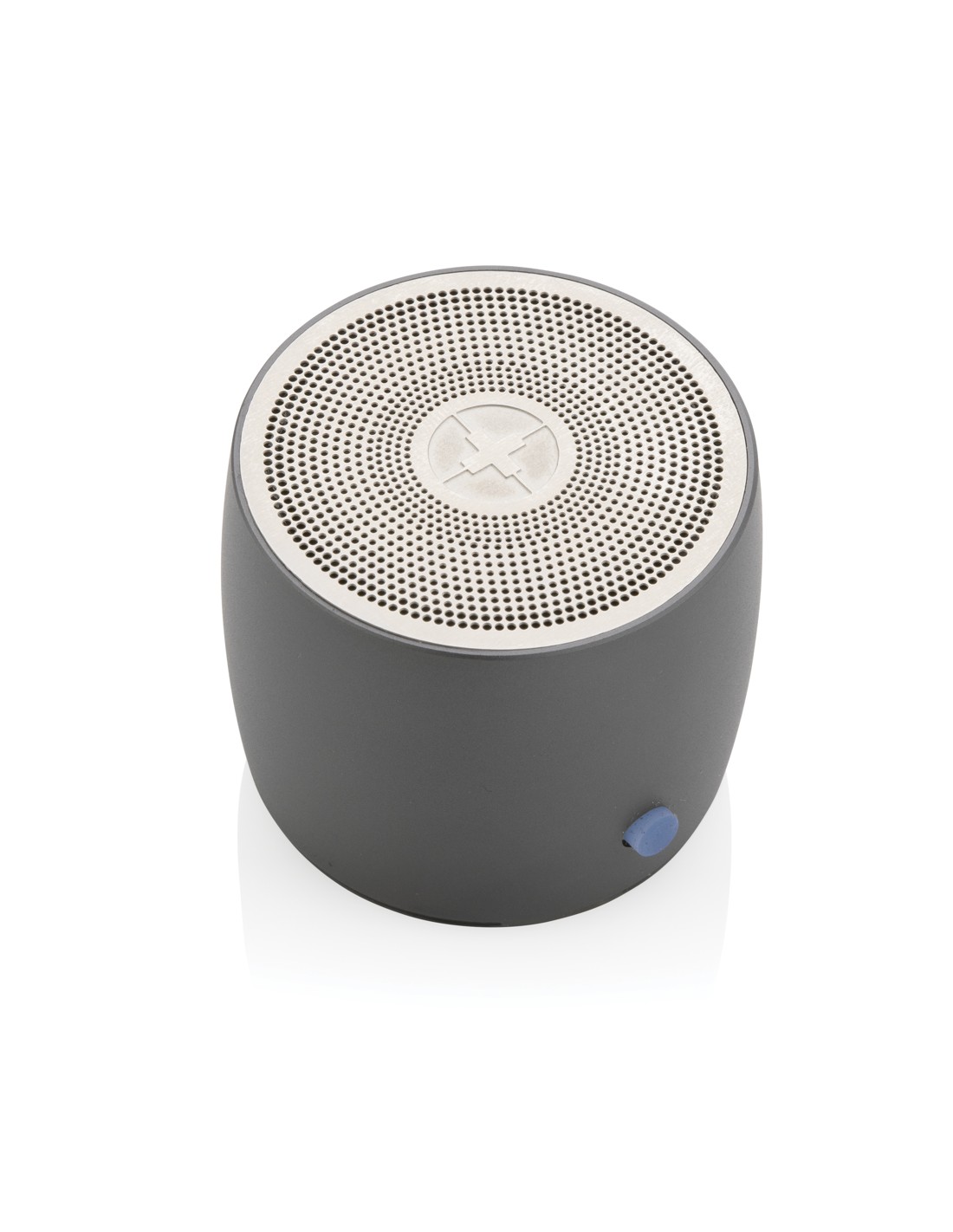 Piccolo ma potente speaker wireless da 3W realizzato con alluminio e ABS riciclati certificati RCS (Recycled Claim Standard). Contenuto riciclato totale: 28% in base al peso totale dell'articolo. La certificazione RCS garantisce una catena di approvvigionamento dei materiali riciclati completamente certificata. L'alluminio non perde le sue caratteristiche nel processo di riciclo e può essere riciclato all'infinito. Incluso cavo di ricarica riciclato di type C realizzato in TPE riciclato certificato RCS. Confezionato in un imballaggio FSC® mix. La batteria da 500 mah garantisce un'autonomia fino a 4 ore e può essere ricaricata completamente in 2 ore. Con BT 5.0 per una connessione fluida fino a 10 metri. Articolo e accessori privi di PVC.