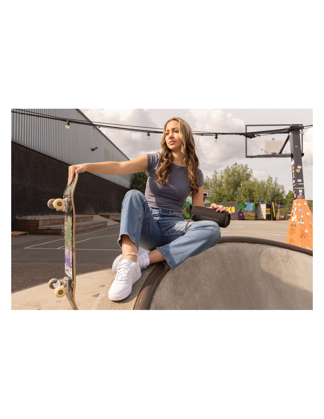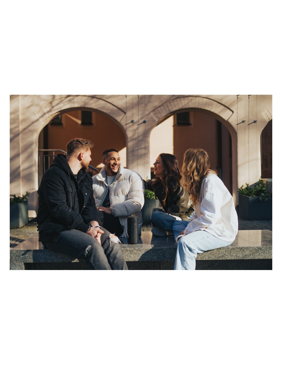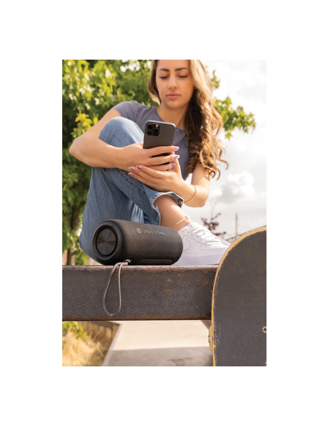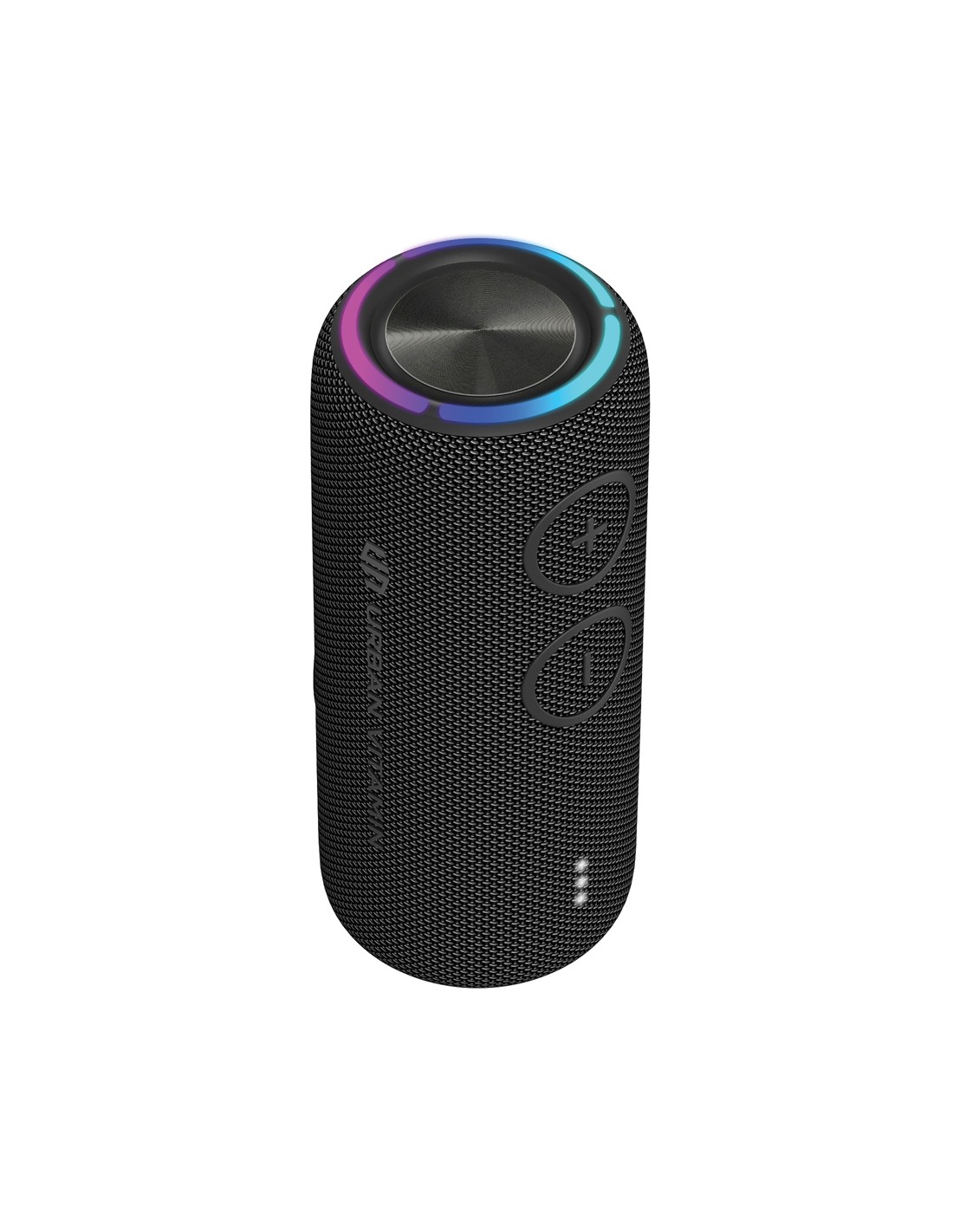 Speaker wireless 5.1 con cassa in ABS e bambù sulla parte superiore. Caricatore wireless integrato da 10 W per ricaricare lo smartphone e di un power bank da 4000 mAh. Uscita DC 9V/1.1A.