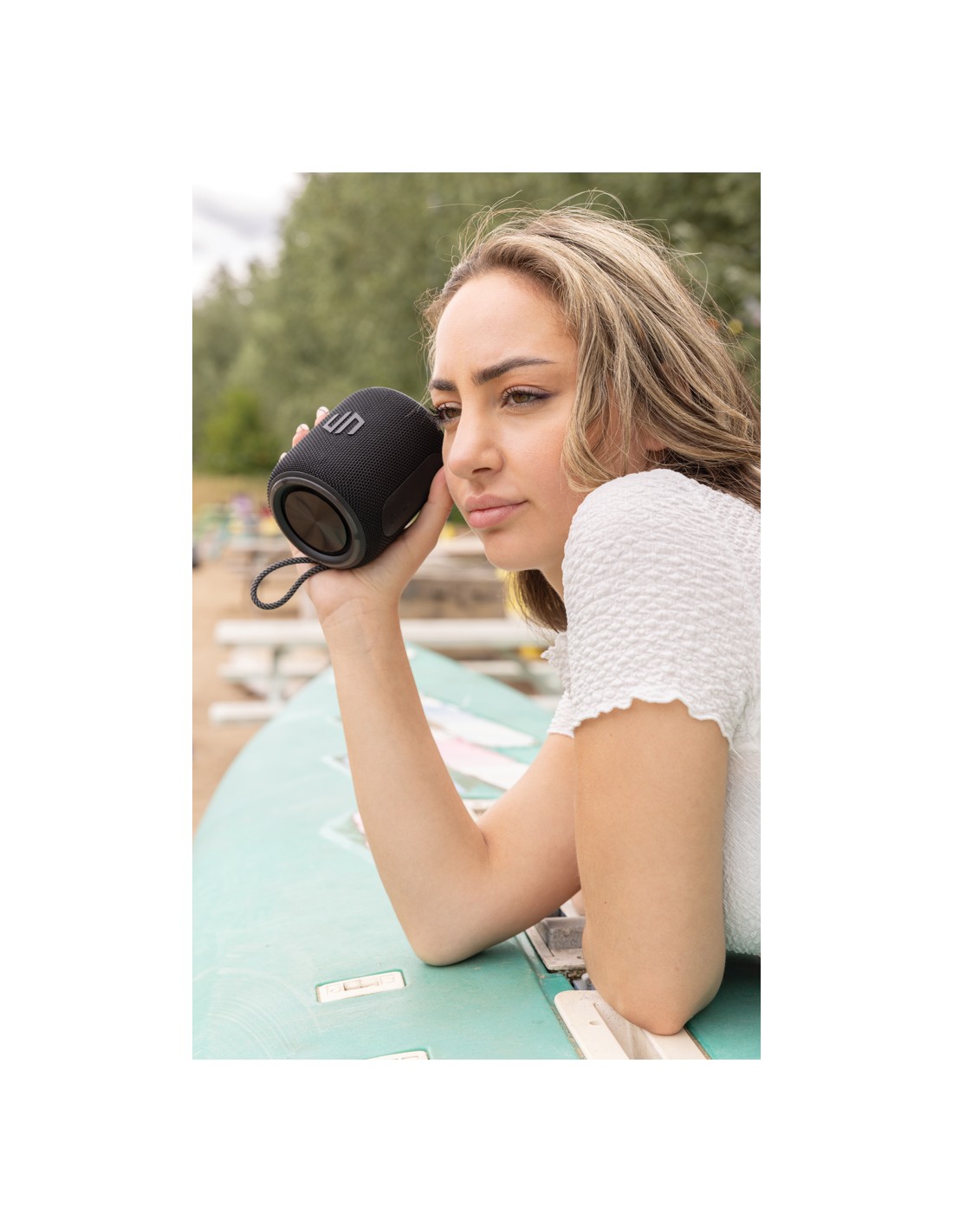 Lo speaker wireless da 3 W Hunor con tecnologia Bluetooth® è realizzato in plastica riciclata e presenta una porta di ricarica Type-C, controlli per il volume, un pulsante per riprodurre la musica/mettere in pausa/effettuare chiamate e di un microfono integrato. Grazie alla funzionalità TWS (True...