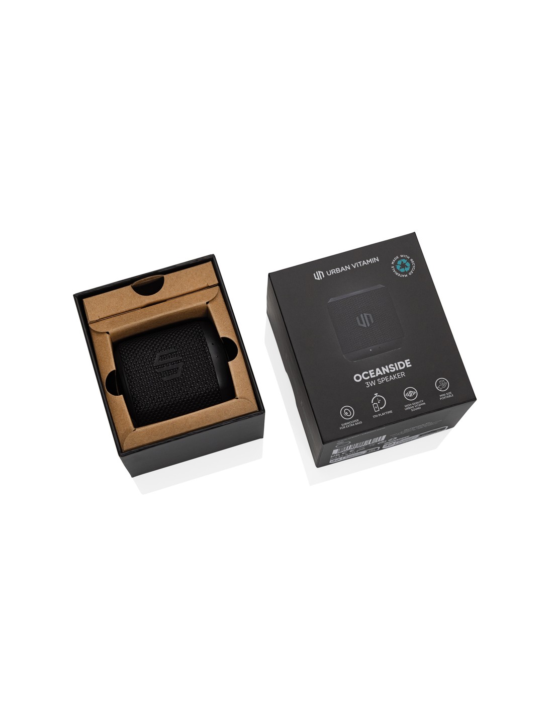 Date un'occhiata al lato Ocean. Questo speaker da 3W è tascabile ma crea un suono potente ovunque si vada! Da dove provengono i bassi? Oceanside ve li fornirà grazie al suo piccolo ma potente subwoofer. A differenza di molti altri piccoli speaker, Oceanside ha un'autonomia di 17 ore (al 50% del volume) e vi farà divertire a lungo. Oceanside è realizzato con ABS e PET riciclati certificati RCS (Recycled Claim Standard). Contenuto totale di materiale riciclato: 39% in base al peso totale dell'articolo. Gli articoli Urban Vitamin sono realizzati senza PVC e confezionati in imballaggi a ridotto contenuto di plastica.
