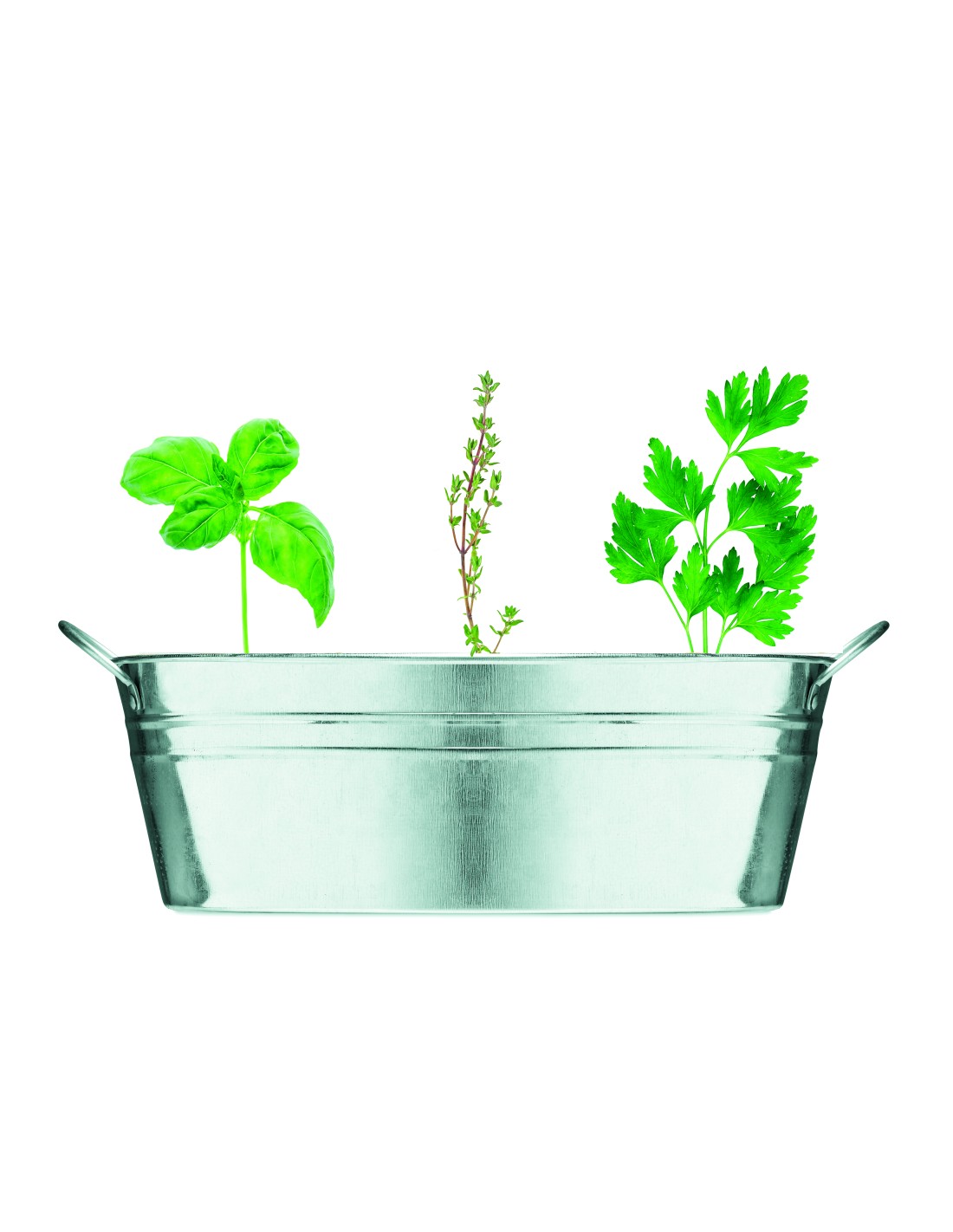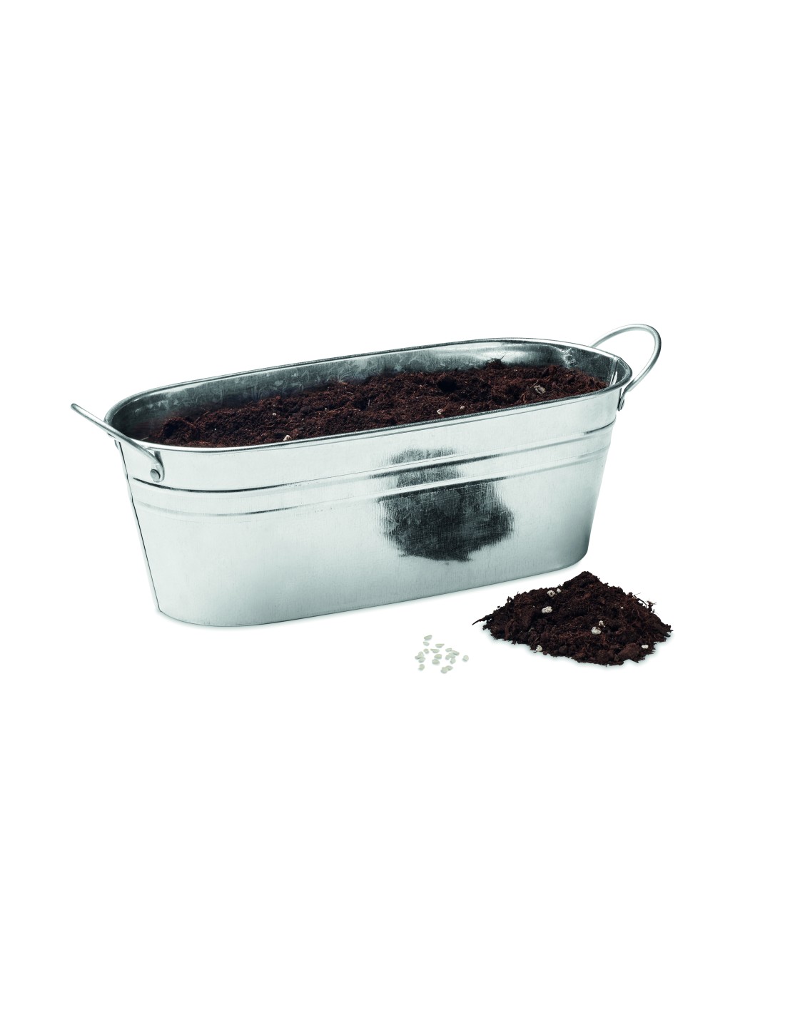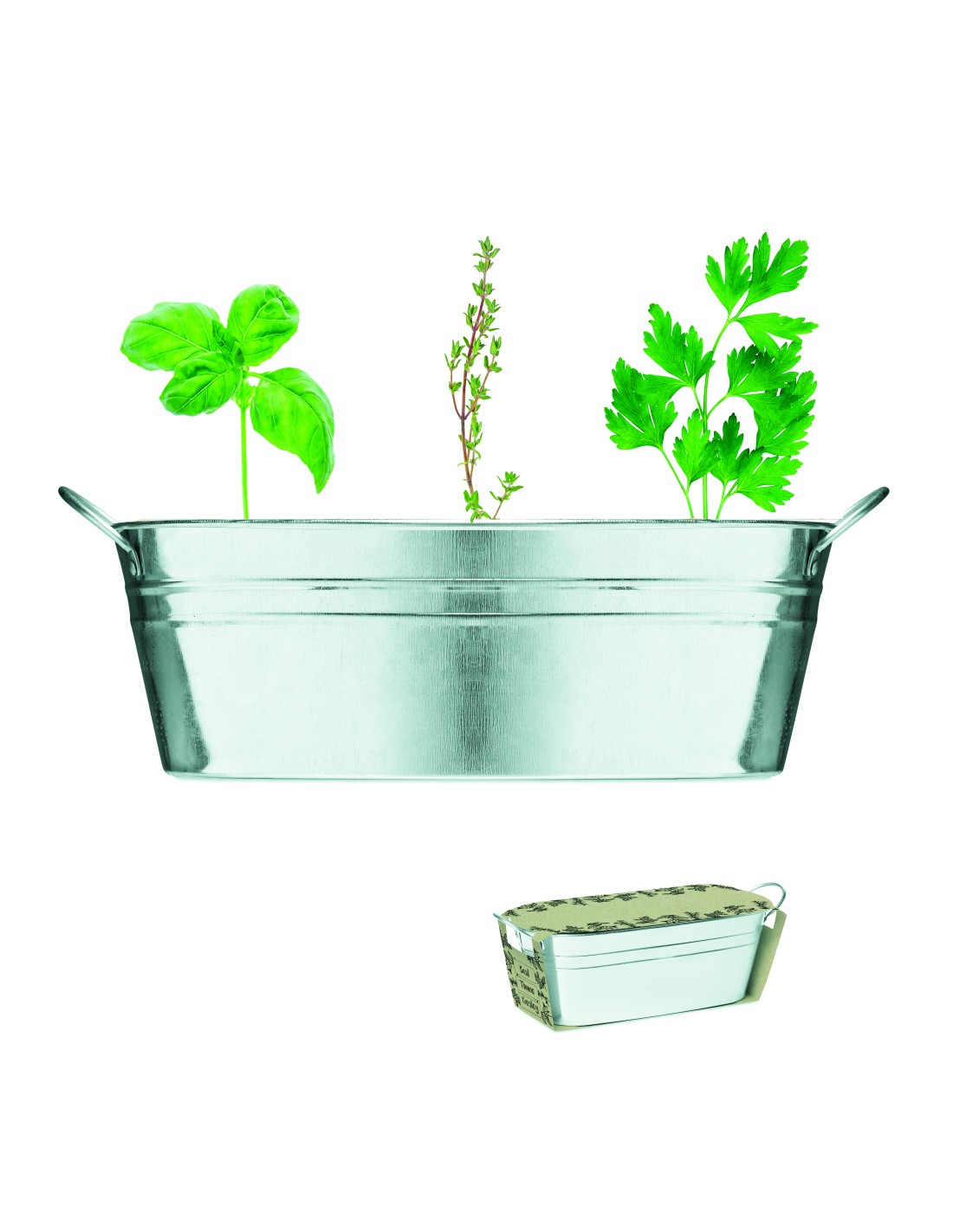 Vaschetta per piante in zinco con una selezione di 3 semi di erbe, compreso il terriccio da giardino. Prodotto in UE.