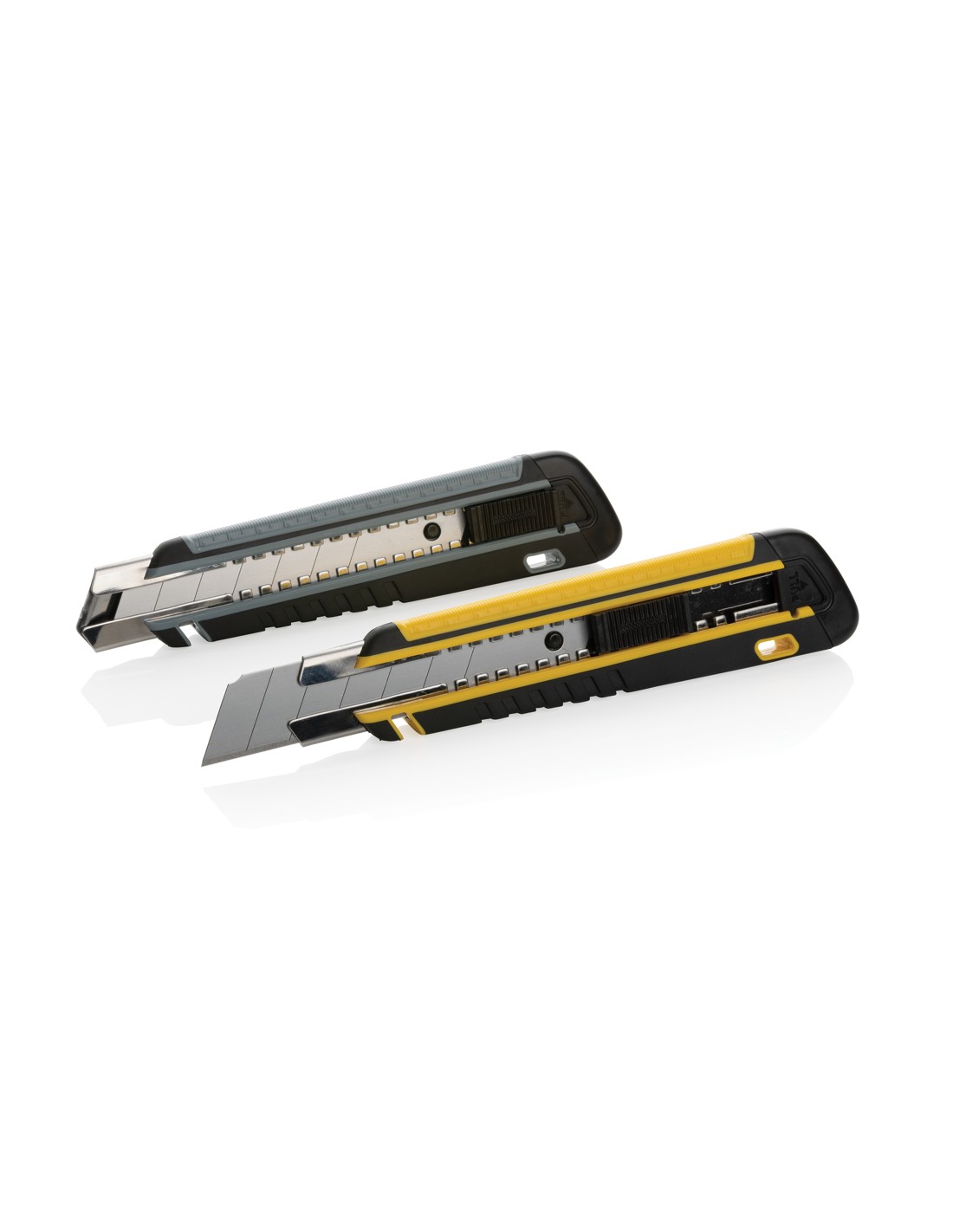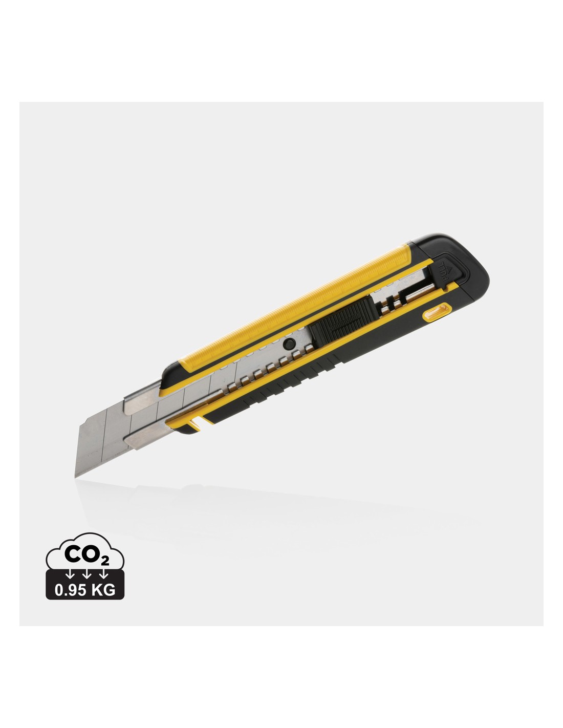 Tagierino a scatto ricaricabile realizzato con ABS riciclato certificato RCS (Recycled Claim Standard), TPE e lama in acciaio inossidabile. Contenuto totale riciclato: 41% in base al peso totale dell'articolo. La certificazione RCS garantisce una catena di approvvigionamento dei materiali riciclati completamente certificata. Questo versatile strumento è dotato di una lama a scatto che consente di sostituire facilmente la lama SK4 quando si usura. Se dovete tagliare cartone, plastica o anche sottili fogli di metallo, questo taglierino a scatto sarà all'altezza del compito. La lama affilata e resistente garantisce tagli precisi e puliti. E' anche incredibilmente facile da usare. L'impugnatura confortevole offre una presa sicura, consentendo di mantenere il controllo completo durante il taglio. Inoltre, il design leggero lo rende facile da portare con sé ovunque si vada. In confezione kraft FSC® mix. Viene fornito con una lama incorporata e due di ricambio.