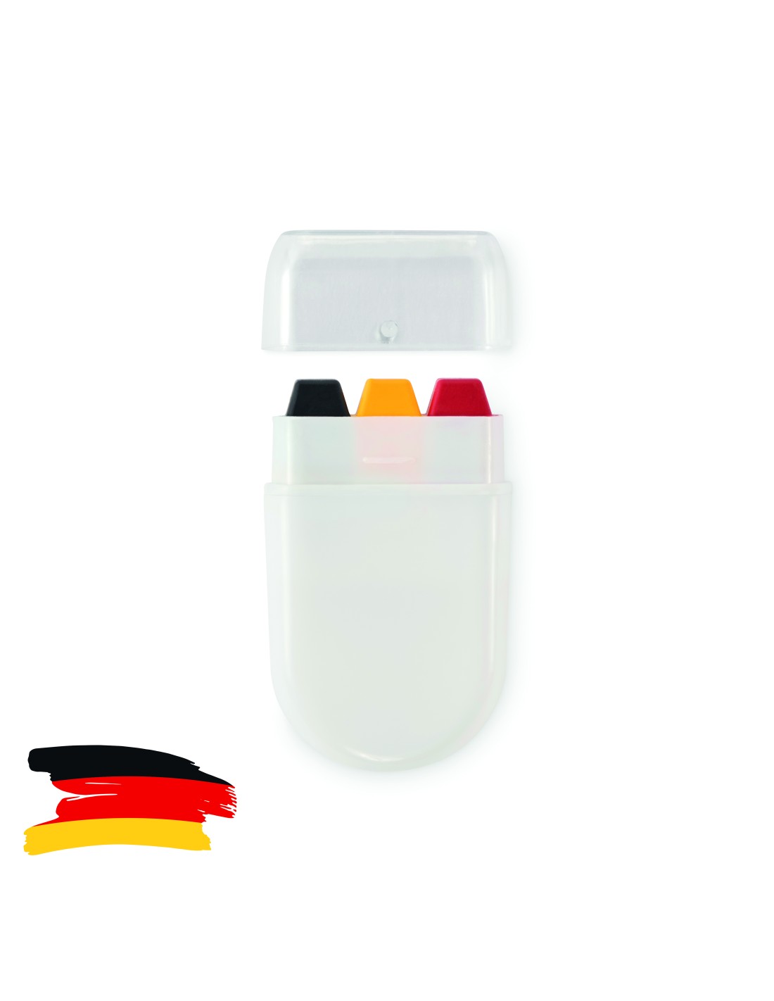 Stick di pittura per il corpo nei colori della bandiera nazionale con vernice a cera in astuccio in PP e coperchio in PS.