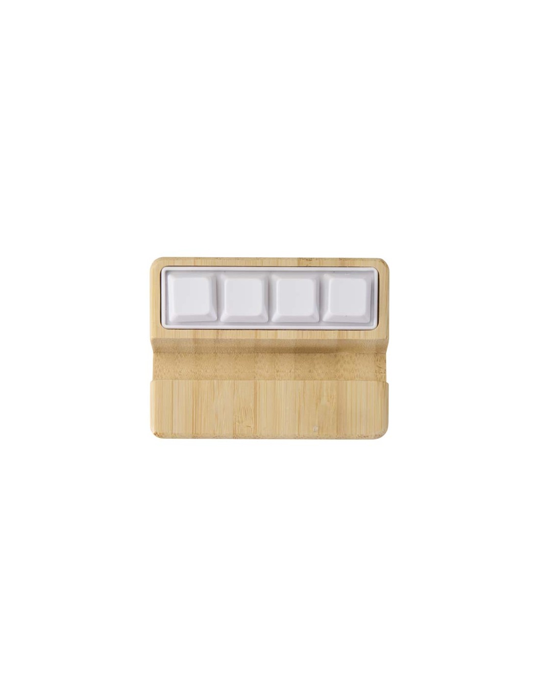 Supporto per telefono in plastica riciclata e giocattolo antistress con dettagli in bambù Algol