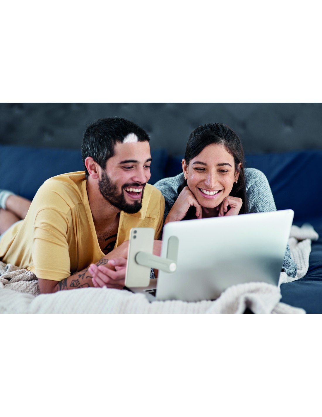 Porta telefono magnetico e supporto in ABS riciclato. Include un anello metallico aggiuntivo per supportare i telefoni non magnetici.