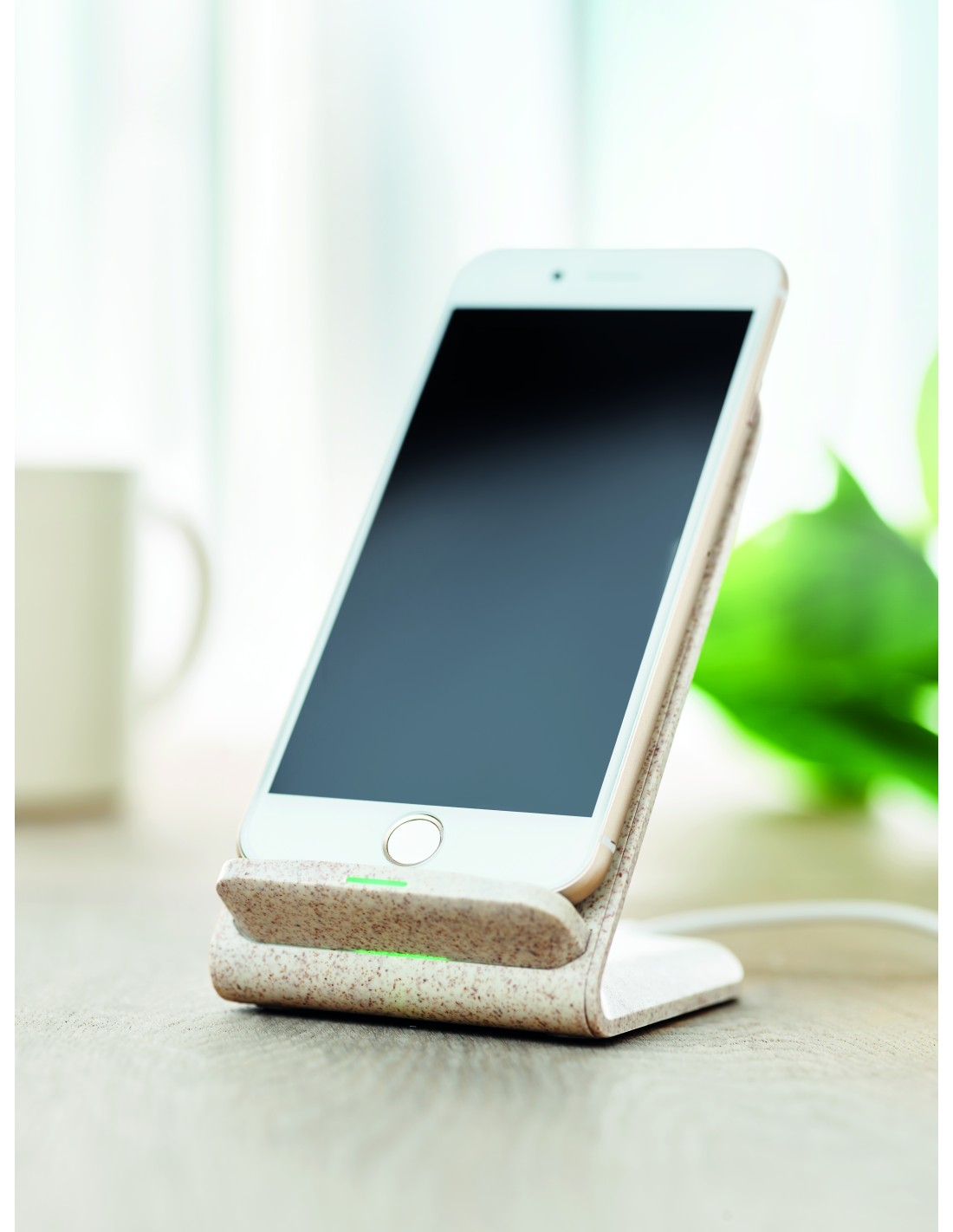 Caricatore wireless in paglia (35%) e ABS (65%). Posizionare lo smartphone sopra lo stand per avviare la ricarica. Outoput: DC5V/2A (10W) per ricarica veloce.