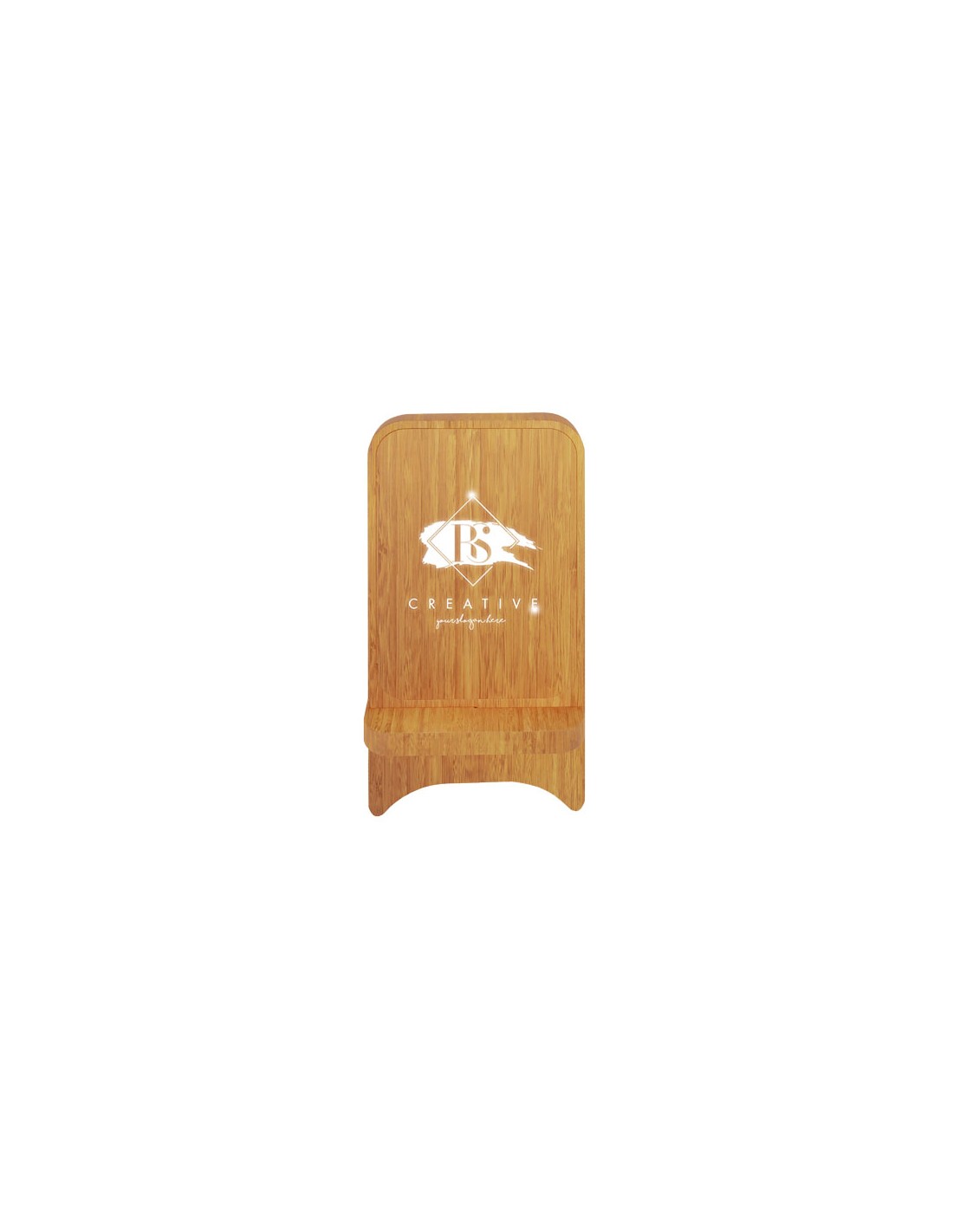 Supporto per telefono in legno con ricarica wireless da 10 W e logo luminoso SCX.design W26