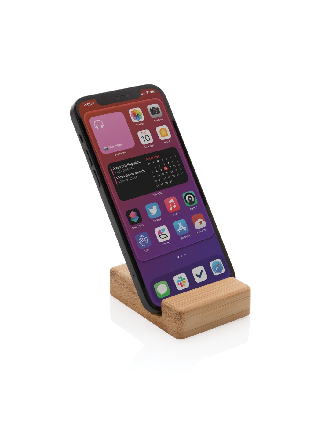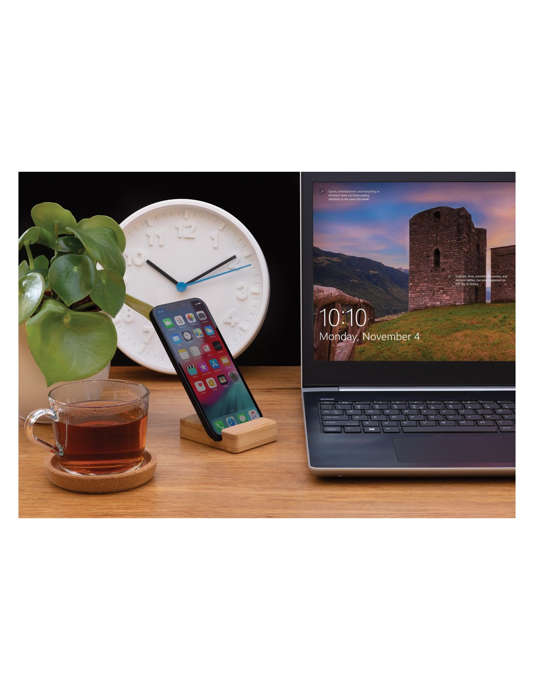 Supporto per smartphone realizzato in bambù. Ideale per la tua scrivania a casa o in ufficio.