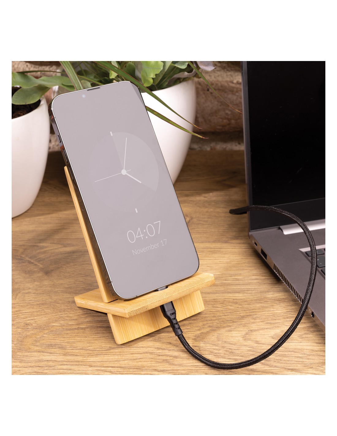 Supporto per smartphone realizzato in bambù. Ideale per la tua scrivania a casa o in ufficio.