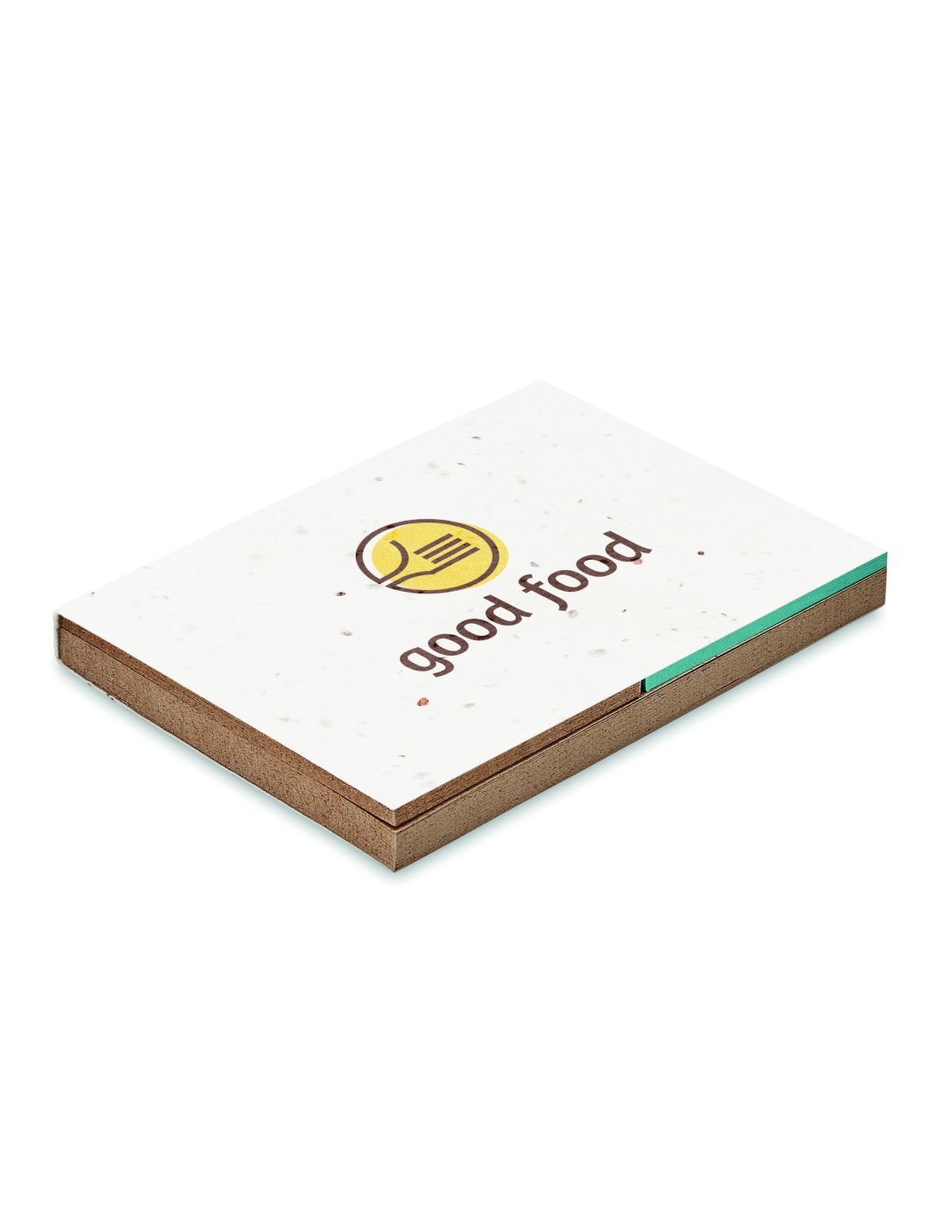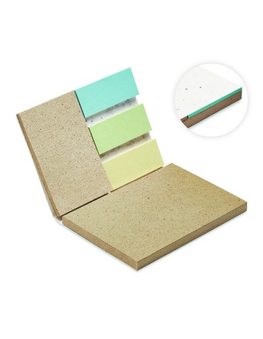 Blocco note adesive con copertina in carta morbida di erba da semi. Grandi blocchi di note adesive in carta riciclata gialla e 5 segnalibri di pagina assortiti. Dopo l'utilizzo pianta la copertina e crescerà un bellissimo campo di papaveri rossi