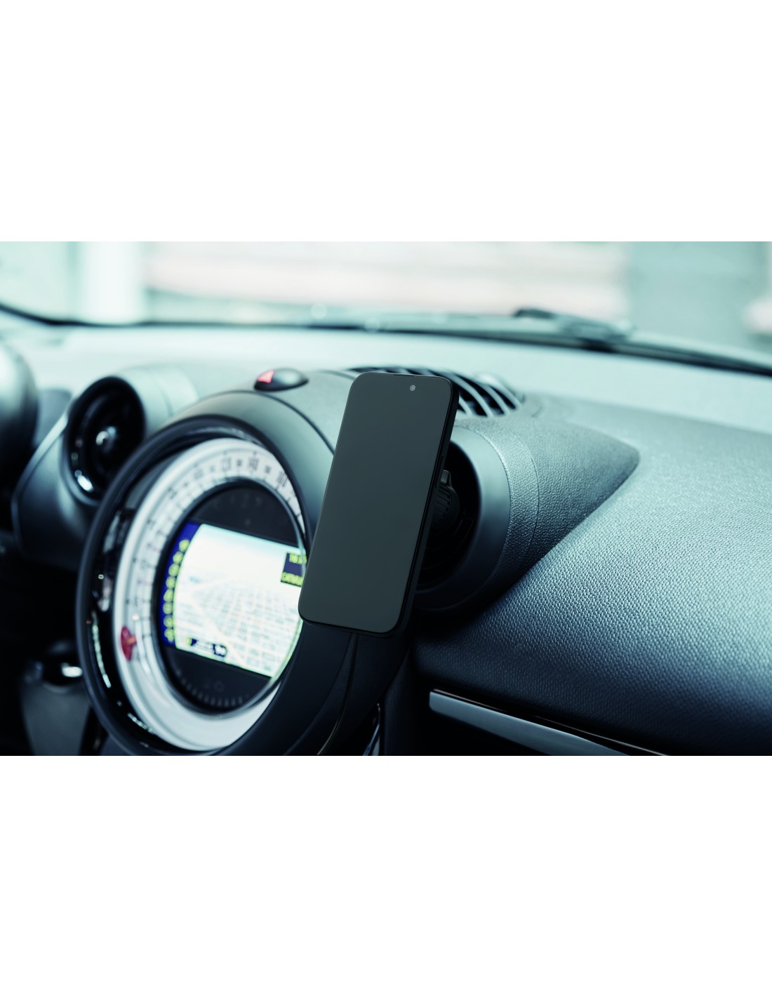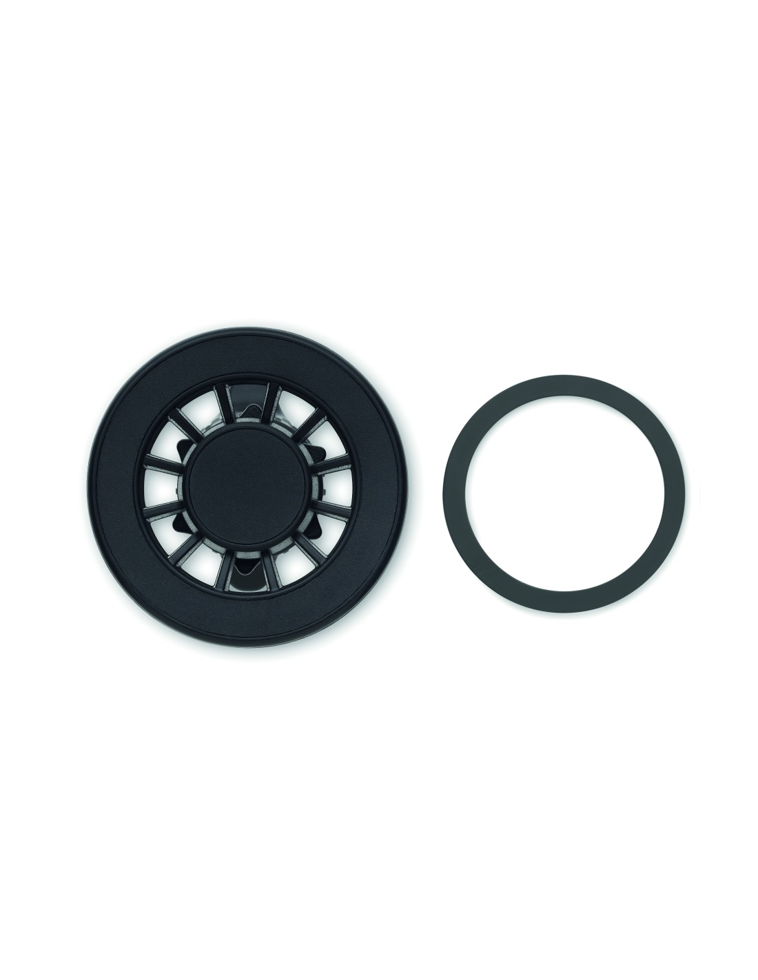 Supporto magnetico a 360 gradi da montare sulla bocchetta dell'aria in ABS. Include un anello metallico magnetico aggiuntivo per supportare la ricarica di telefoni senza fili non magnetici.