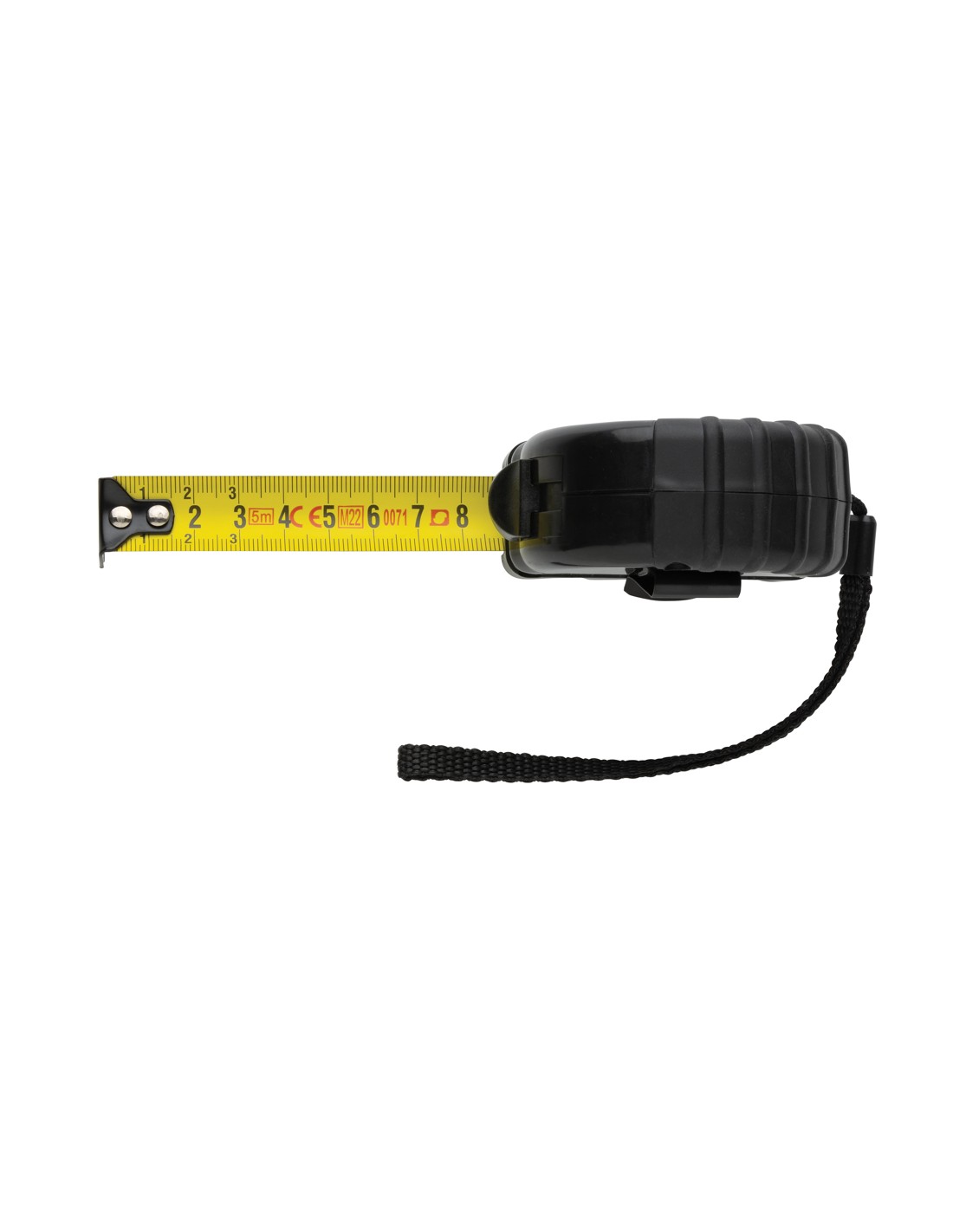 Flessometro autobloccante da 5 metri realizzato con ABS riciclato certificato RCS (Recycled Claim Standard). Contenuto totale riciclato: 17% in base al peso totale dell'articolo. La certificazione RCS garantisce una filiera completamente certificata dei materiali riciclati. L'mpugnatura in gomma TRP deluxe garantisce una presa sicura. Pulsante di sblocco/blocco. Nastro da 19mm giallo con gancio in acciaio al carbonio nero. Cinturino da polso in poliestere. Confezionato in scatola FSC® mix.