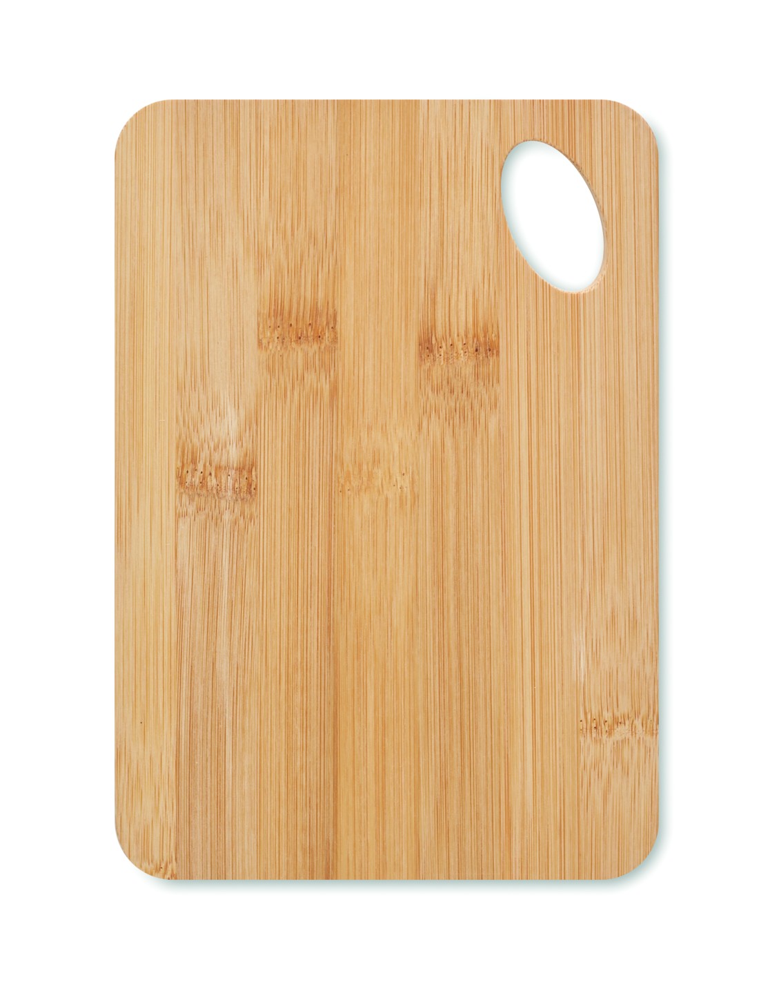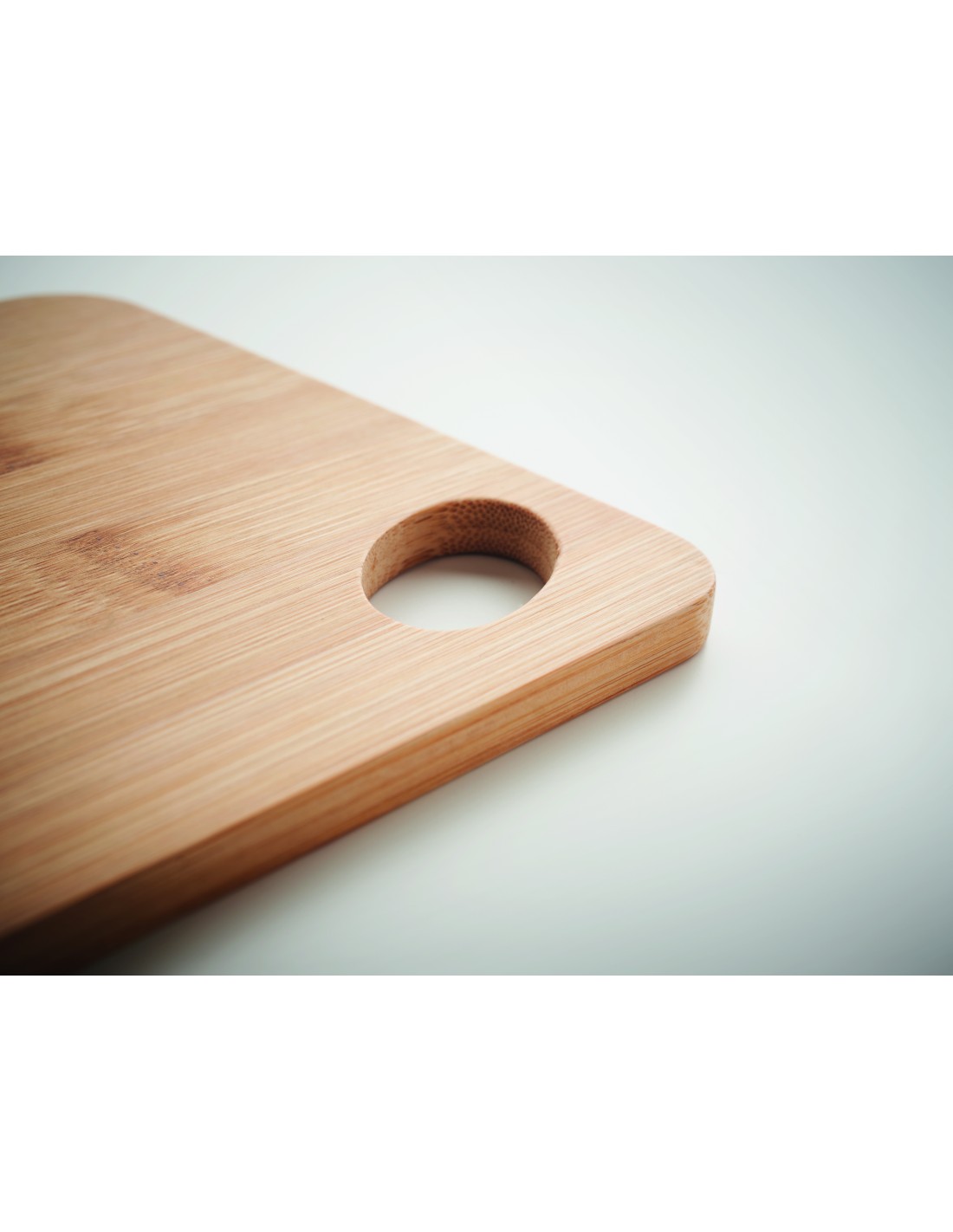 Tagliere in legno di bamboo con foro per poter essere appeso.