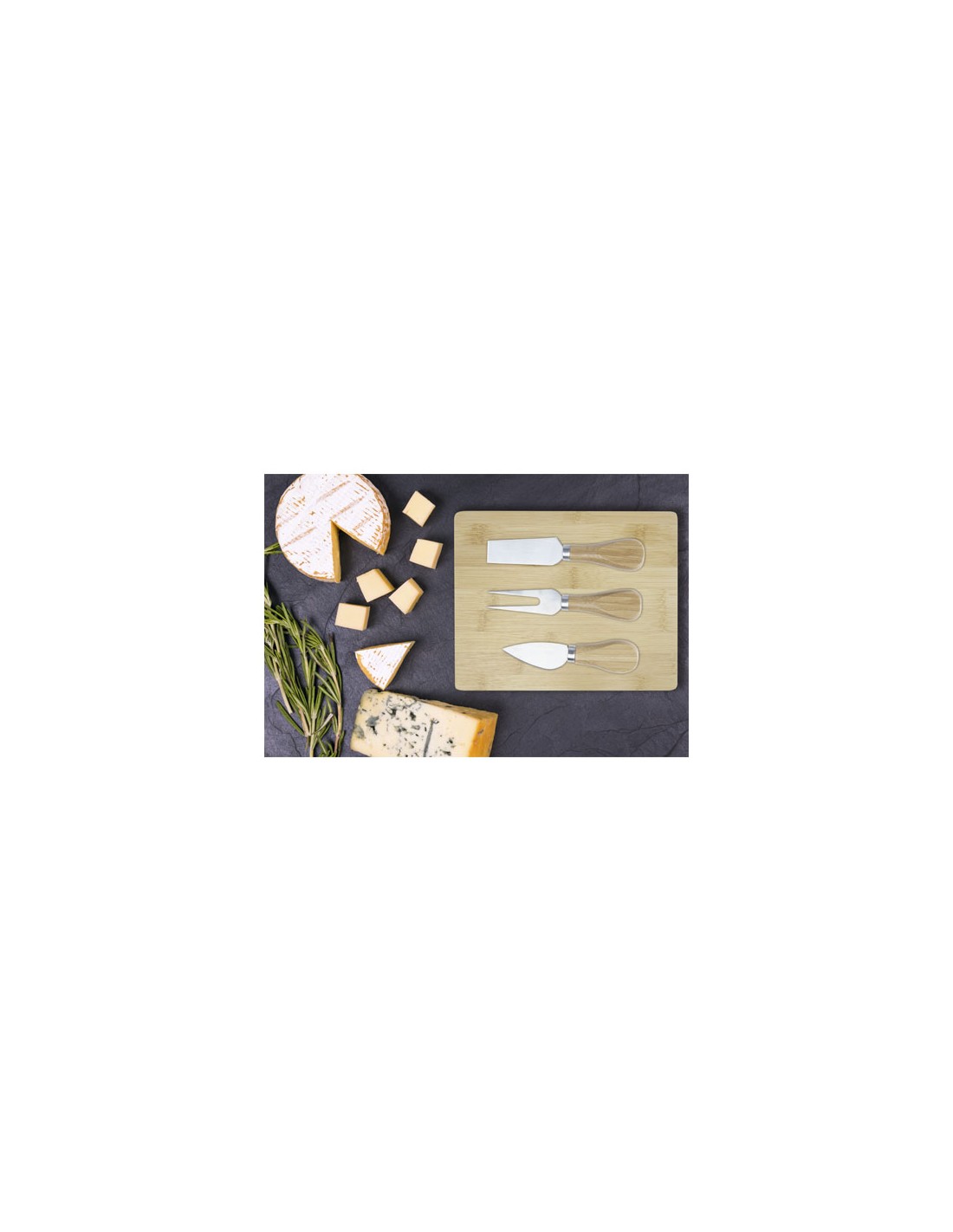 Servire un piatto di formaggio dopo un'ottima cena è sempre apprezzato e questo set ha tutto quello che serve. Il set è composto da un tagliere per formaggio di bambù (22,8 x 18 x 1 cm), un coltello da formaggio standard (12,5 x 2,5 cm), un coltello da formaggio di forma rettangolare (12,5 x 2,7 cm) e una forchetta da formaggio (13,5 x 2,4 cm). Il bambù utilizzato è ottenuto e prodotto in base a standard ecosostenibili.