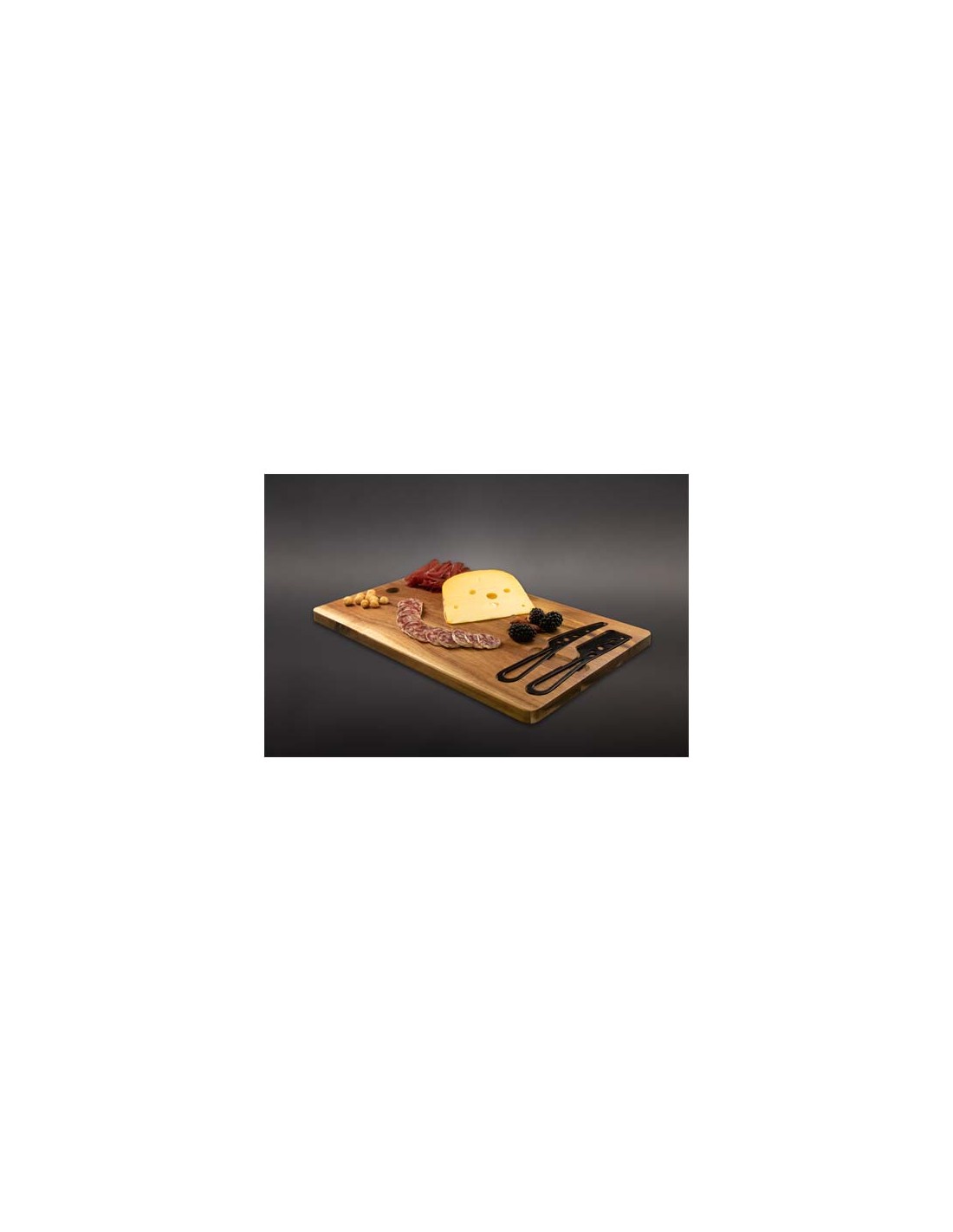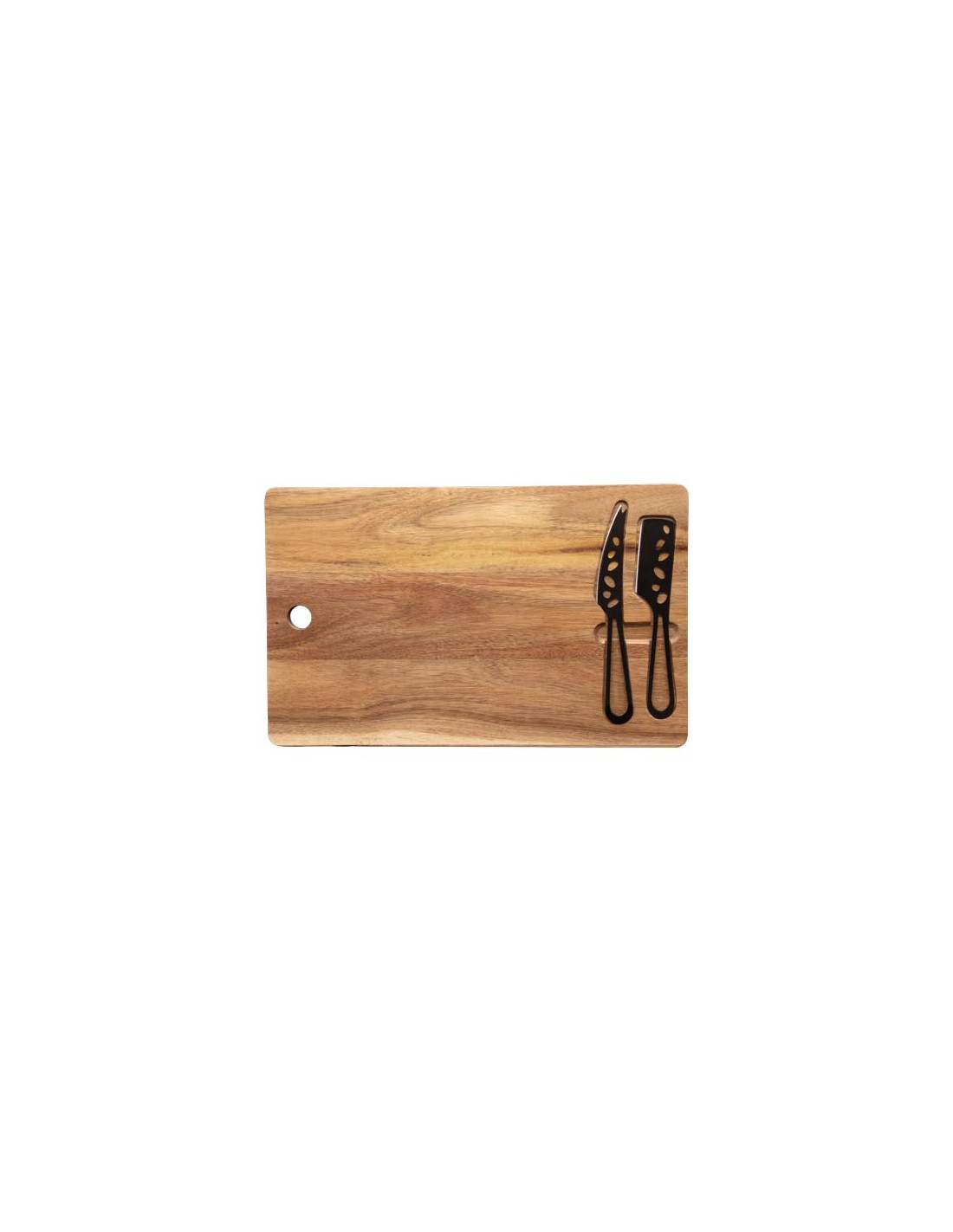 Set composto da un tagliere per formaggi in legno di acacia (40 x 25 x 1,5 cm) e da 2 coltelli in acciaio inox (20 x 2,5 cm, 19 x 3,5 cm). Consegnato in una confezione regalo in cartone riciclato con chiusura magnetica.