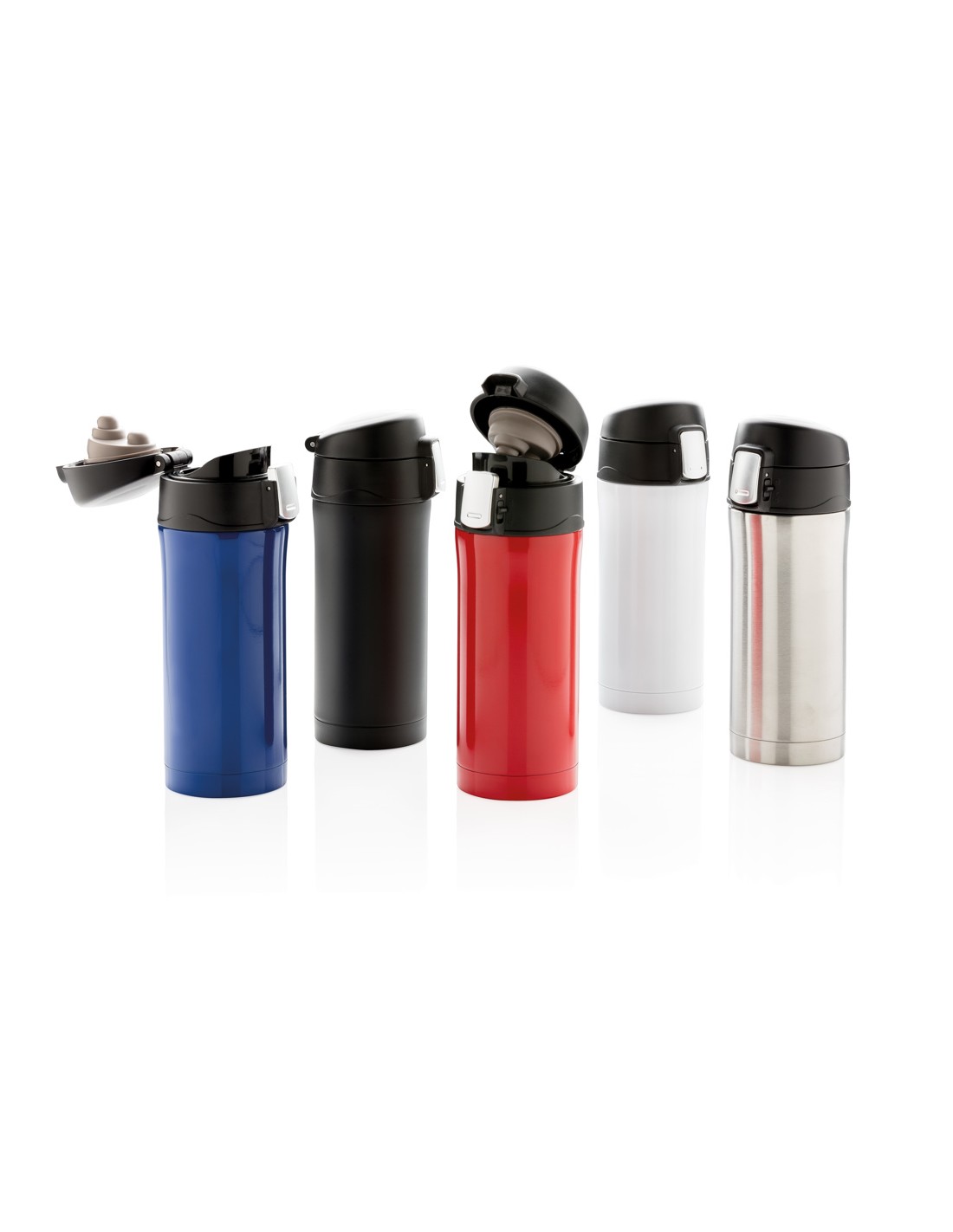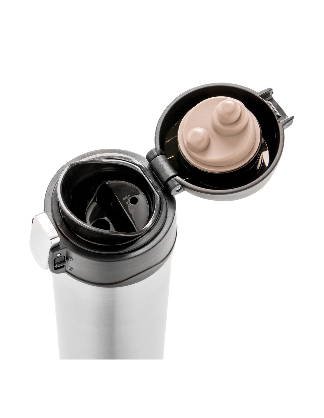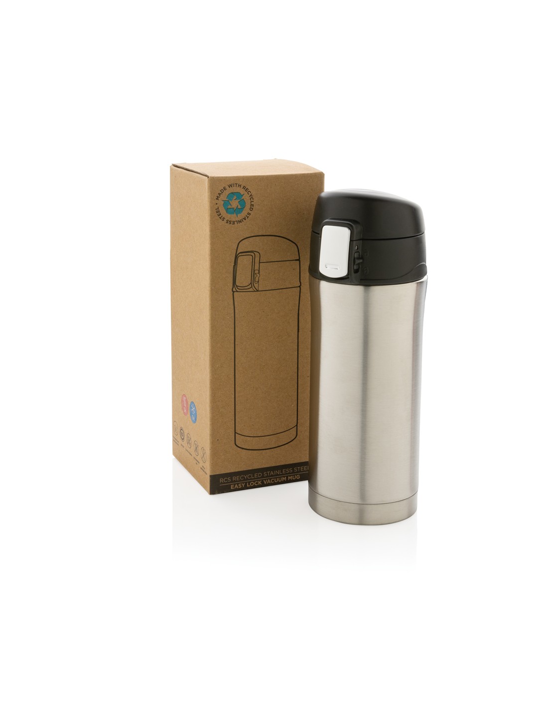 Questa fantastica tazza sottovuoto in acciaio inossidabile a doppia parete mantiene la tua bevanda calda fino a 5 ore o fresca fino a 15 ore. E' possibile bloccare il tappo evitando quindi qualsiasi rischio di perdite o fuoriuscite. Il tappo è facile da tenere pulito per un'igiene ottimale ed è lavabile in lavastoviglie. Il design unico della tazza ti consente di bere comodamente e in sicurezza con una sola mano direttamente dalla tazza. E' adatta per essere collocata in qualsiasi portabibite per auto. Realizzato con materiali riciclati certificati RCS (Recycled Claim Standard). La certificazione RCS garantisce una filiera completamente certificata dei materiali riciclati. Contenuto totale riciclato: 71% in base al peso totale dell'articolo. Senza BPA. Capacità 300 ml. Confezionata in scatola certificata FSC®.
