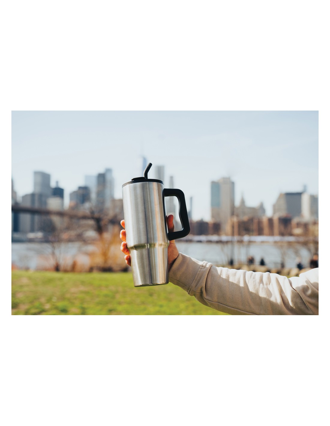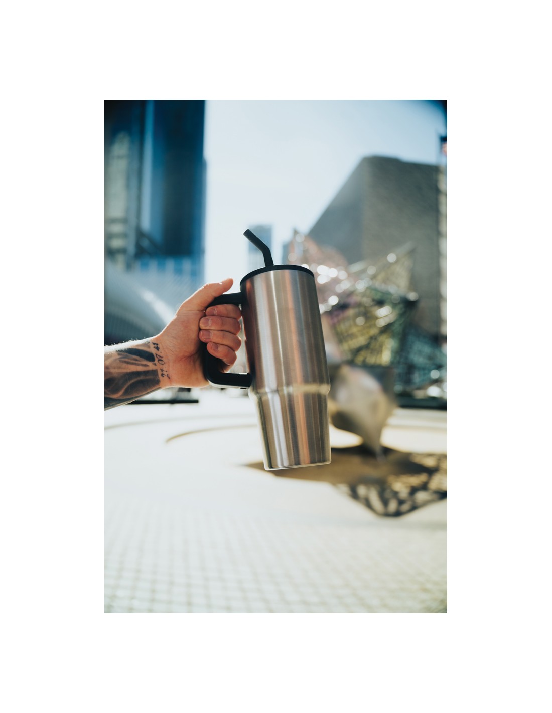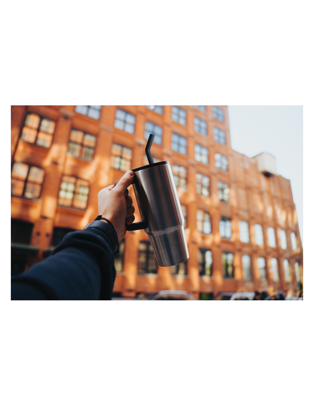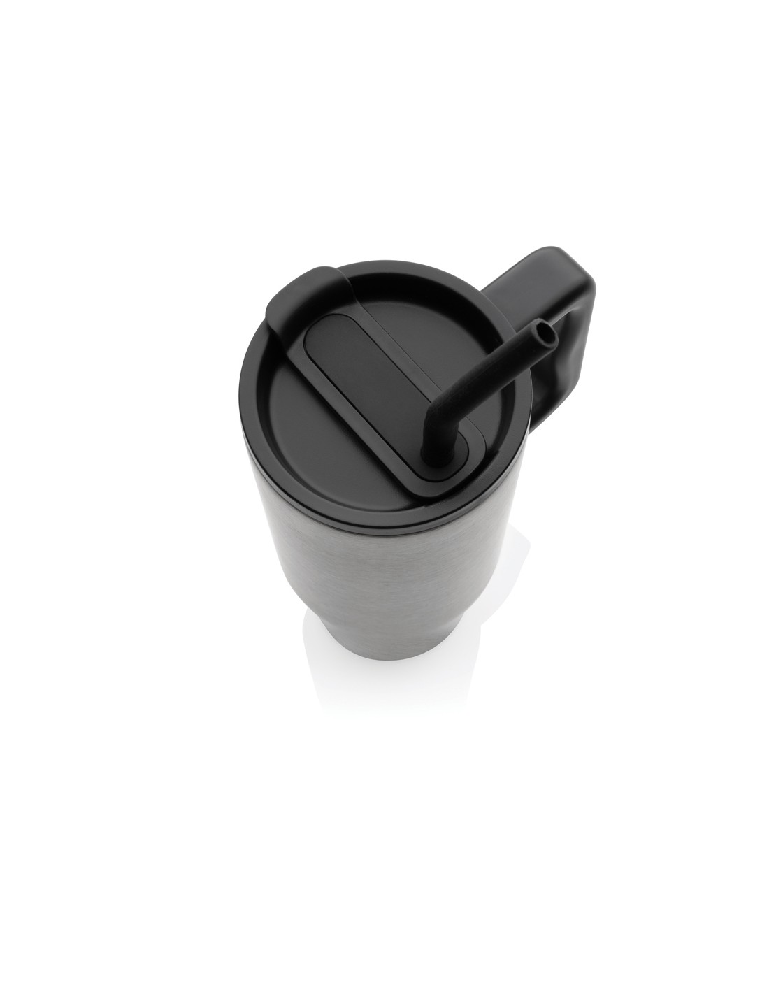 Capacità 350ml, rifinitura esterna in acciaio inossidabile, interno in PP, fondo e coperchio in colore nero.