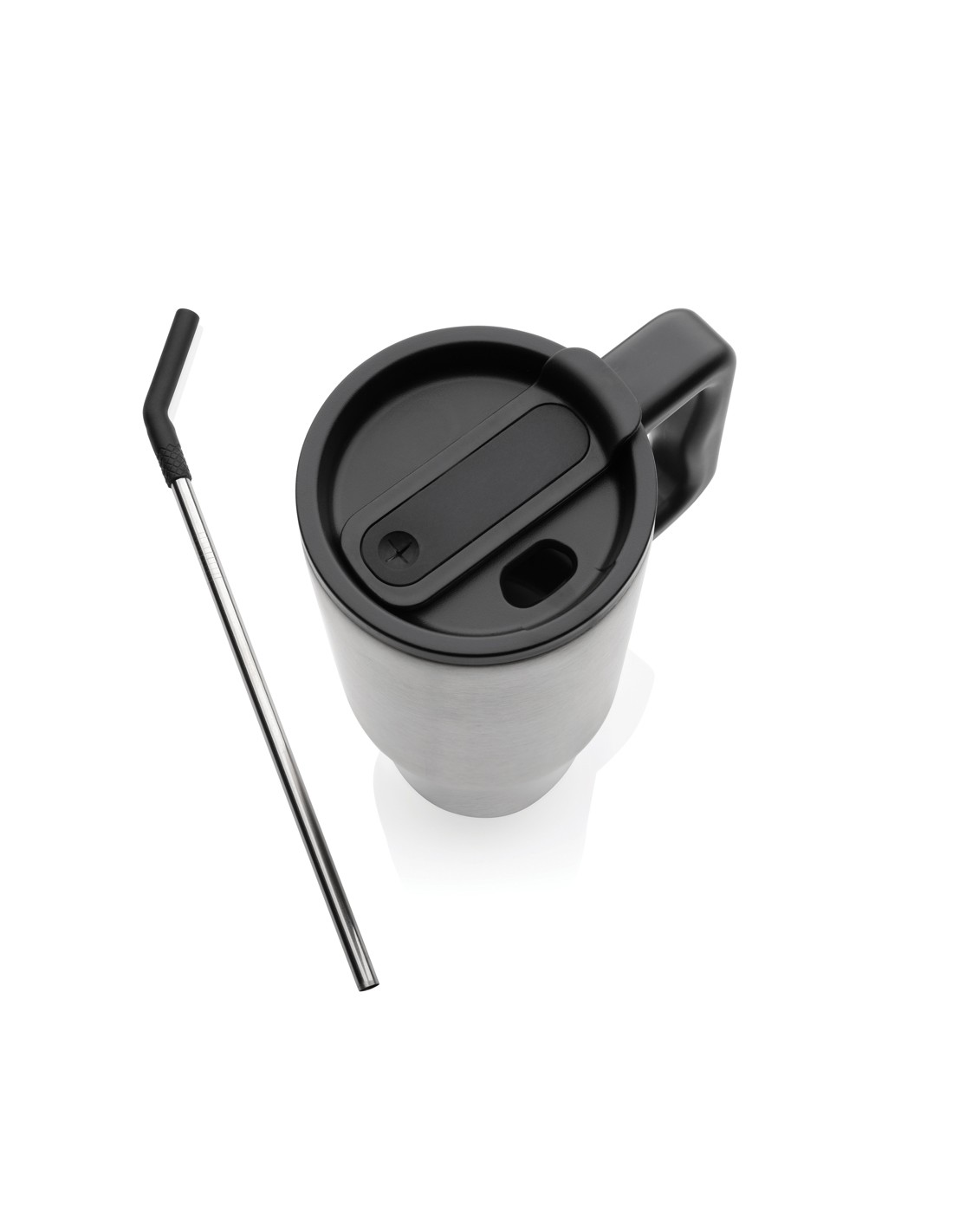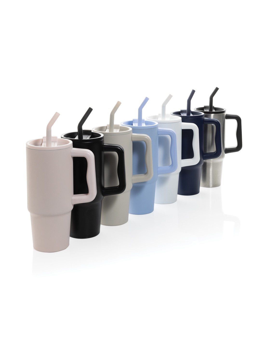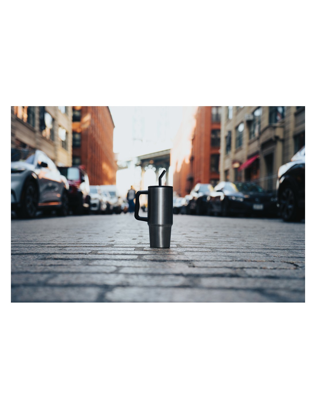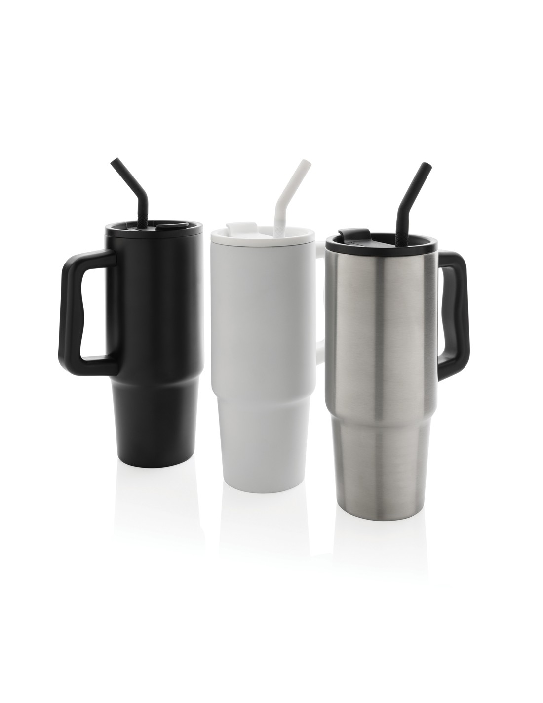 Capacità 350ml, rifinitura esterna in acciaio inossidabile, interno in PP, fondo e coperchio in colore nero.