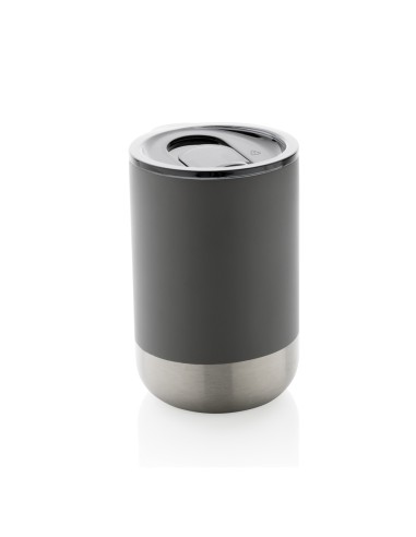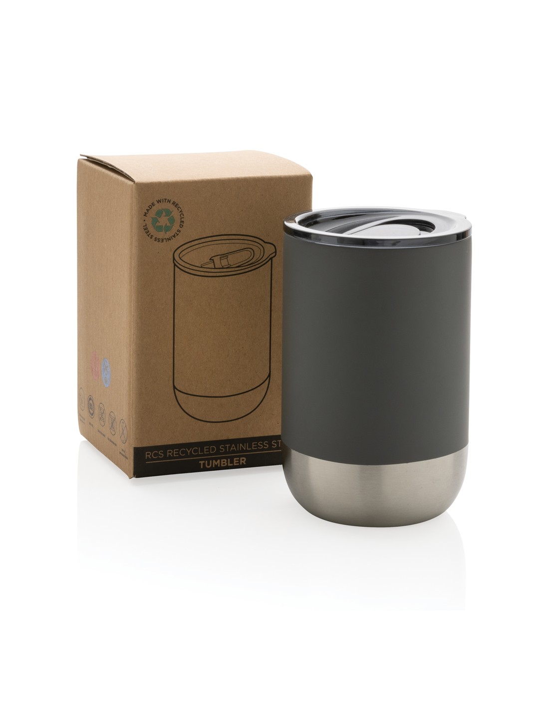 Questo bellissimo bicchiere presenta una struttura in acciaio inossidabile riciclato con isolamento a vuoto per mantenere le bevande calde fino a 3 ore o fredde fino a 6 ore. Il suo design con particolari in acciaio sul fondo, lo rendono accattivante. Il comodo tappo con apertura scorrevole assicura un facile utilizzo. Realizzato con materiali riciclati certificati RCS (Recycled Claim Standard). La certificazione RCS garantisce una filiera completamente certificata dei materiali riciclati. Contenuto totale riciclato: 76% in base al peso totale dell'articolo. Senza BPA. Capacità 360 ml. Compreso l'imballaggio kraft certificato FSC®.