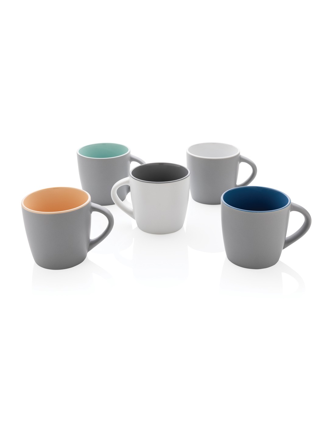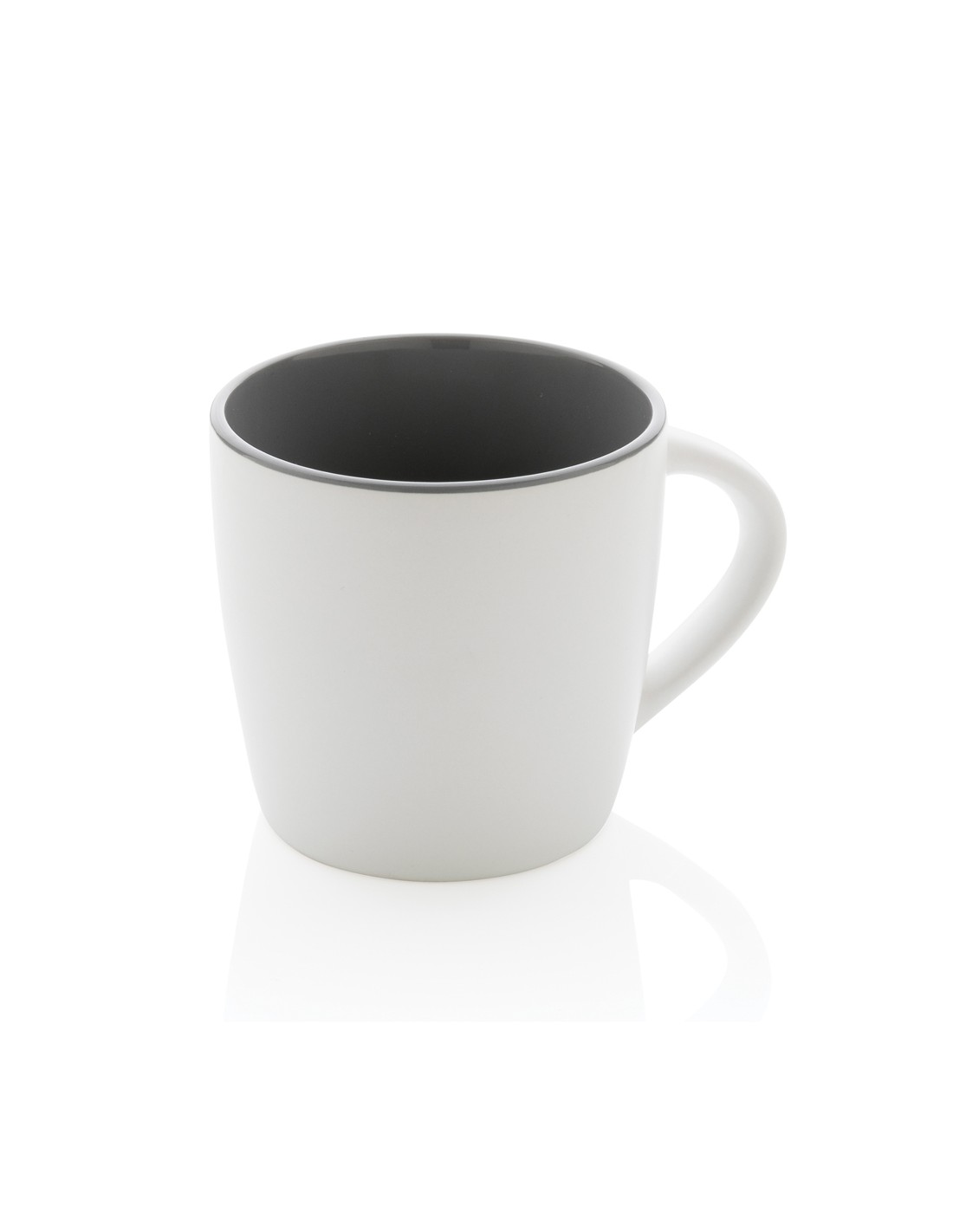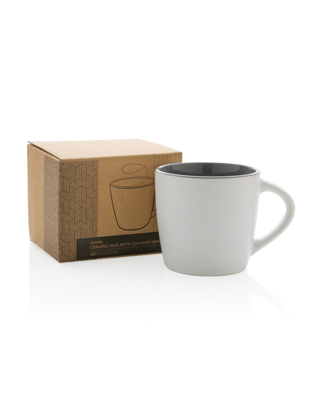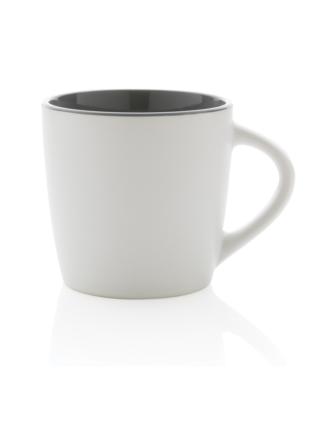 Questa tazza in ceramica è caratterizzata da un design fresco con finitura esterna opaca e particolari interni colorati. La tazza va in lavastoviglie ed è testata secondo la norma EN12875-1 (almeno 125 cicli di lavaggio per tutti i metodi di personalizzazione). Confezionata in scatola regalo kraft. Capacità 300 ml.
