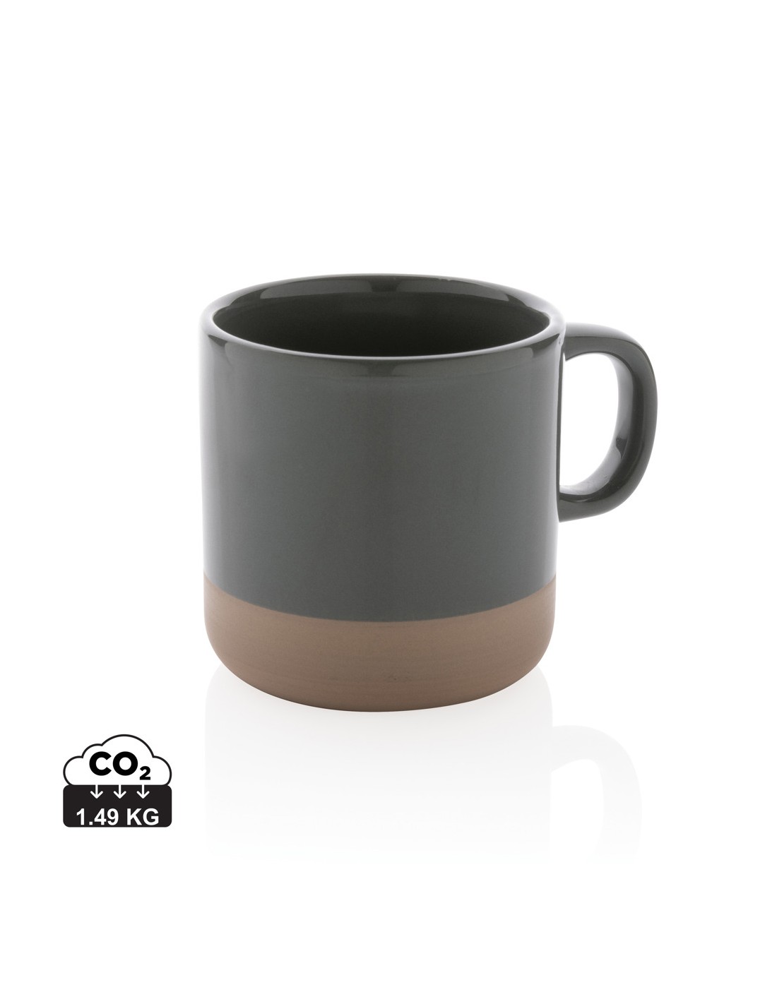 Tazza da 350 ml con impugnatura e tappo in silicone. Composta da materiale ricavato dalle piante (PLA). Senza BPA. Va in lavastoviglie.