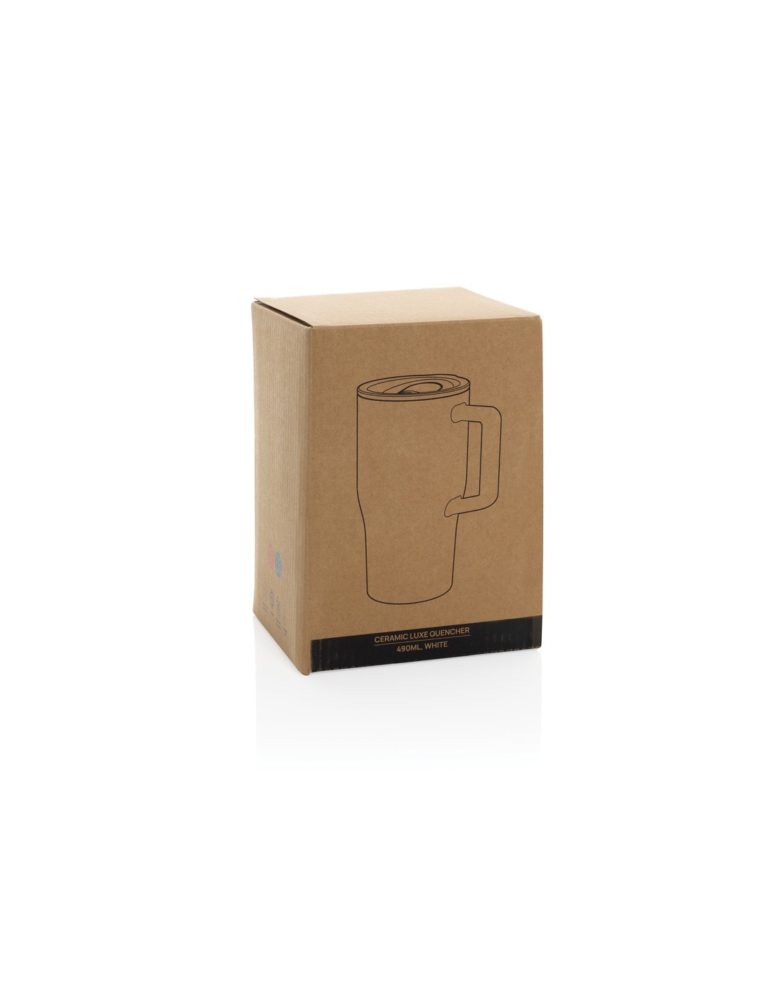 Tazza in ceramica da 290ml, presentata in una scatolina in cartoncino bianco.