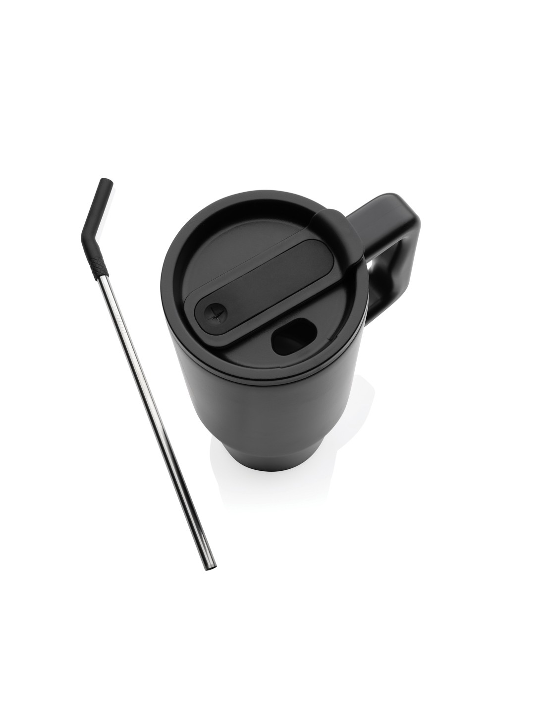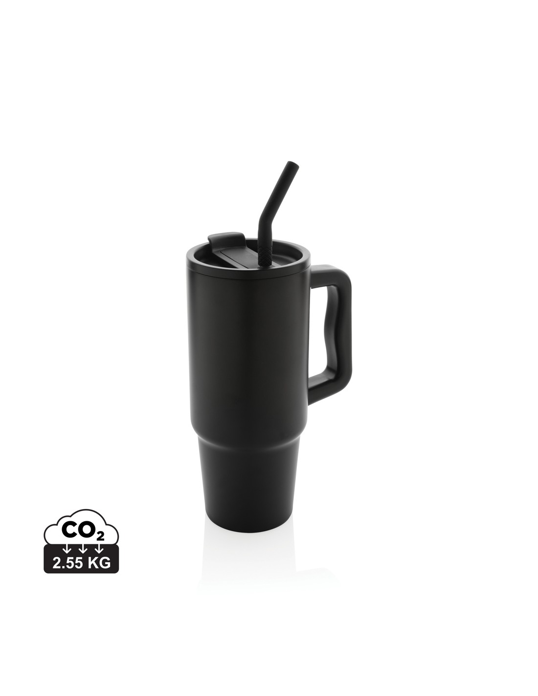 Godetevi la capienza e la praticità del nostro bicchiere di dimensioni generose - né troppo grande, né troppo piccolo. Grazie alla comoda impugnatura e alla base affusolata, si adatta perfettamente alla maggior parte dei portabicchieri, consentendovi di rinfrescarvi sia durante una lunga giornata di riunioni, sia durante una lezione di canottaggio, sia durante una gita fuori porta. Realizzato in resistente acciaio inossidabile riciclato, questo bicchiere da 900ml è all'altezza della sfida in termini di idratazione. Isolato sottovuoto, è dotato di un coperchio a prova di fuoriuscita, di una cannuccia e di un beccuccio in silicone. La versatilità è fondamentale e la rende adatta sia alle bevande calde che a quelle fredde. Il coperchio a vite ha una doppia funzione: offre un comodo beccuccio per bere o la possibilità di utilizzare una cannuccia. Si consiglia di lavare a mano per una cura ottimale. Totale contenuto riciclato 70% in base al peso totale dell'articolo. Non contiene BPA.